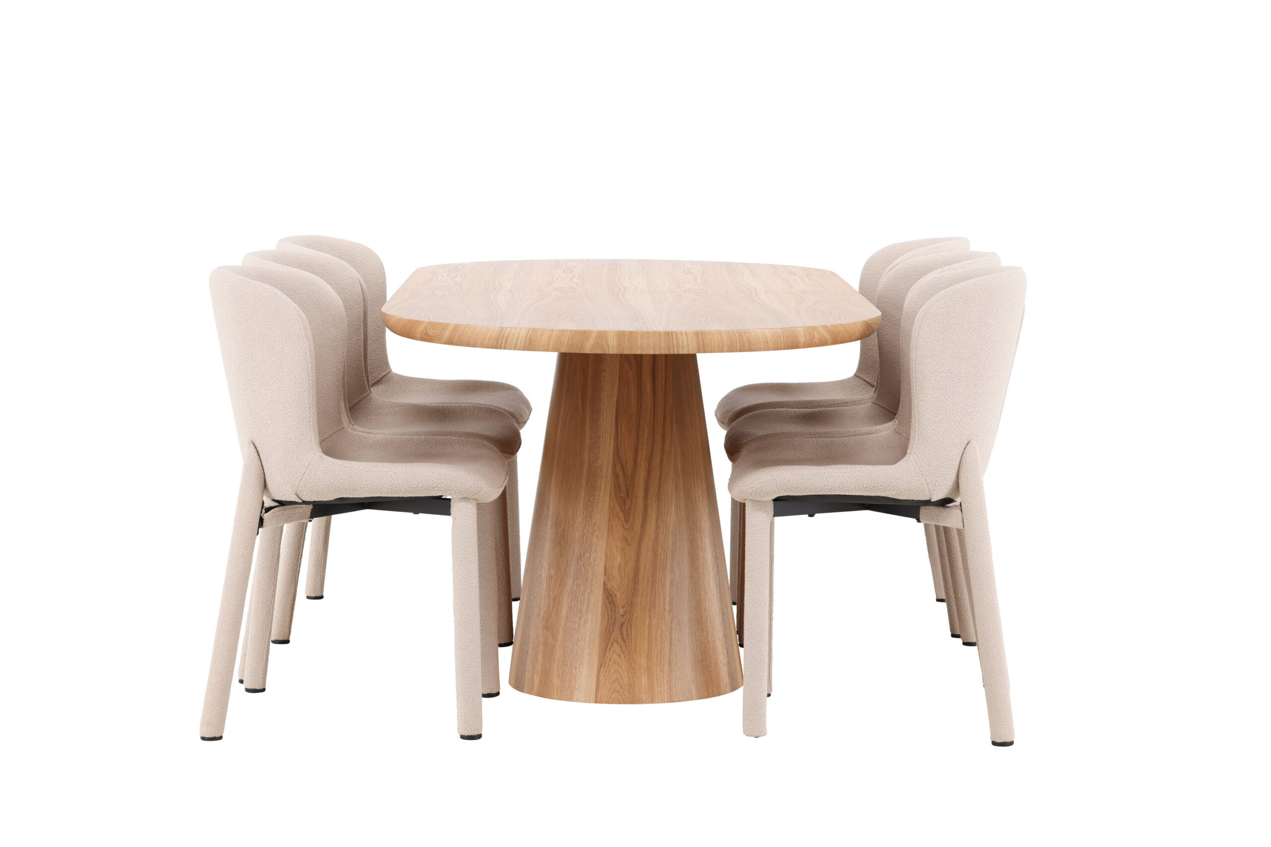 Stjärnö söögilauast ja Astoria söögitoolidest koosneva stiilse söögigrupiga looge elegantne ja kutsuv söögituba. See grupp ühendab funktsionaalsuse ja luksusliku disaini, muutes selle ideaalseks valikuks nii igapäevaseks toidukorraks kui ka pidulikumaks sündmuseks.