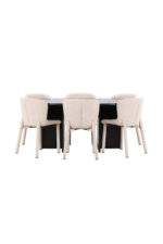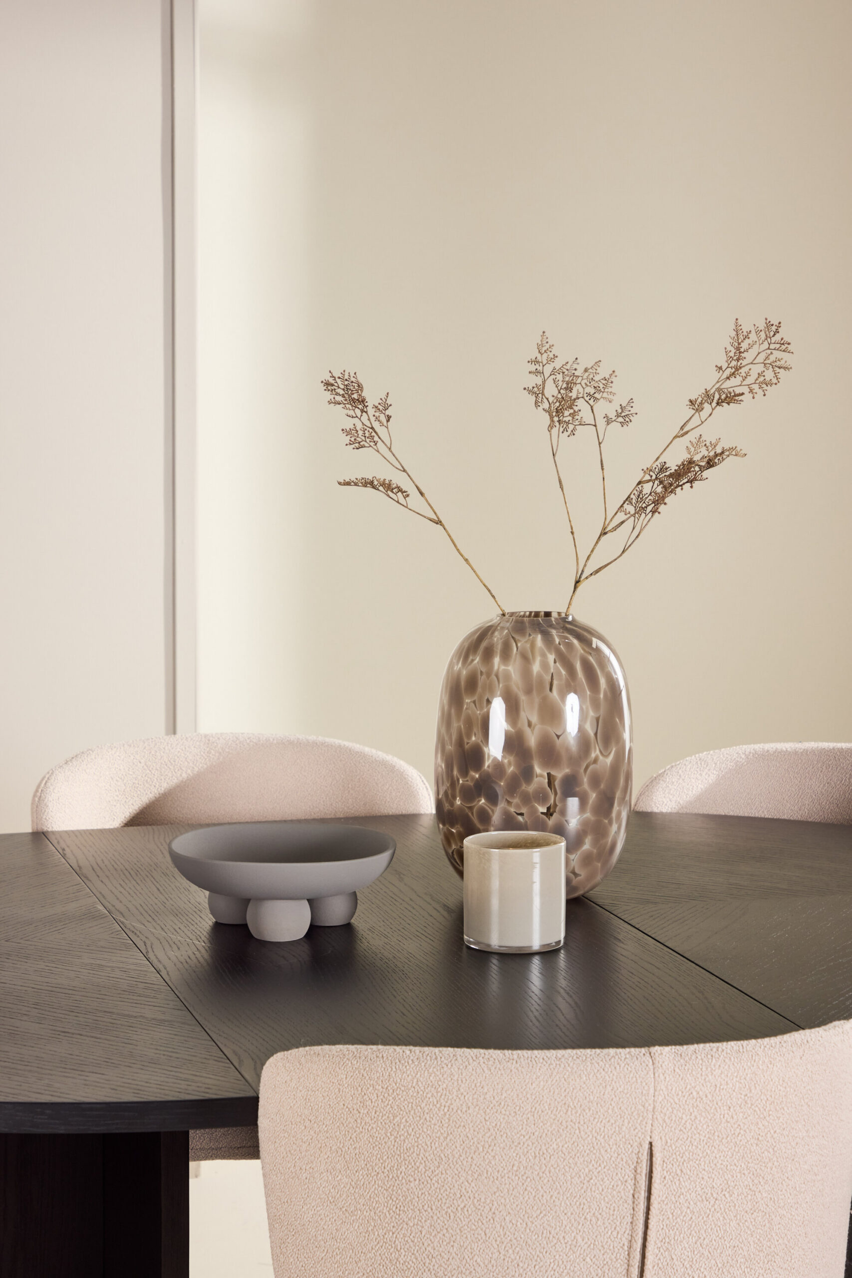 Looge Astoria söögitooli ja Strada söögilauaga kutsuv ja peen söögituba – täiuslik kombinatsioon mugavusest, stiilist ja funktsionaalsusest. Elegantse beeži bukleega polsterdatud söögitool Astoria pakub luksuslikku ja külalislahke tunde, mis sulandub kaunilt nii moodsa kui ka klassikalise interjööri stiiliga. Bouclé kanga peen tekstuur ja neutraalne toon loovad söögilaua ümber sooja atmosfääri, samas kui ergonoomiline seljatugi ja rikkalikult polsterdatud iste tagavad optimaalse mugavuse pikkadel õhtusöökidel pere ja sõpradega. Astoria läbimõeldud disain ühendab suurepäraselt stiili ja funktsionaalsuse, muutes iga toidukorra lõõgastavaks ja nauditavaks kogemuseks.