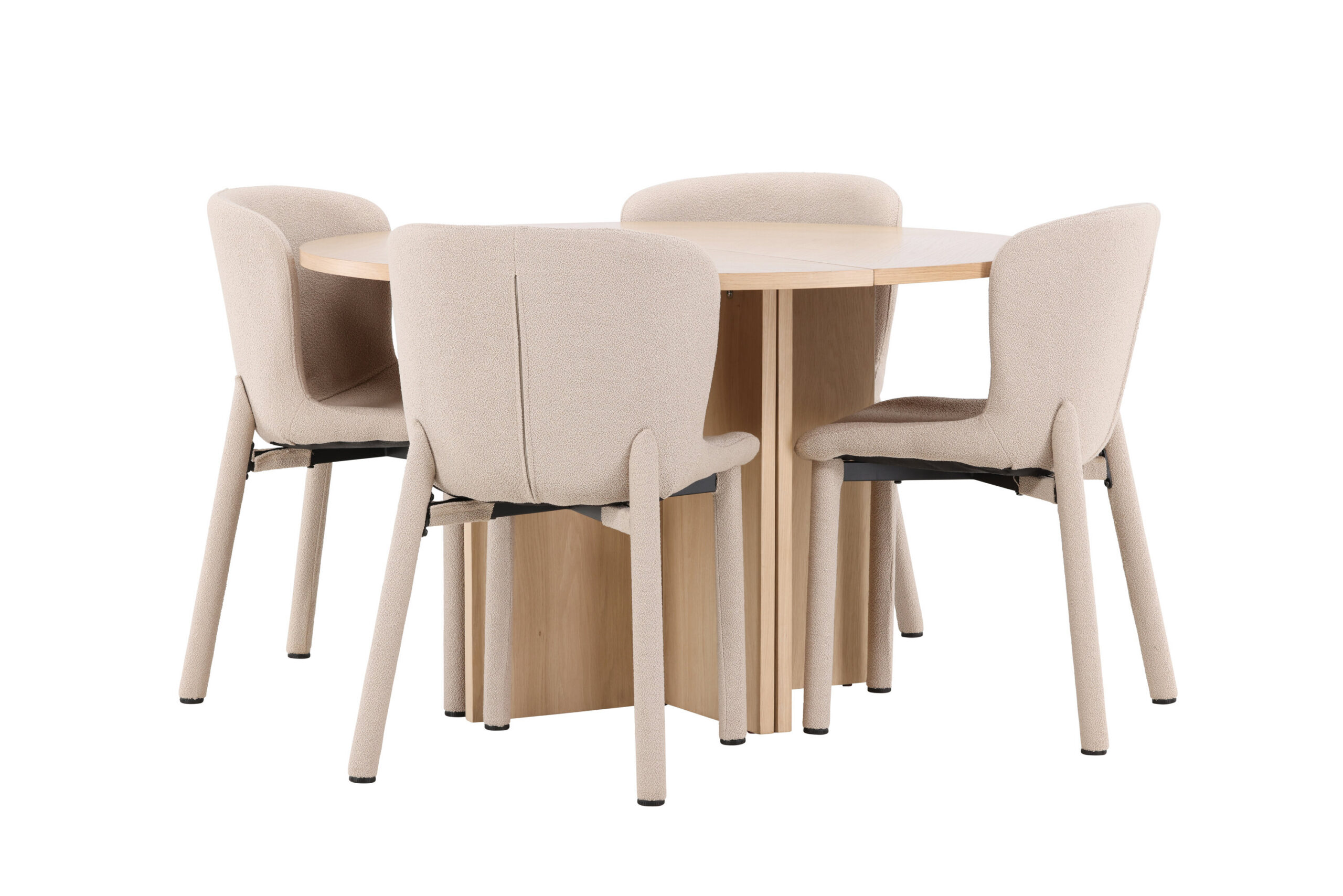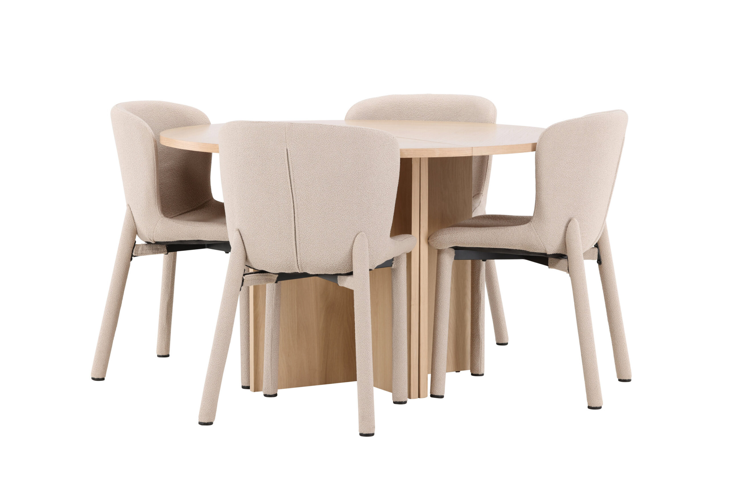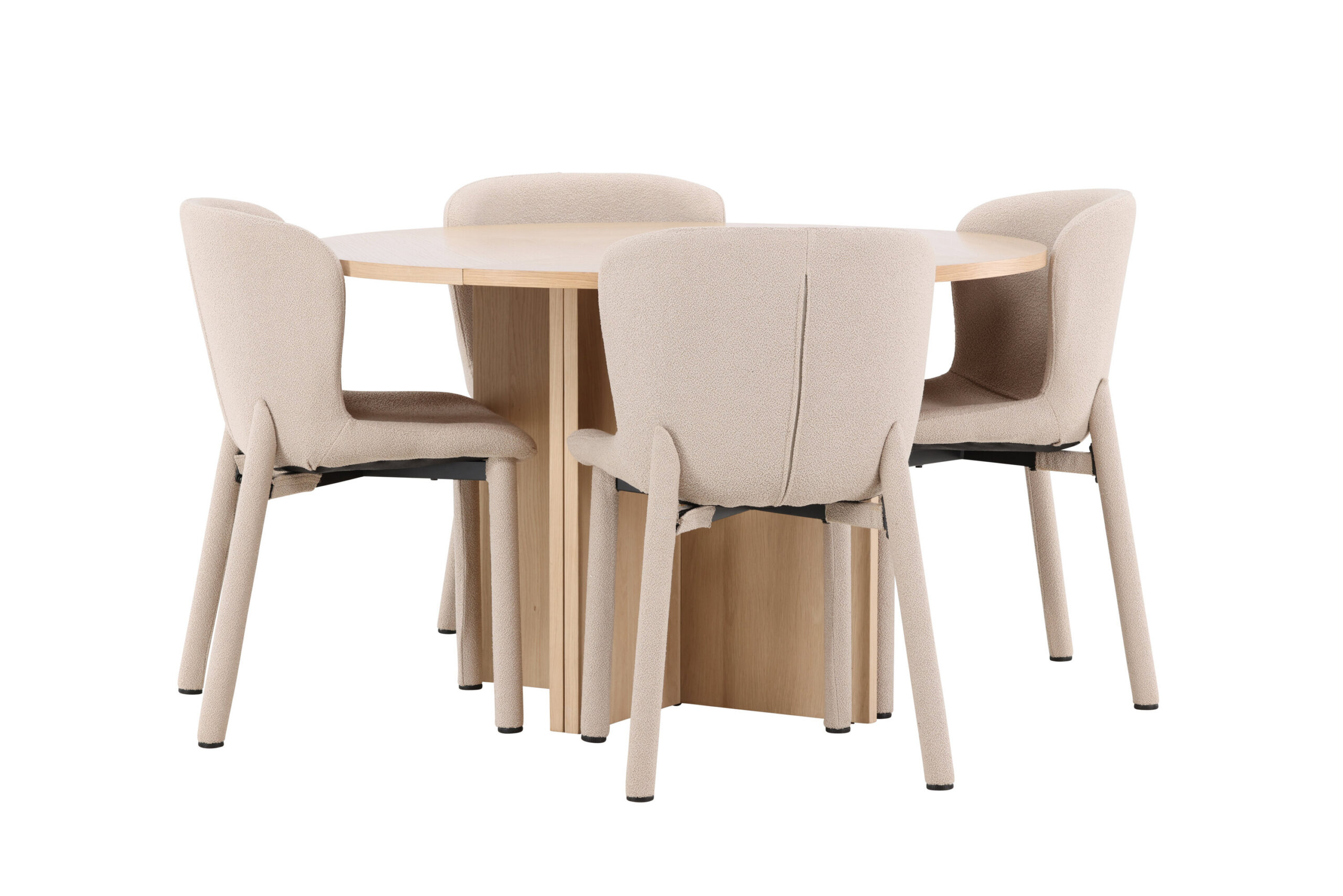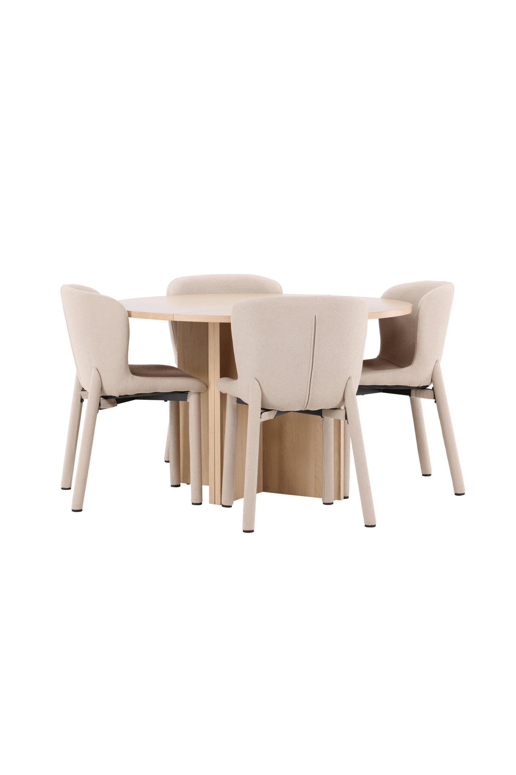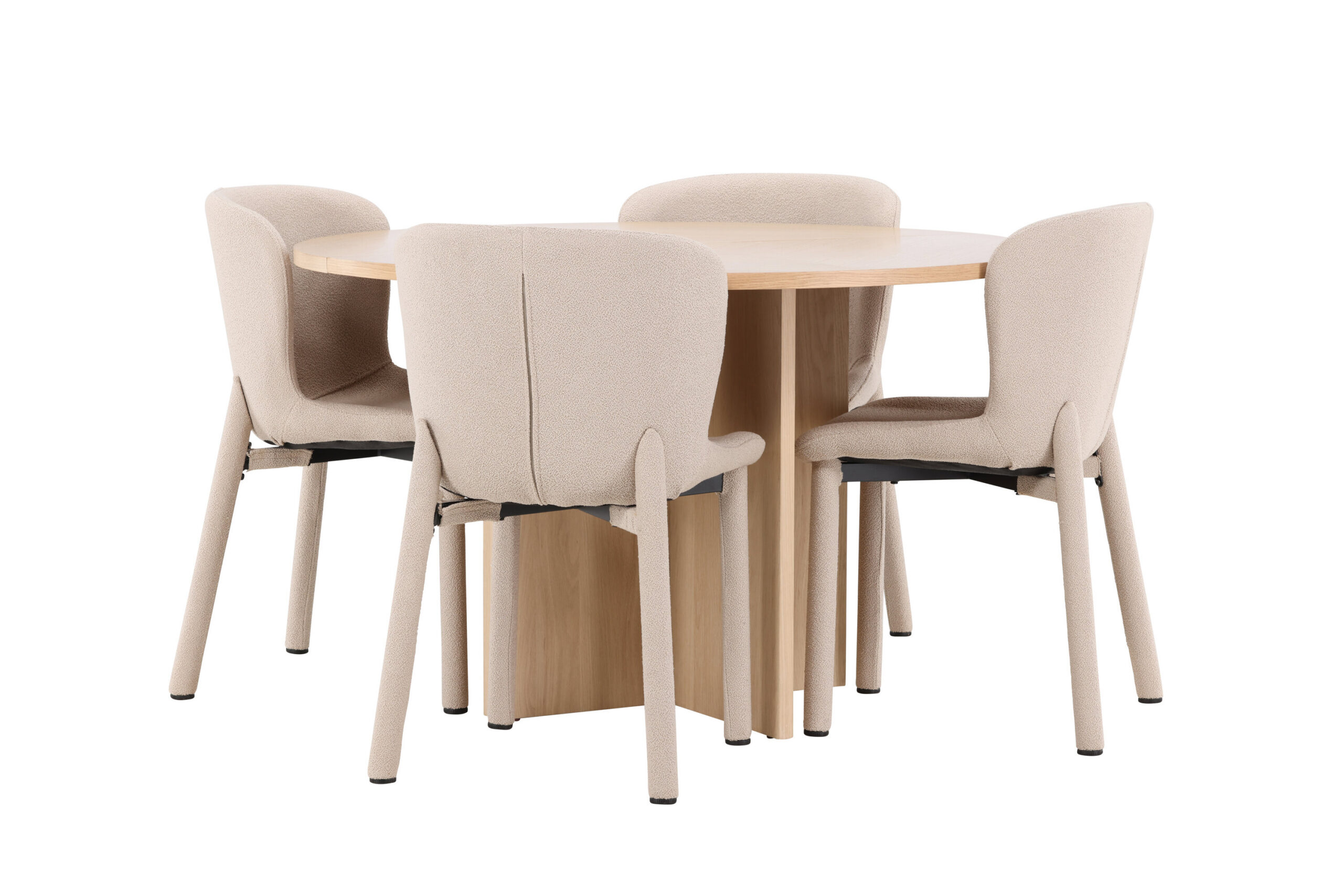Astoria söögitool ja Strada söögilaud saavutavad koos täiusliku tasakaalu keeruka stiili ja praktilise funktsionaalsuse vahel. Astoria toolide elegantne beež bouclé ja Strada laua hele spoonpind täiendavad teineteist kaunilt, muutes teie söögiruumi harmooniliseks ja kutsuvaks keskkonnaks, kus igast söögikorrast saab nauditav kogemus.
