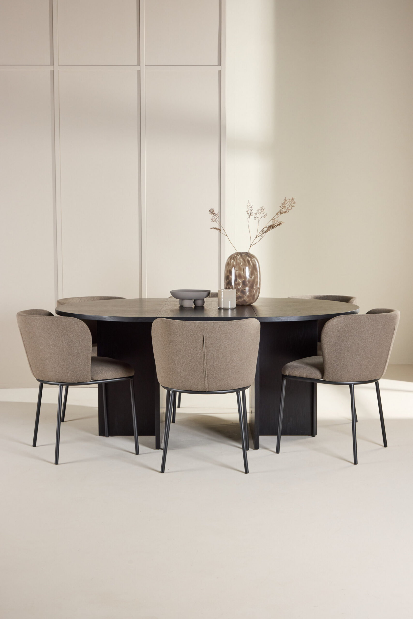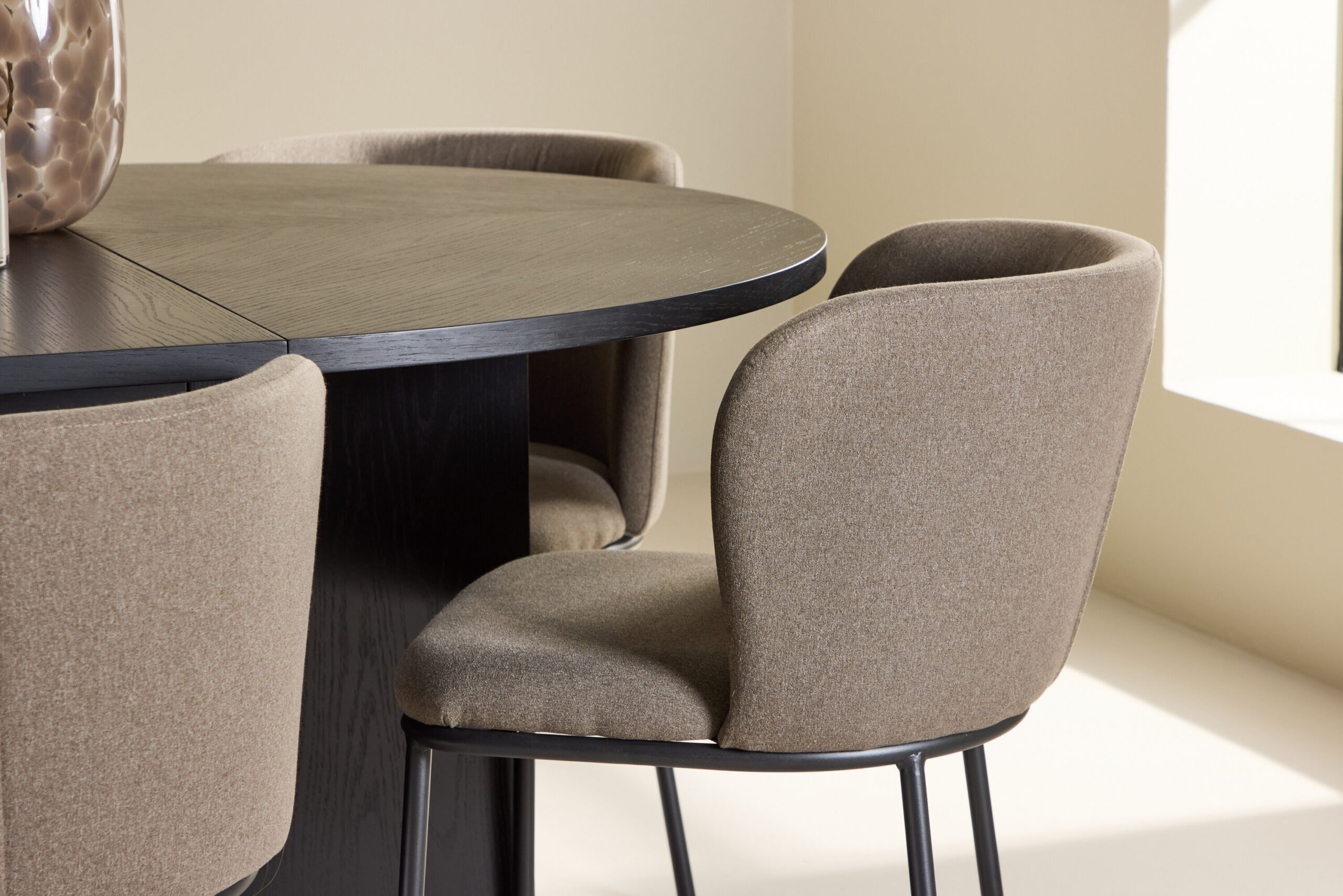 Strada söögilaud ja Edina söögitoolid loovad koos täiusliku tasakaalu stiili, mugavuse ja funktsionaalsuse vahel. Laua musta spooniga puit täiendab toolide sooje toone, luues harmoonilise ja kutsuva keskkonna igaks söögikorraks. Olenemata sellest, kas kogute perekonda juhuslikule õhtusöögile või korraldate pidulikku pidustust, on see söögikomplekt teie kodu keskne ja stiilne funktsioon.