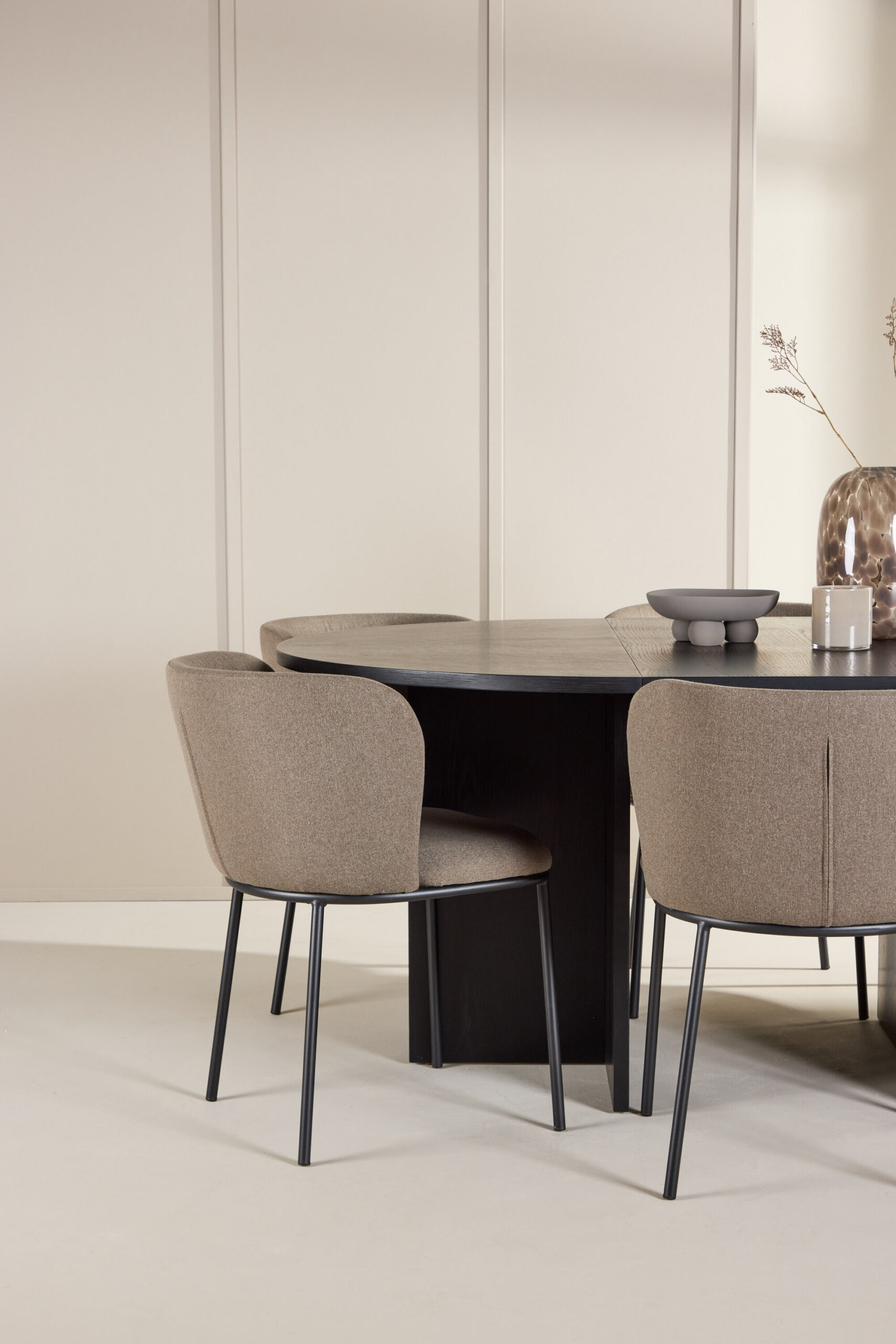 Strada söögilaud ühendab paindlikkuse kaasaegse disainiga. Mustast spoonitud puidust valmistatud laud pakub peent ja ajatut esteetikat, mis täiendab laia valikut interjööri stiile alates minimalistlikust kuni industriaalse või klassikaliseni. Esialgse 120 cm läbimõõduga on see intiimne ja külalislahke söögituba, kuid seda saab hõlpsasti pikendada 170 cm-ni, kui vajate külalistele lisaruumi. Praktiline laiendusfunktsioon muudab laua reguleerimise teie vajadustele lihtsaks, tagades perele ja sõpradele piisavalt ruumi.