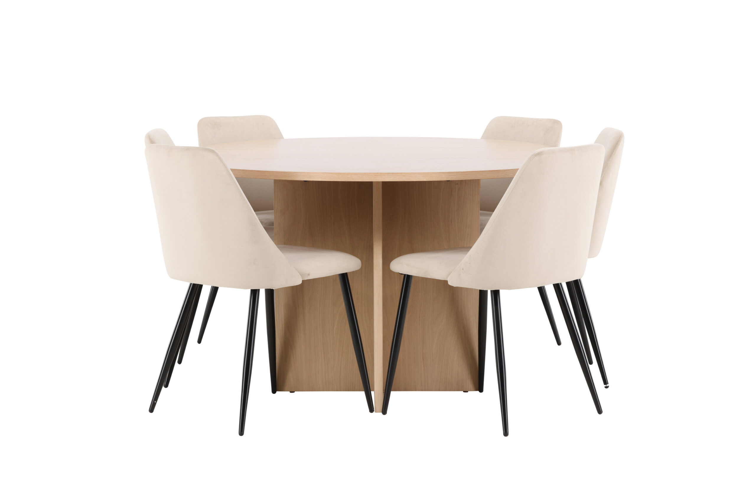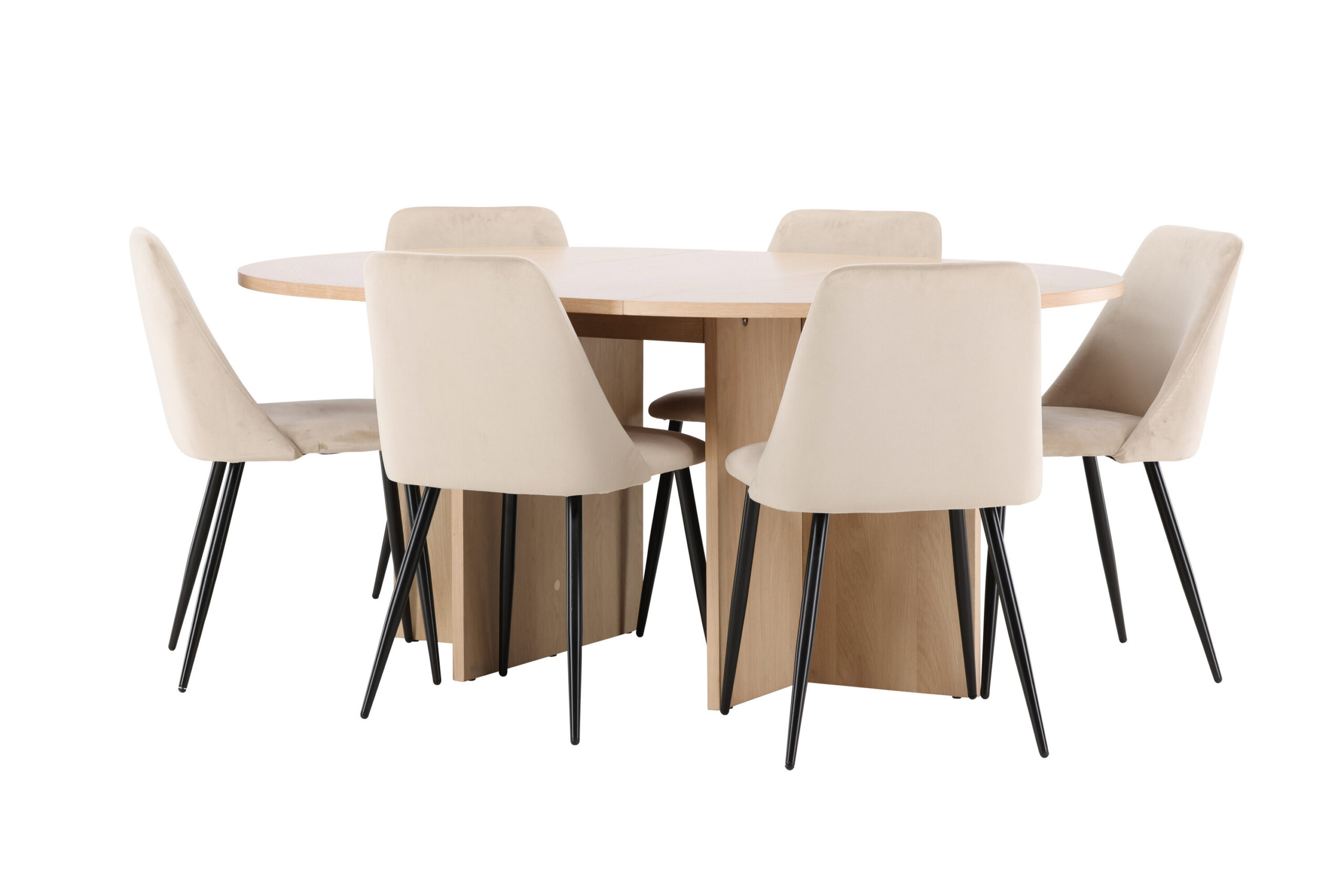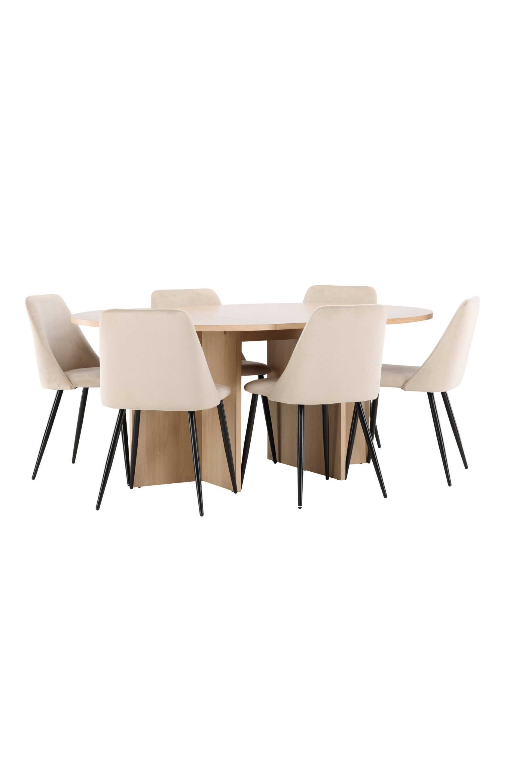Öö söögitool ja Strada söögilaud loovad koos söögitoa, mis ühendab endas mugavuse, stiili ja funktsionaalsuse. Luksuslik sametpolster ja Night tooli klanitud mustad jalad täiendavad täiuslikult Strada laua paindlikku valgeks lubjatud disaini, muutes selle kombinatsiooni teie kodu elegantseks ja praktiliseks keskpunktiks.