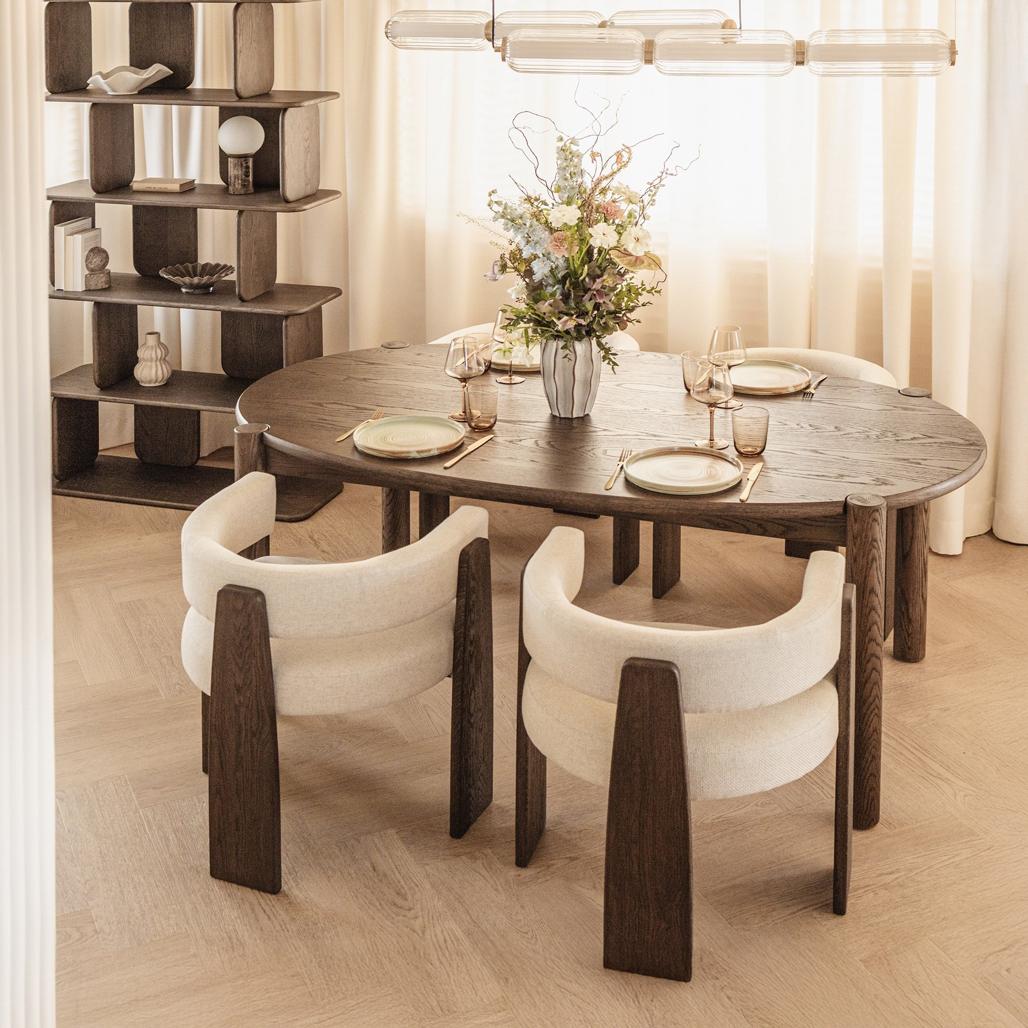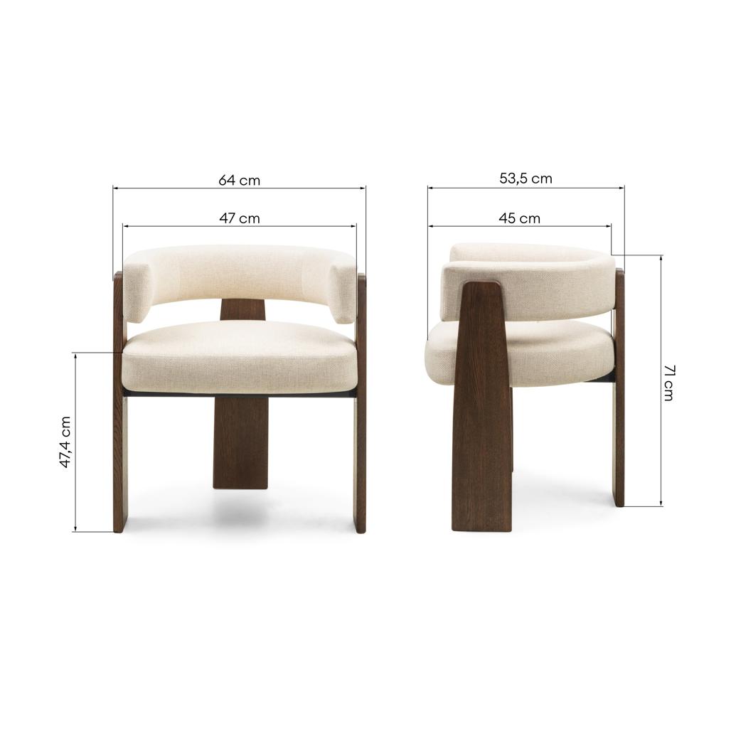 Lisa oma söögitoale stiili ja mugavust MOCHA tooliga! Selle ümar kuju ühendab peenelt moodsa disaini ajatu elegantsiga. Beež kangaga polster toob teie interjööri soojust olles samal ajal mitmekülgseks aluseks erinevatele sisustusstiilidele. Pehme iste kutsub laua taga veetma pikki ja mugavaid hetki tagades tipptasemel mugavuse. Mokka värvi täispuidust tammepuidust jalad ei avalda muljet mitte ainult oma loomuliku võluga vaid tagavad ka stabiilsuse ja vastupidavuse aastateks. MOCHA tool on ideaalne funktsionaalsuse ja stiili kombinatsioon tuues teie ruumi värskust ja harmooniat. Omadused: Ümar seljatugi Mokka värvi tammepuidust jalad Istet toetav metallraam Iste ja seljatugi polsterdatud beeži kangaga Mõõdud: Kõrgus: 71 cm Laius: 64 cm Sügavus: 53 5 cm Istme kõrgus: 47 4 cm Istme laius: 47 cm Istme sügavus: 45 cm