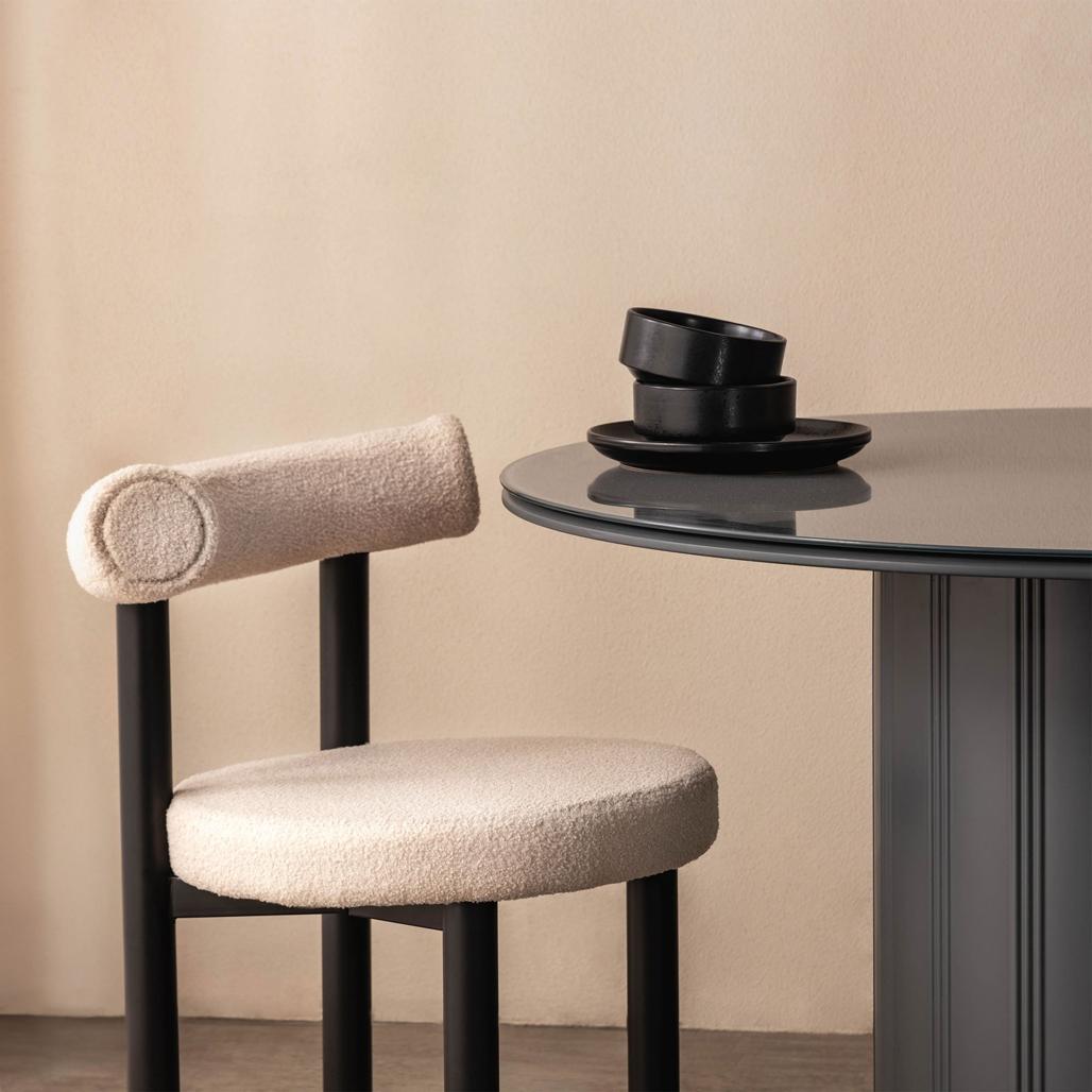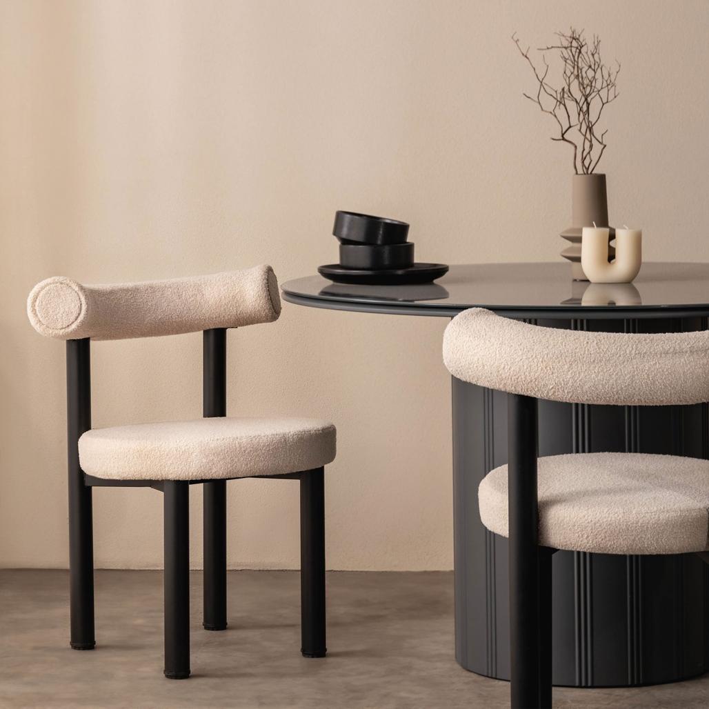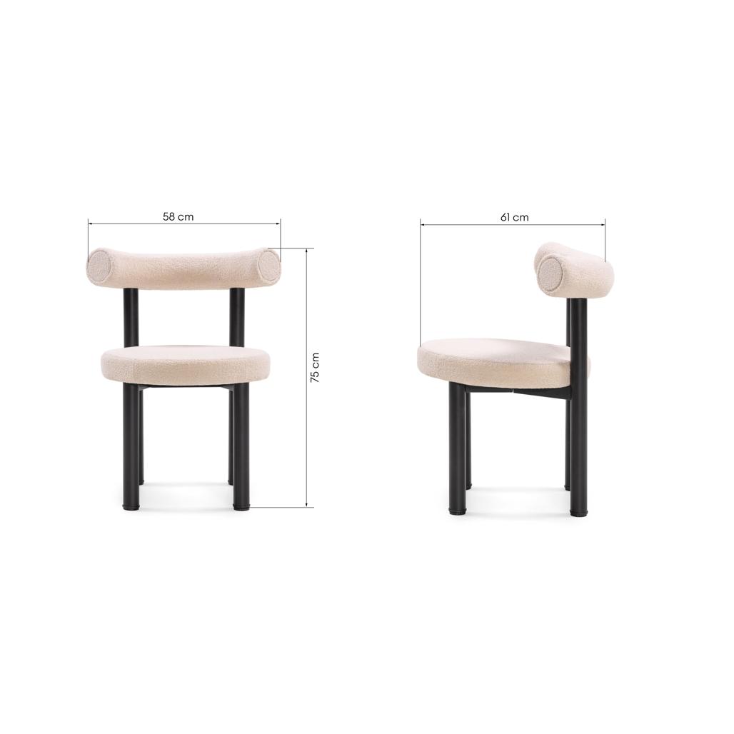 Söögitool PERER beež buklé-polster / mustad metalljalad. Tõstke oma söögituba uuele tasemele selle elegantse ja kutsuva tooliga. Selle ümar seljatugi pehme jaheda beeži tooniga buklé-kangas ja elegantsed mustad metalljalad loovad silmatorkava segu mugavusest ja kaasaegsest stiilist. Peamised omadused: Kumer ümber istme asetsev seljatugi suurema mugavuse tagamiseks. Polsterdatud pehme jaheda beeži buklé-kangaga. Erakordselt hubane tekstuur. Mustad metalljalad reguleeritavate jalgadega lisastabiilsuse tagamiseks. Rafineeritud ja moodne siluett. See tool kehastab moodsa disaini olemust mida on rikastatud läbimõeldud detailidega mis muudavad selle nii stiilseks kui ka funktsionaalseks. Ümar seljatugi kallistab õrnalt keha pakkudes lisaks visuaalsele pehmusele ka igapäevast mugavust – ideaalne pikkadeks eineteks või lõõgastavateks vestlusteks. Kombatav buklé-kangas lisab igale ruumile sügavust ja soojust mustad metalljalad aga pakuvad minimalistlikku ja modernset kontrasti. Nende reguleeritav disain tagab stabiilsuse ebatasastel pindadel muutes tooli nii praktiliseks kui ka visuaalselt atraktiivseks. Olenemata sellest kas see asetatakse söögituppa kööki või kodukontorisse on see pilkupüüdev tooliosa mis ühendab mugavuse ja stiili. Materjalid: Jalad: metall. Polster: buklé-kangas. Tähelepanu: min… Ostetud: 2 tükki Mõõdud Kõrgus: 75 cm Laius: 58 cm Sügavus: 61 cm