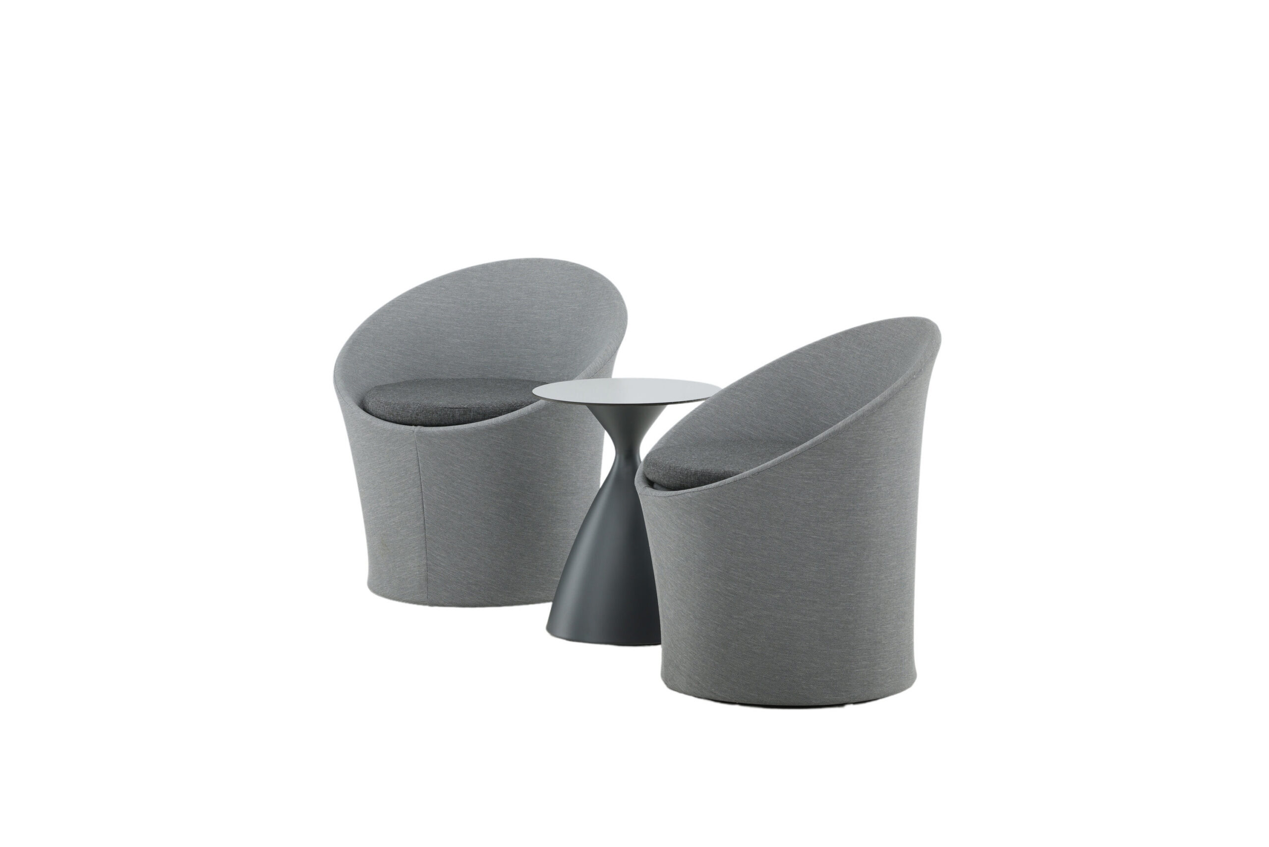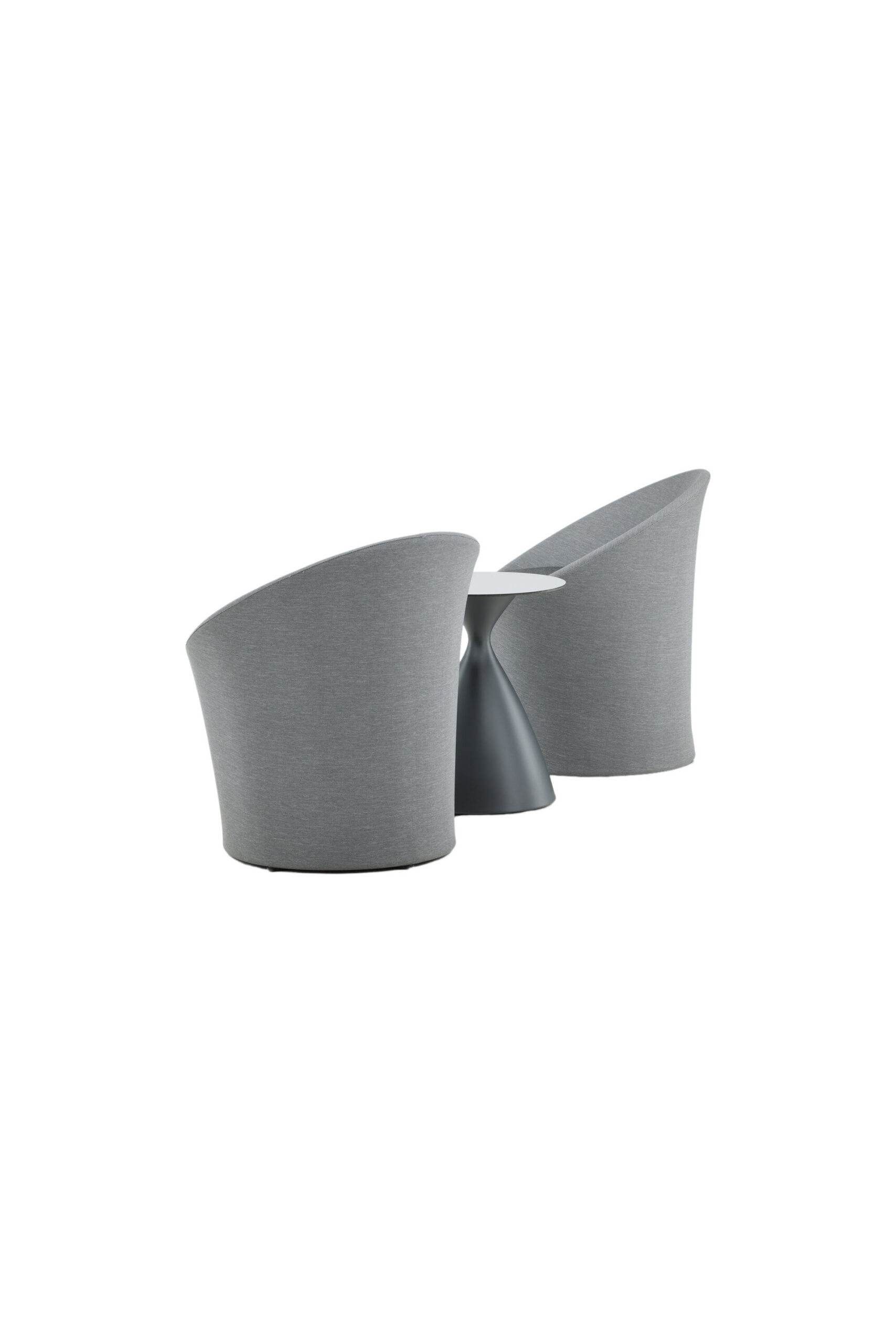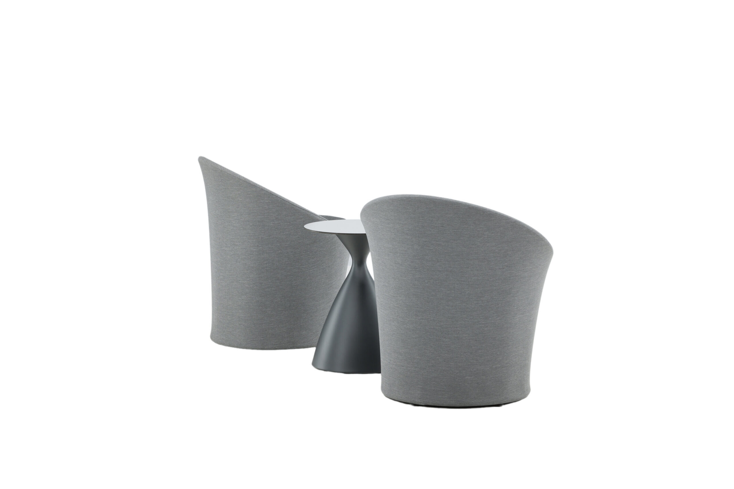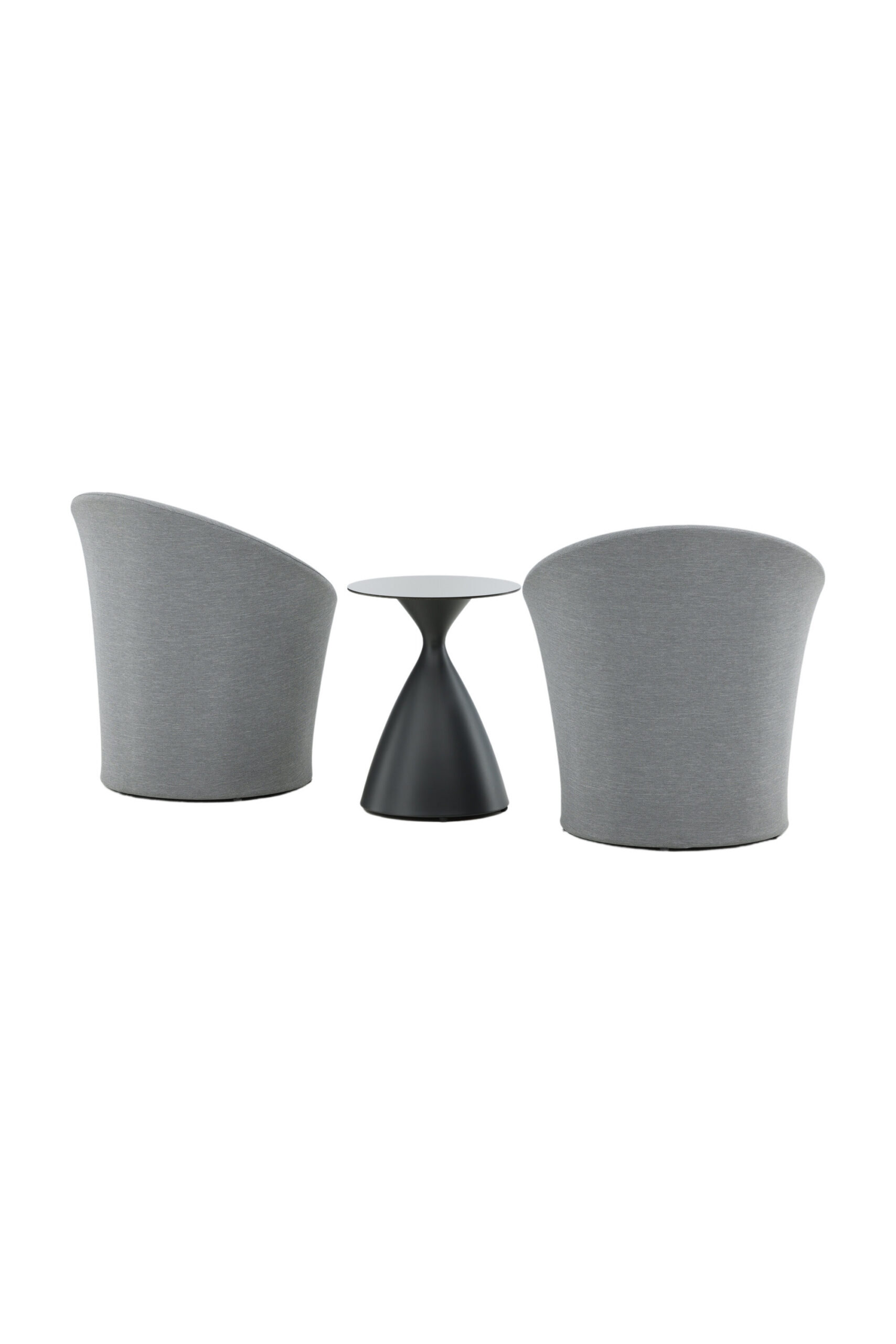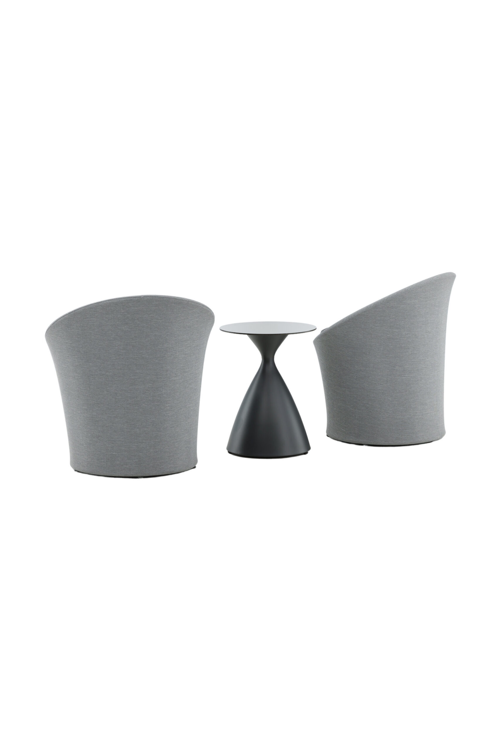 Andke sel suvel mööblile isikupärane hõng kaasaegse disainiga Spoga sarja hubase salongikomplektiga. Ümmargused vormid loovad kutsuva ja mugava välimuse, toolid on hõrgu halli värvi, valmistatud kangast ning sobiv korralik laud on mustast alumiiniumist. Nautige mõnusaid kohvitunde terrassil!