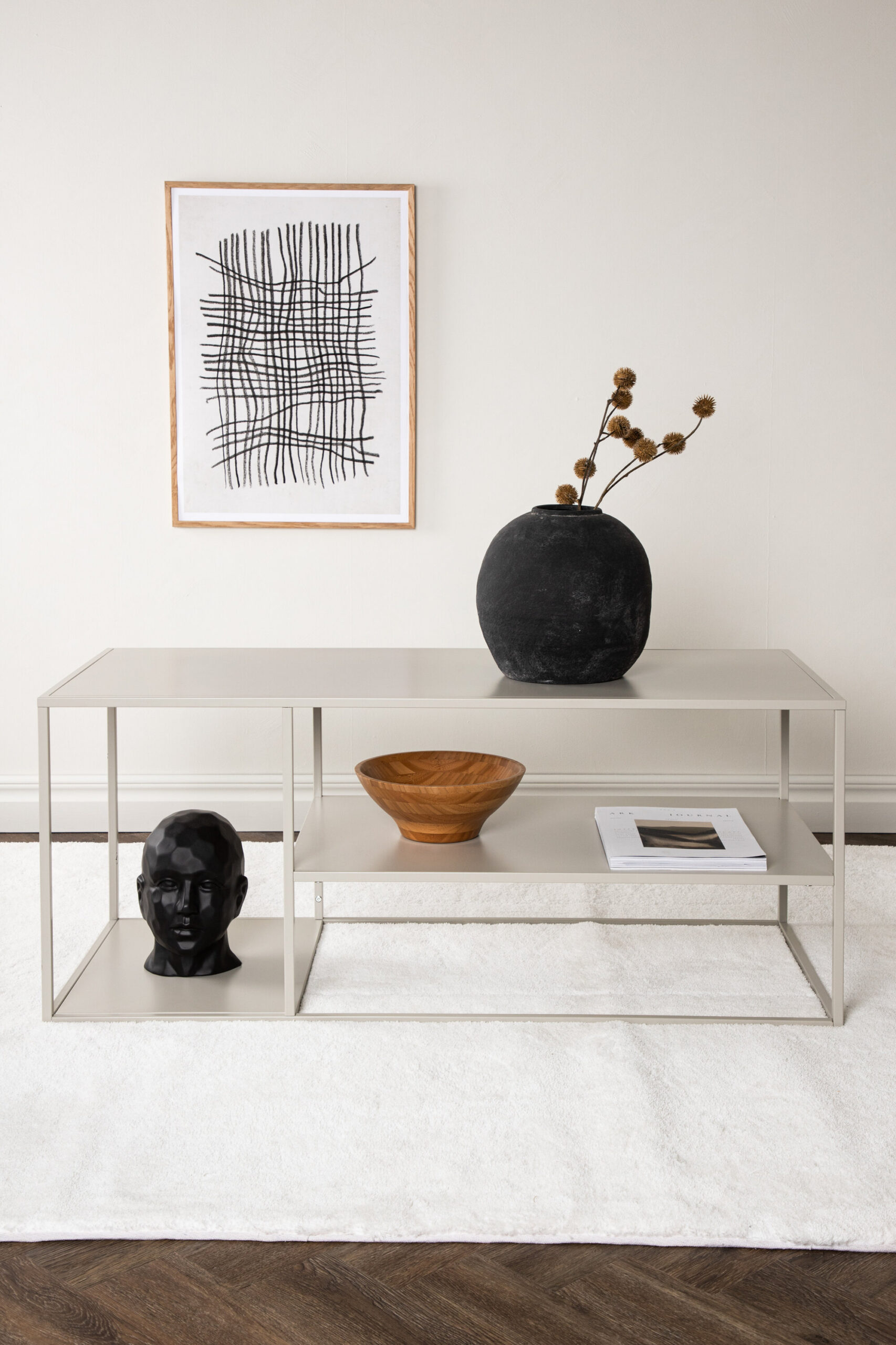 Loo oma kodus kaasaegne tunne! Staal, moodsa tööstusliku disainiga beežist pulbervärvitud terasest kolme praktilise reljeefpinnaga. See laud on oma stiilsete sirgete joonte ja moodsate ilmetega interjööris ilmne valik! Disain on sama sile kui stiilne ja toob ruumi õhulise tunde. Kasuta kohvilauana, reljeefse pinnana või abilauana – ainult kujutlusvõime seab piirid! Kaunista moodsate detailidega ja maksimeeri hoiupinda.