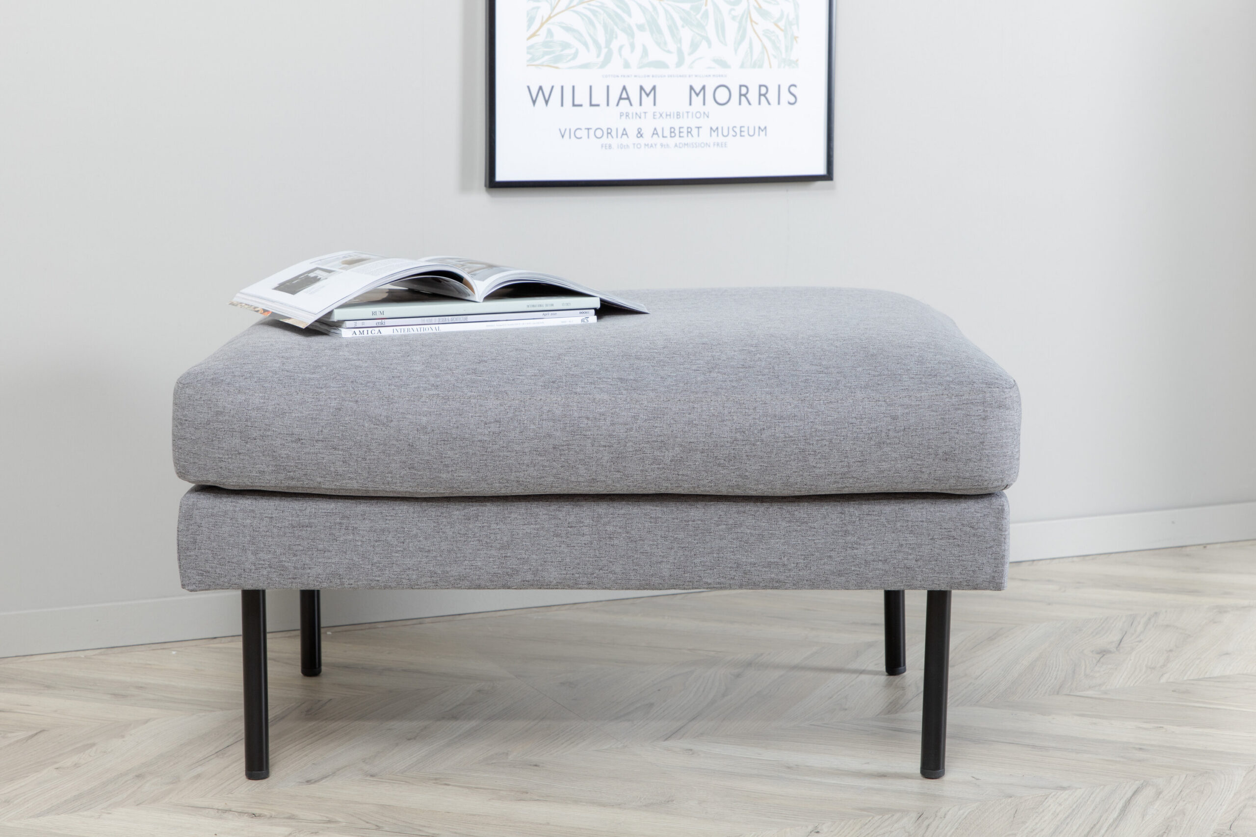 Sisusta korralikult ja nutikalt multifunktsionaalse istumispahviga! Istmepuhvi suum ühendab endas sirge põhjamaise disaini pehmete vormide ja trendika üldise mõtlemisega. See toimib sama hästi üksi maitsva stiiliikoonina kui ka meie sama sarja tugitooliga. Valmistatud mugavast halli värvi, mis püsib üle aja, stiilsest polüesterkangast ning puidust ja metallist raamiga. Jalad on stiilsed kitsad mustast metallist ja annavad pahvile luksusliku kõrguse. Täiustage oma kodu sisekujundust! Sitt puff Mõõdud: Laius: 64cm, Sügavus: 85cm, Kõrgus: 47cm.