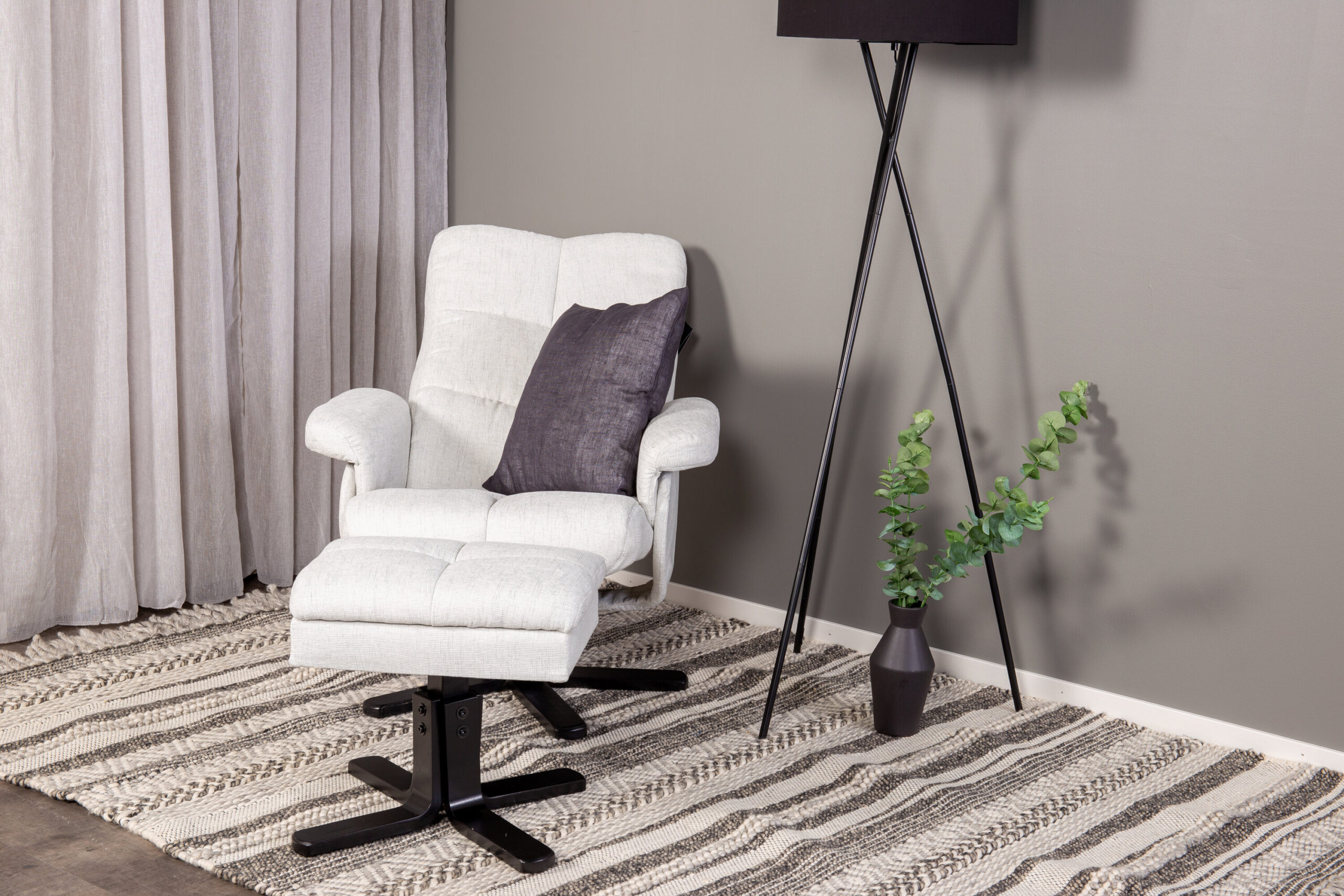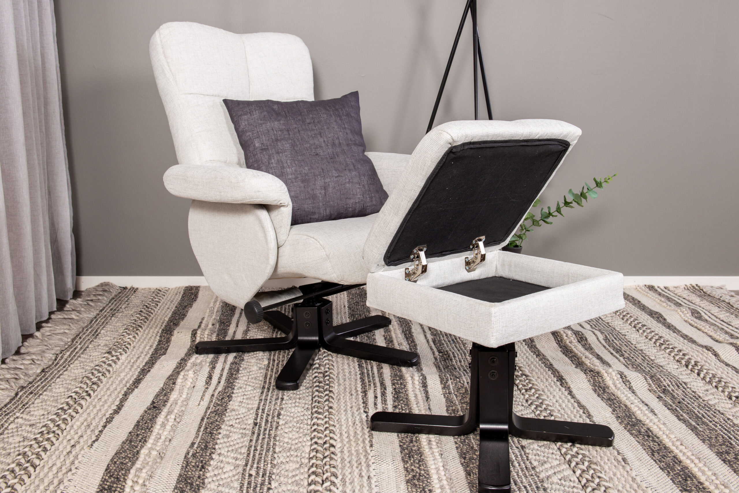 Stiilse disaini ja nutikate funktsioonidega praktiline tugitool – ükski kodu pole täiuslik ilma täiusliku tugitoolita! See Sven koos Ottomaniga tugitool on ideaalne valik teile, kes seab esikohale mugavuse. Seljatuge saab kokku panna erinevates astmetes ja ottomanis on sujuv panipaik. Stiilne helehall polster on polüesterkangast. Pugege kokku hubase teki alla, sirutage jalad pingile ja nautige vabu hetki mugavas ja praktilises tugitoolis!