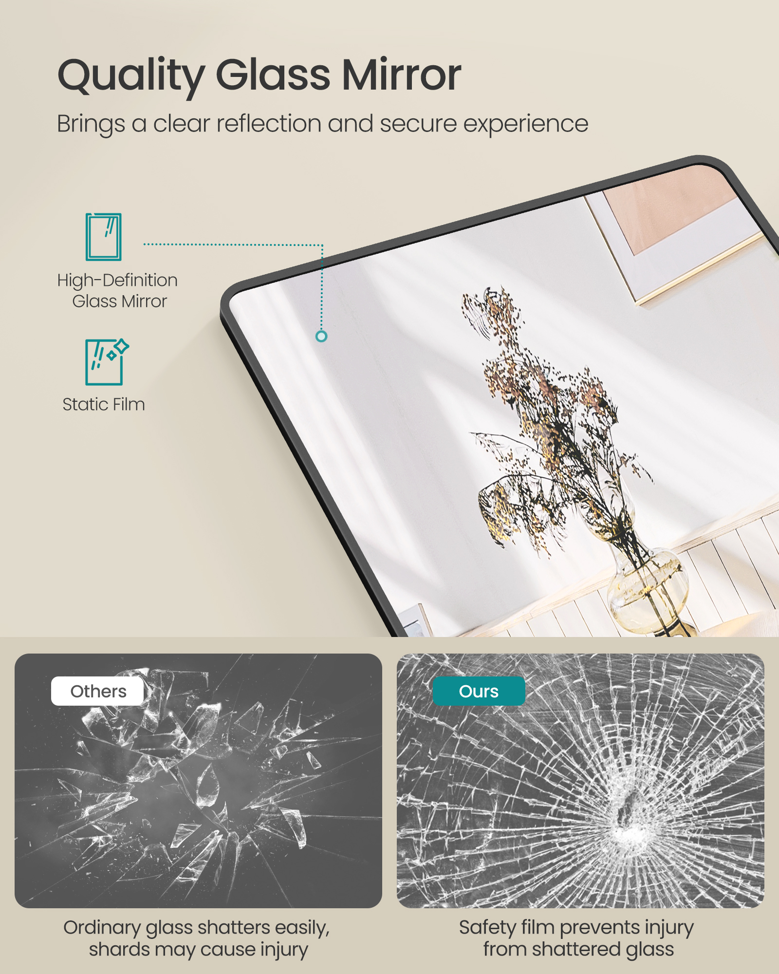 Toote üksikasjad: Värv: Tindimust Materjal: Karastatud klaas, alumiiniumisulam Suurus: 120 x 40 cm (P x L) Kaal: 4,2 kg Pakisisu: 1 x täispikk peegel 1 x tarvikute komplekt 1 x kasutusjuhend