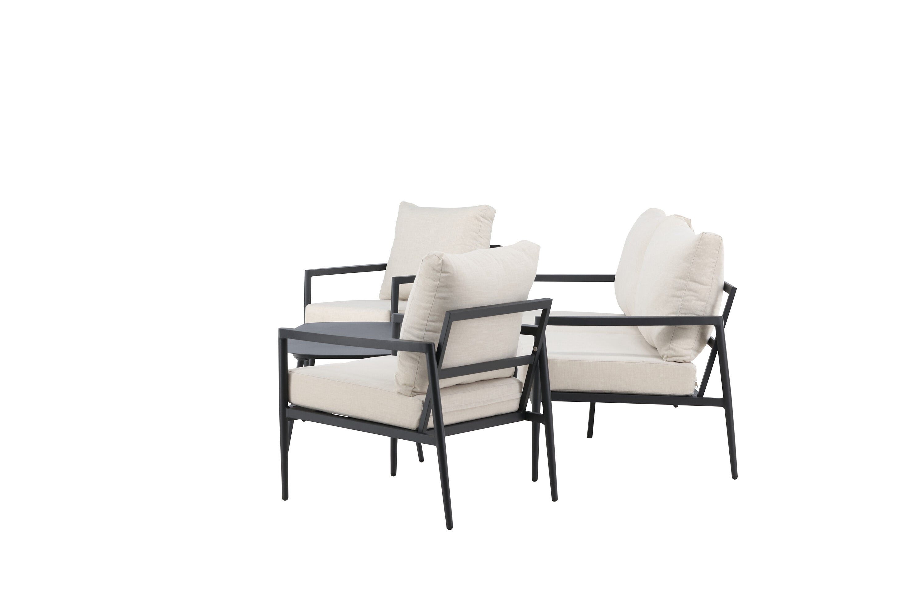 Taromina on stiilne mööblikomplekt, mis ühendab endas funktsionaalsuse ja disaini ning sobib suurepäraselt harmoonilise atmosfääri loomiseks teie terrassile, rõdule või aias. Komplekt koosneb mugavast diivanist, kahest tugitoolist ja praktilisest lauast – kõik elegantsest mustast alumiiniumist raamiga, mis loob kaasaegse ja peene tunde.