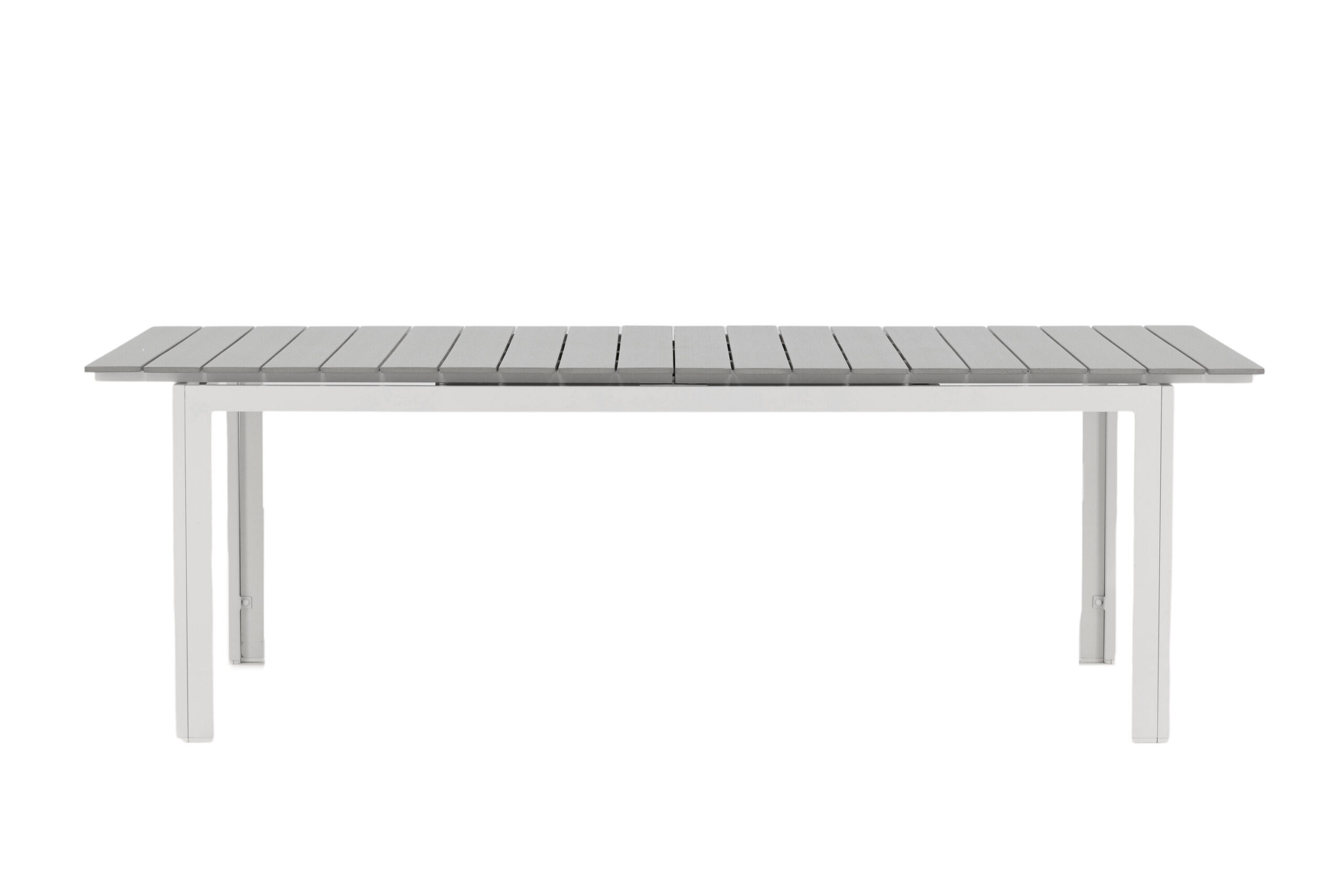 Pilkupüüdev söögilaud, mis püsib üle aja! Levels on meie pikendatav ristkülikukujuline stiilse disainiga söögilaud halli Aintwoodi lauaplaadi ja valge metallist alusvankriga. See sobib suurepäraselt nii õue kui ka terrassile ning seda saab kohandada nii väikestele kui suurtele pidudele – mida veel tahta? Parima vastupidavuse tagamiseks järgige meie hooldusnõuandeid!