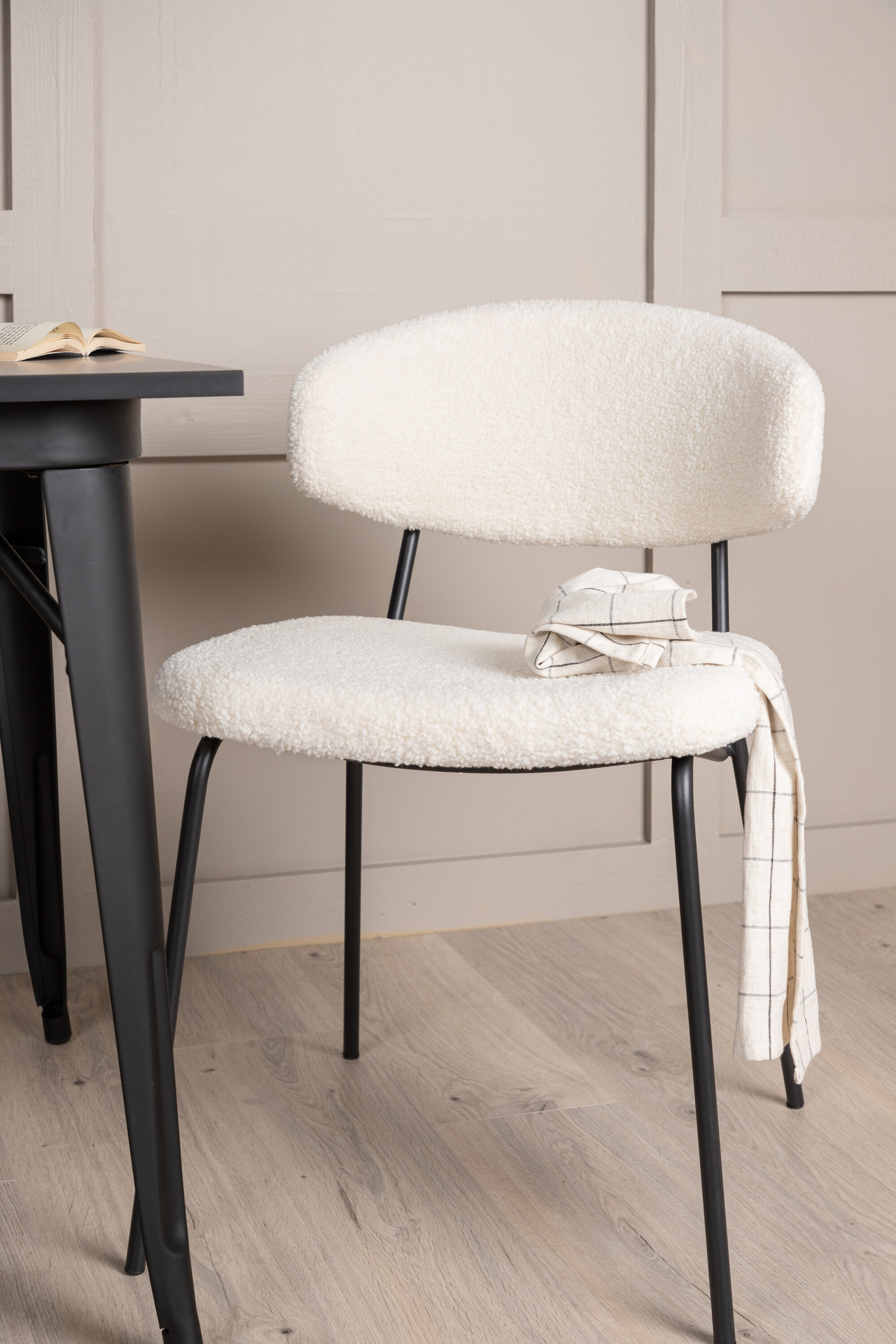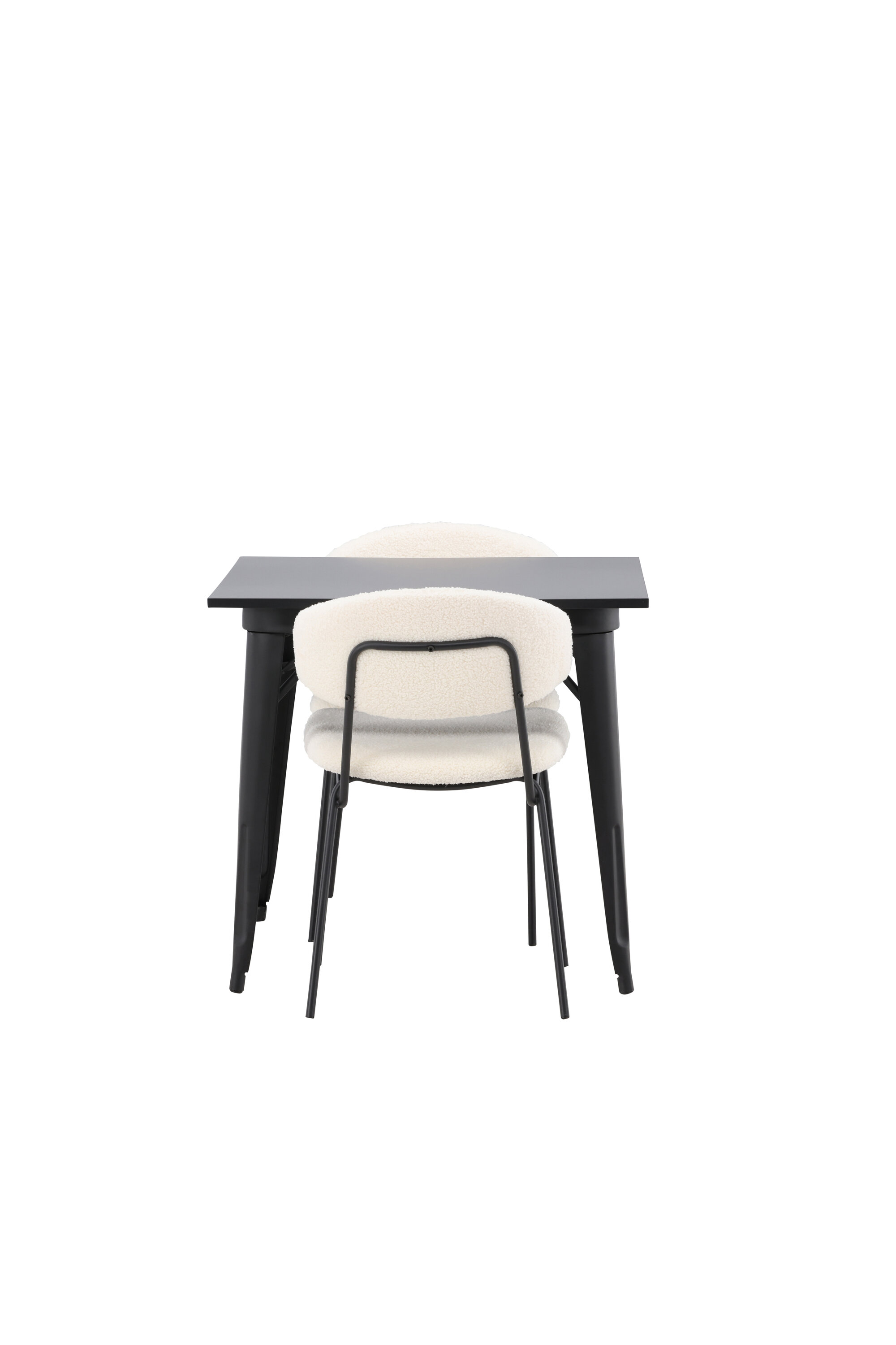 Võluv söögigrupp kahele – ideaalne väikesesse kööki! Sellel Tempe sarja söögilaual on klassikaline, kandiline disain ja ajatu must värv. Lauaplaat on mustast MDF-st ja lauajalad mustast metallist. Siin maitsekas kombinatsioonis kahe Chico sarja söögitooliga. Toolid on minimalistliku ja mugava disainiga, mille seljatugi ja iste on valgest boucle kangast ning kitsas mustast terasest raam. Siit saate pilgupüüdja, mis avaldab teie külalistele muljet!