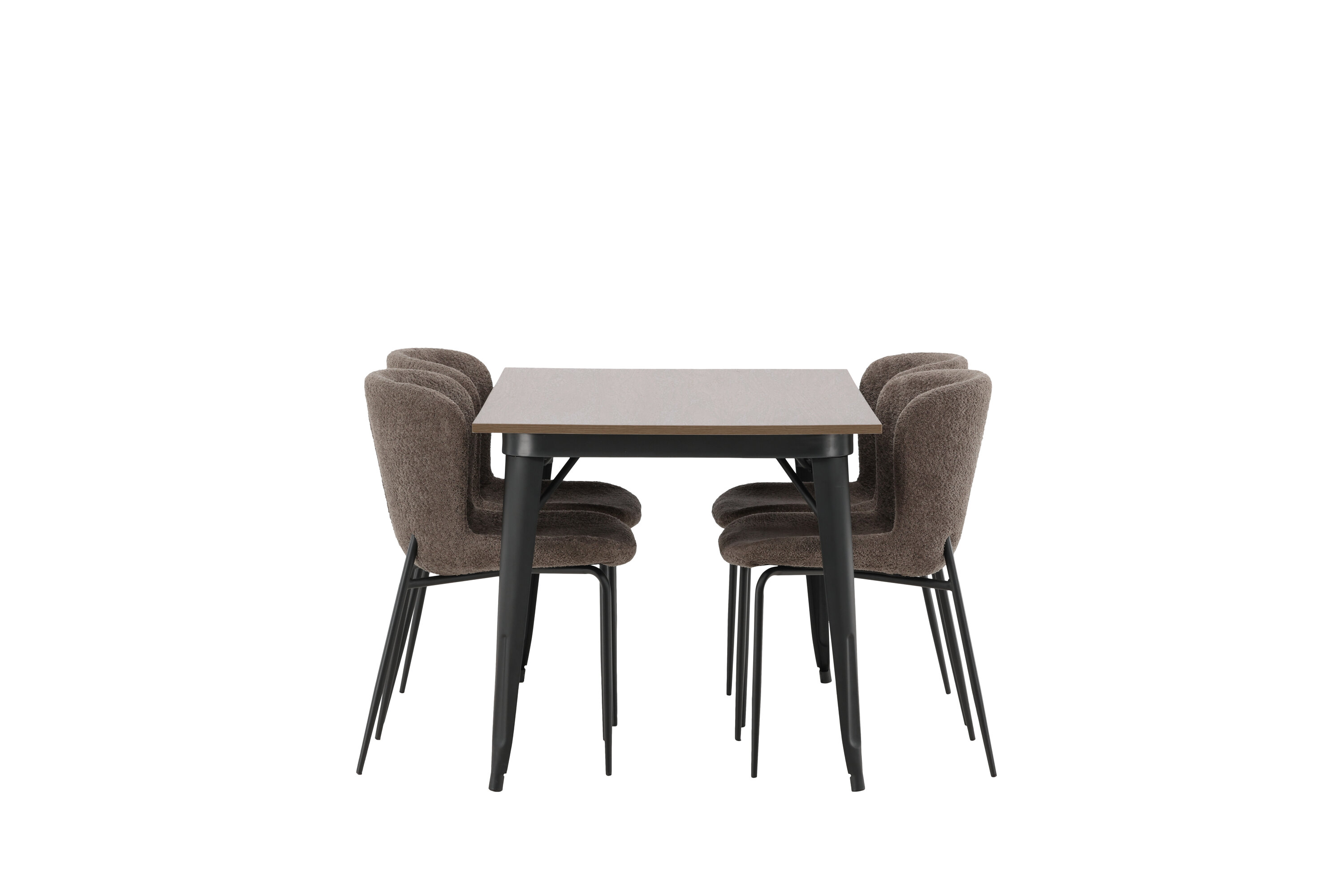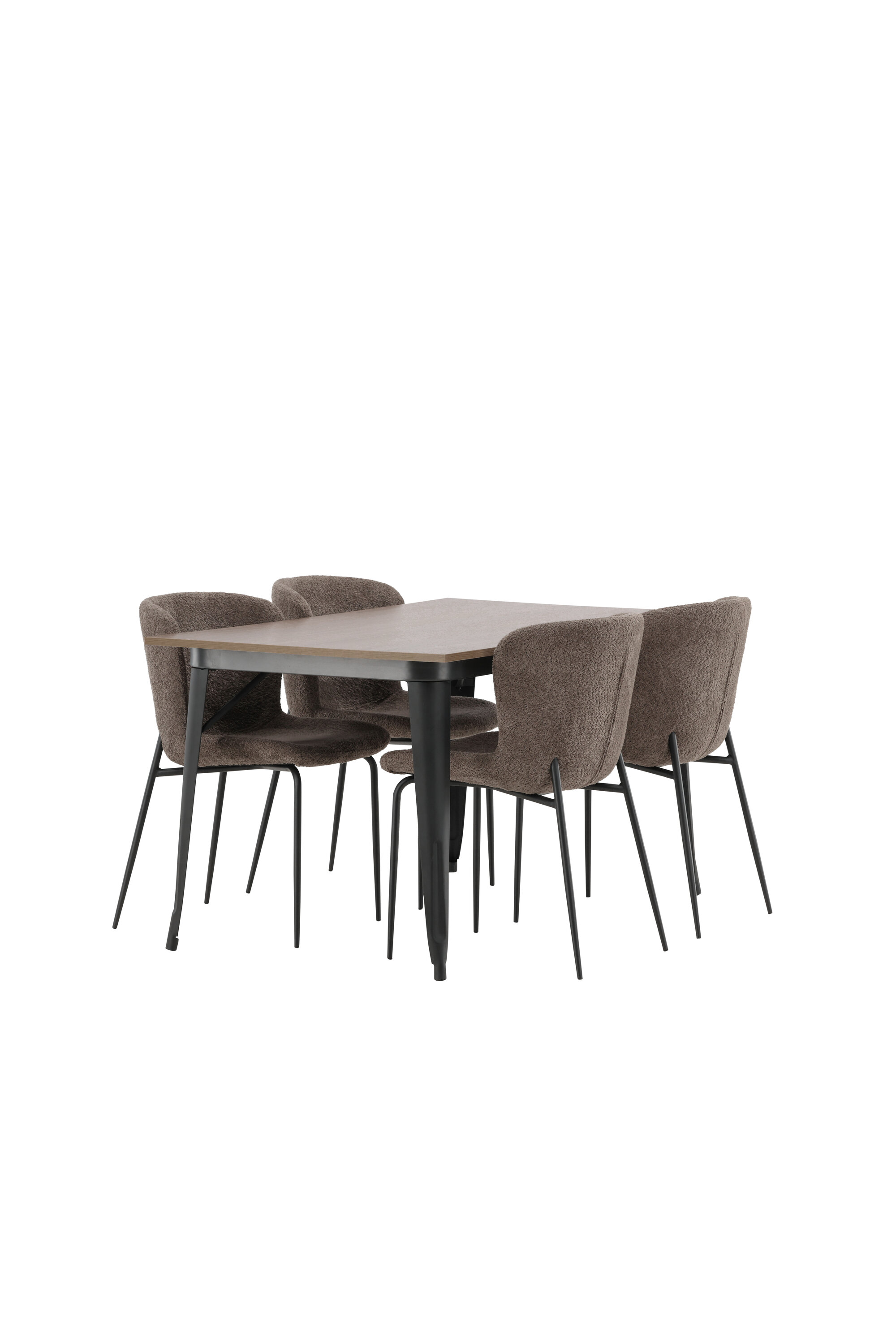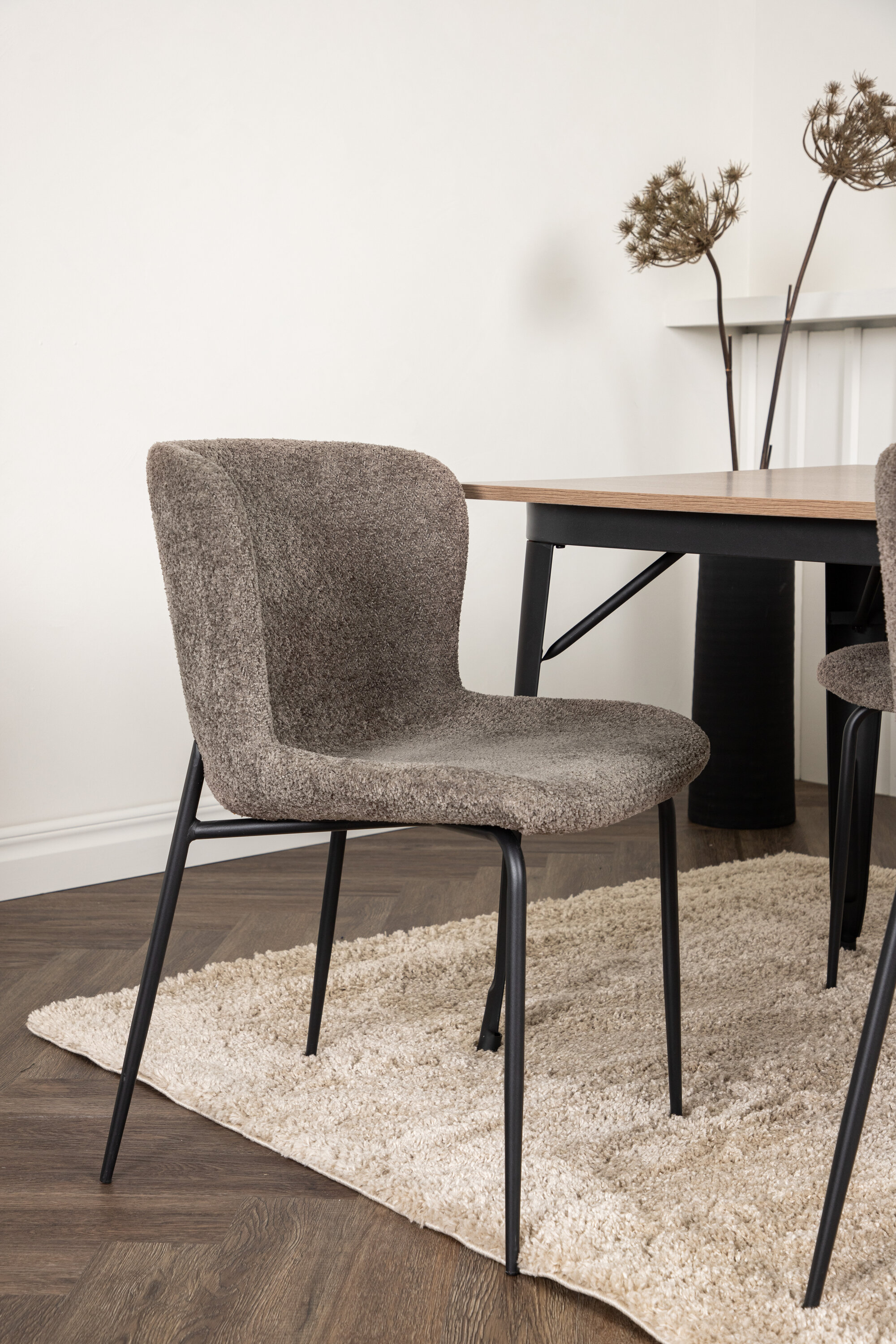 Stiilne, kaasaegne ja vastupidav – ajaproovile vastu pidanud söögigrupp! Tempe sarja söögilaud kuulub Venture Home kollektsiooni ja on pilkupüüdva, skandinaavialiku disainiga. Valmistatud mustast MDF-st kandilise lauaplaadiga ja mustast metallist jalad. Siin on ideaalne kombinatsioon meie mugavate Modesto seeria söögitoolidega. Tool on täielikult polsterdatud beeži bouclé-kangaga ja stiilsed kitsad mustast metallist jalad. Kergelt ümar seljatugi ja polsterdatud istmepadi pakuvad lisamugavust ja pikendavad söögilaua ümber mõnusaid eineid. Mõnusat sööki maha istudes peaks olema hea tunne!