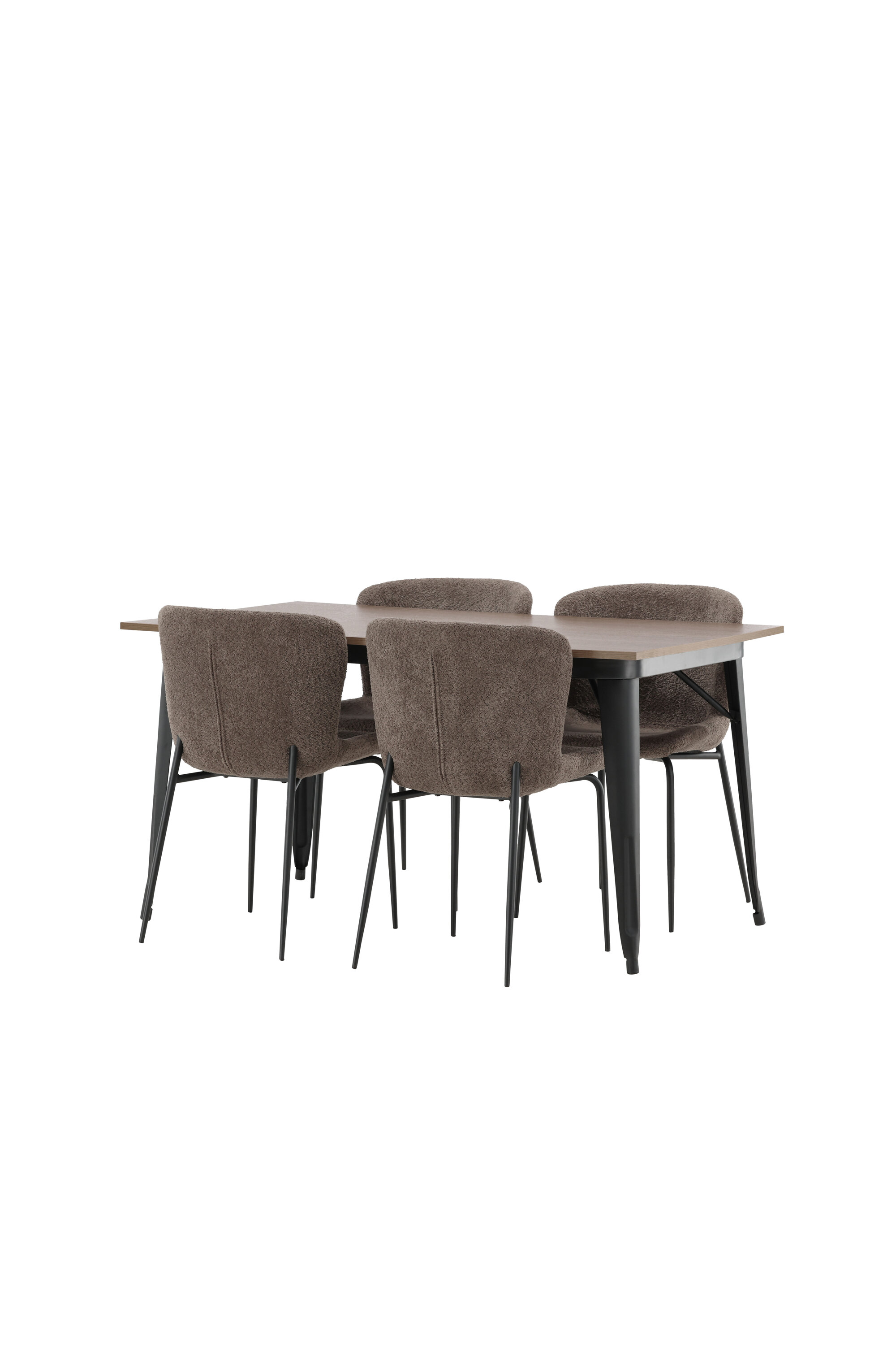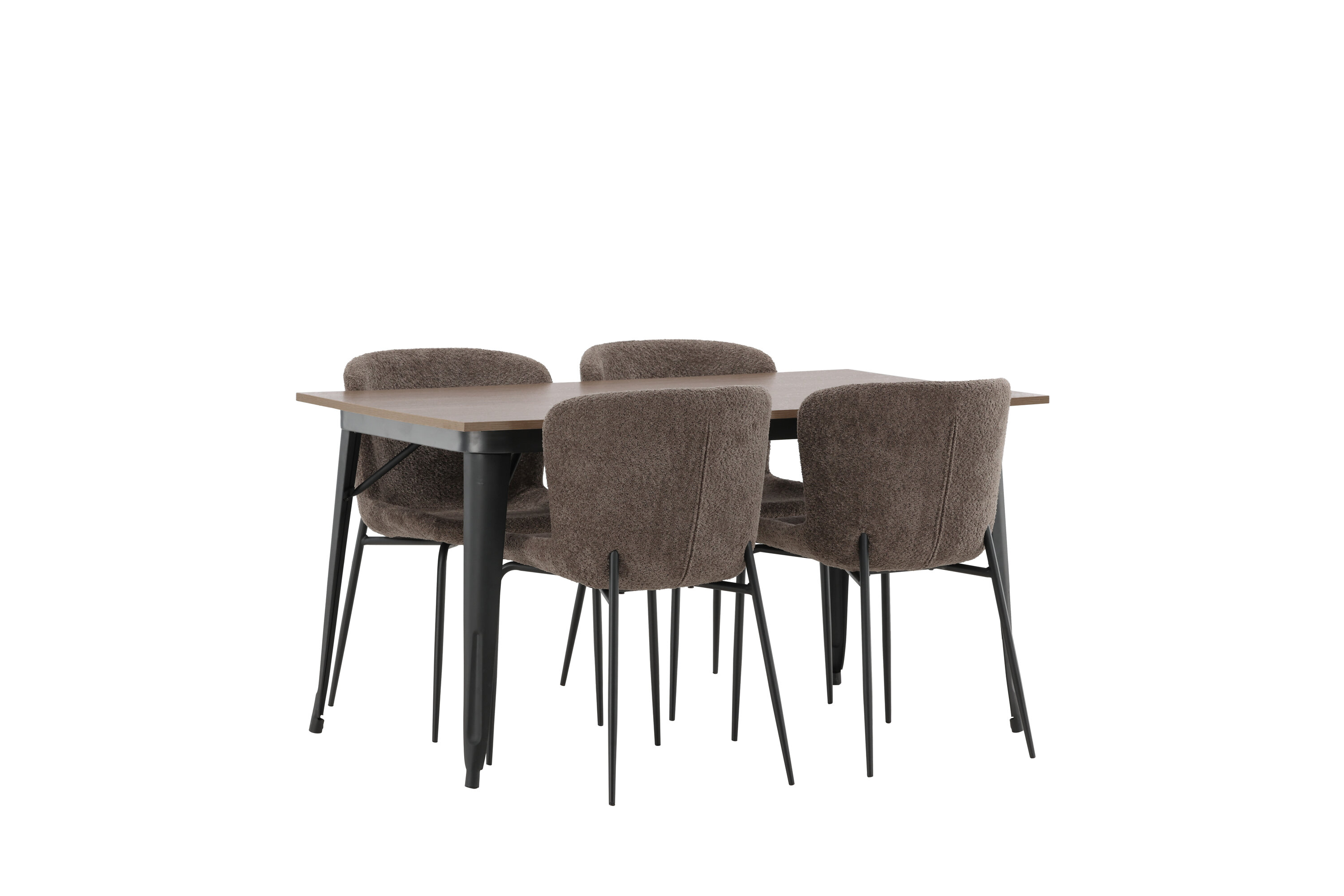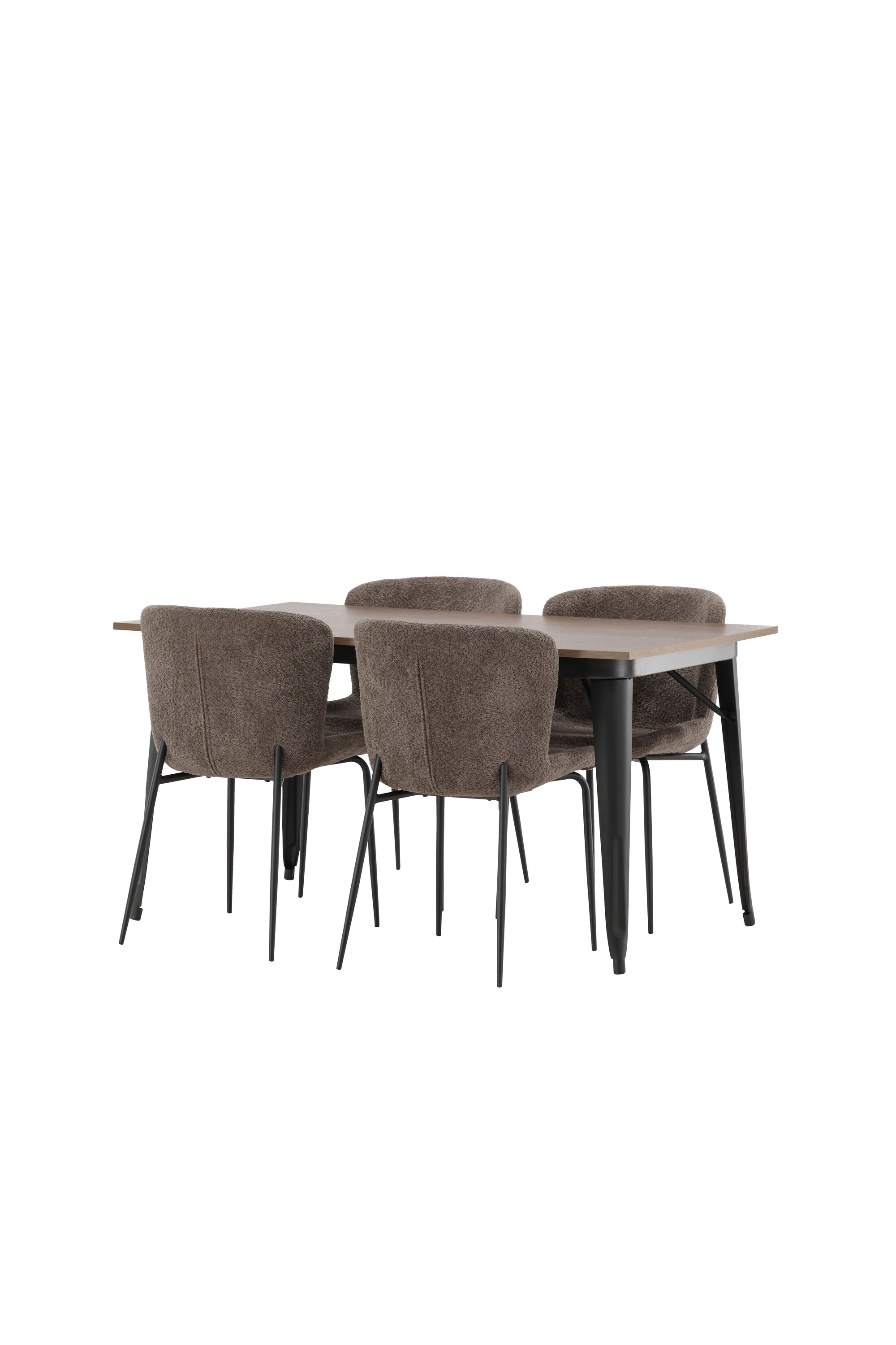 Stiilne, kaasaegne ja vastupidav – ajaproovile vastu pidanud söögigrupp! Tempe sarja söögilaud kuulub Venture Home kollektsiooni ja on pilkupüüdva, skandinaavialiku disainiga. Valmistatud mustast MDF-st kandilise lauaplaadiga ja mustast metallist jalad. Siin on ideaalne kombinatsioon meie mugavate Modesto seeria söögitoolidega. Tool on täielikult polsterdatud beeži bouclé-kangaga ja stiilsed kitsad mustast metallist jalad. Kergelt ümar seljatugi ja polsterdatud istmepadi pakuvad lisamugavust ja pikendavad söögilaua ümber mõnusaid eineid. Mõnusat sööki maha istudes peaks olema hea tunne!