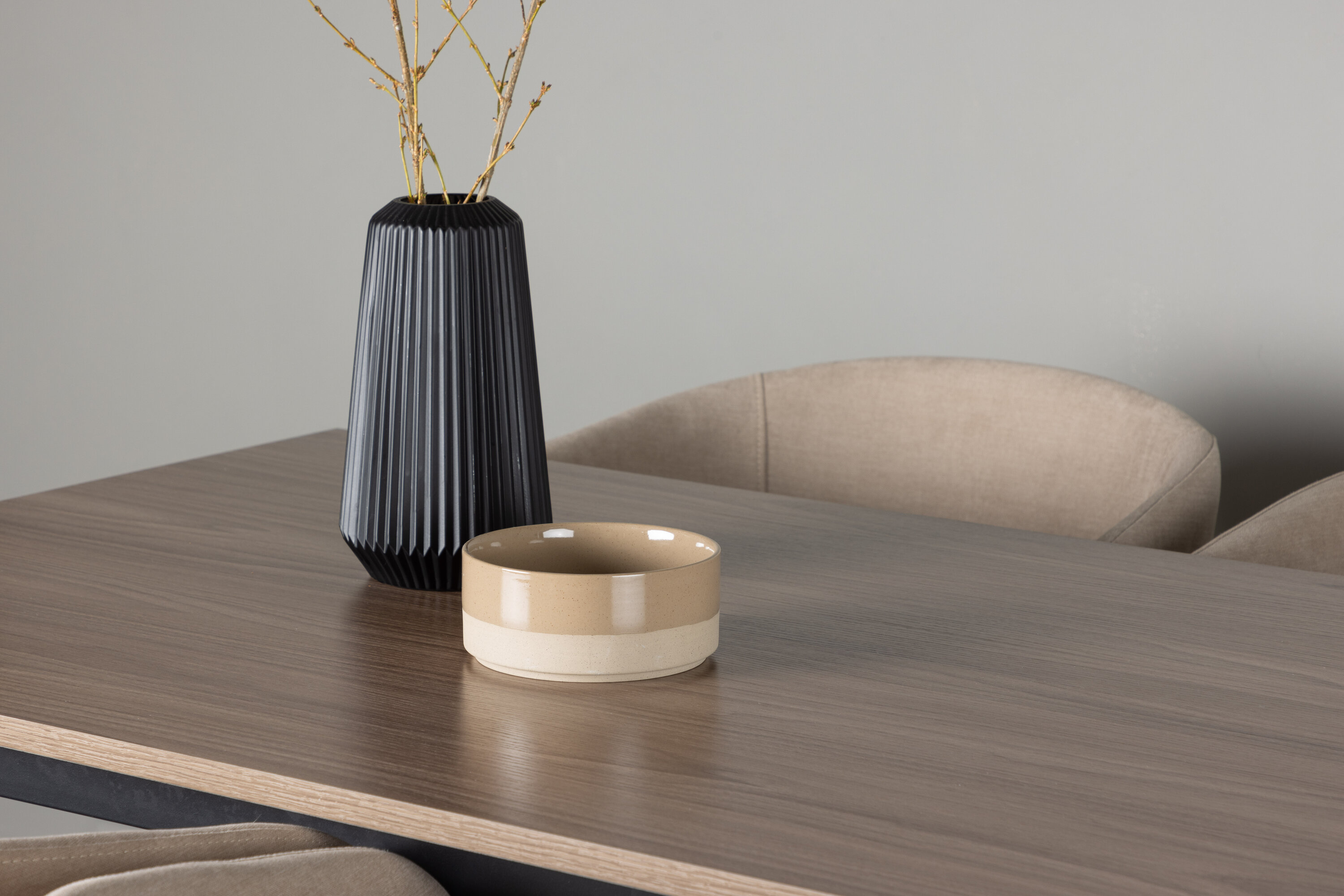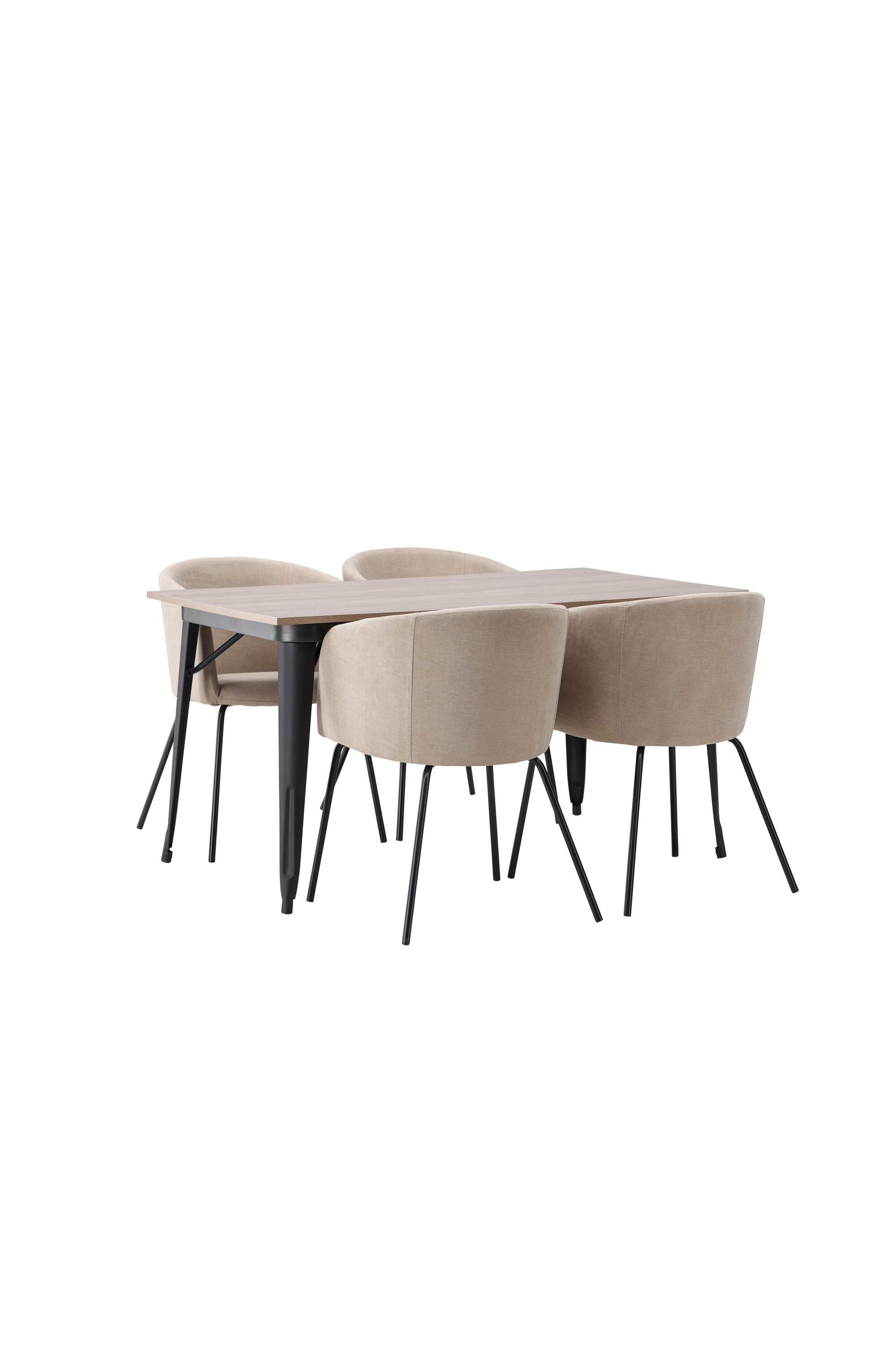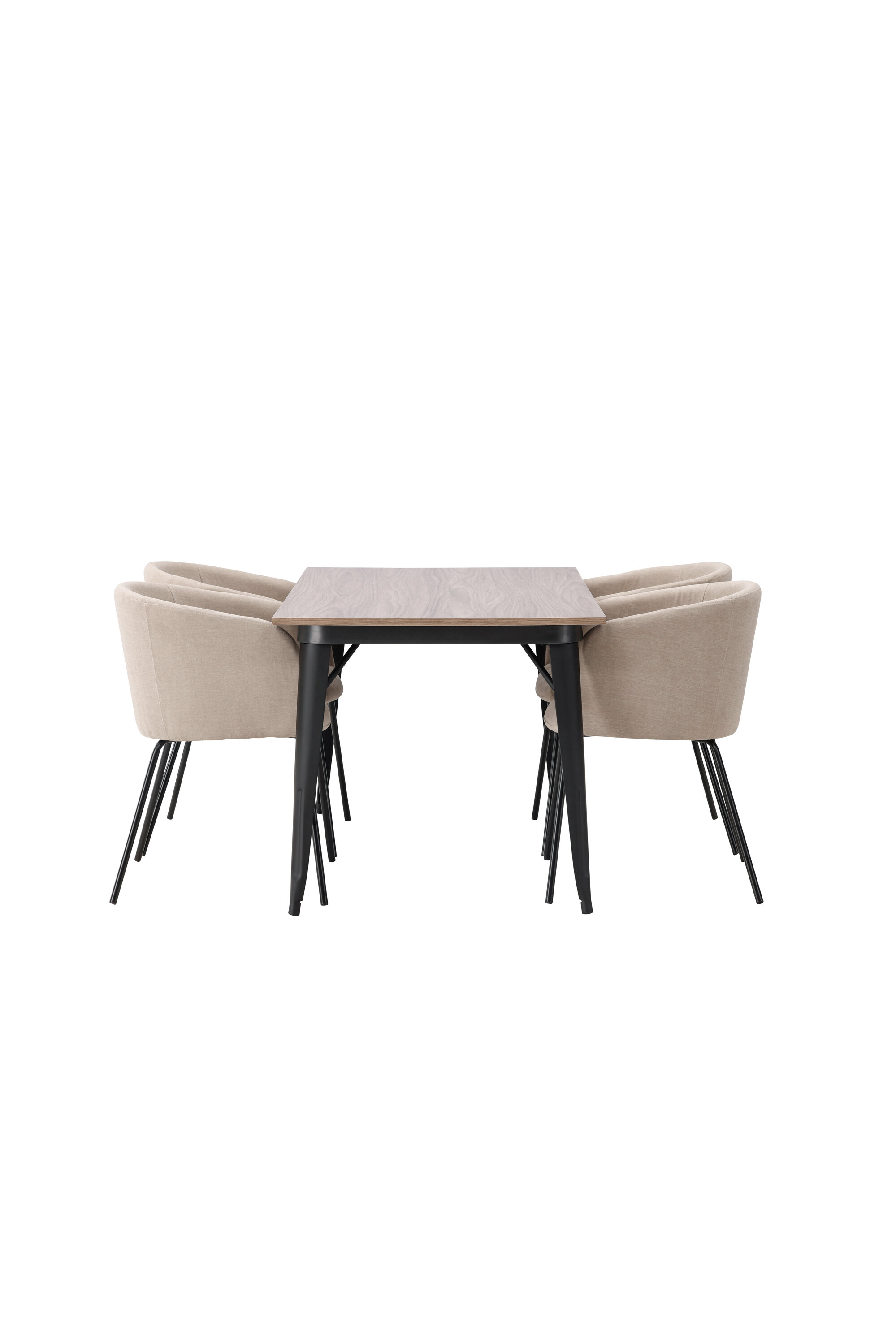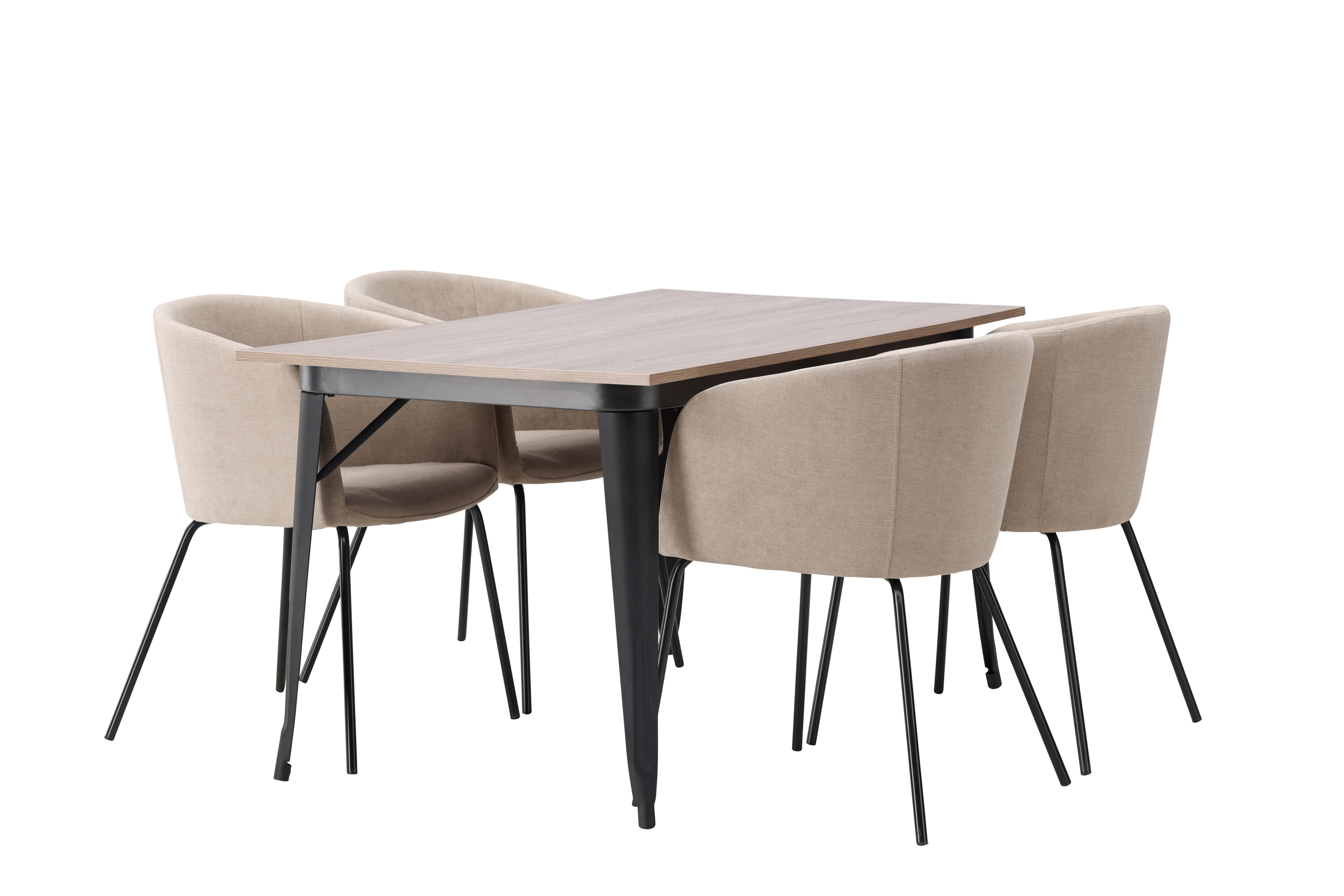 Fantastiline söögigrupp kõigi õigete funktsioonidega! Tempe sarja söögilaud on stiilse skandinaavialiku disainiga. Valmistatud ruudukujulisest pähklivärvi MDF-ist lauaplaadist ja mustast metallist lauajalad. Siin koos meie mugavate söögitoolidega Berit. Toolil on täielikult polsterdatud disain, kergelt ümardatud seljatugi ja iste polüesterlinast ning kitsad mustast rauast jalad. Siin saate teie ja teie külalised pidulikult istuda! Laua mõõdud: 140x80cm.