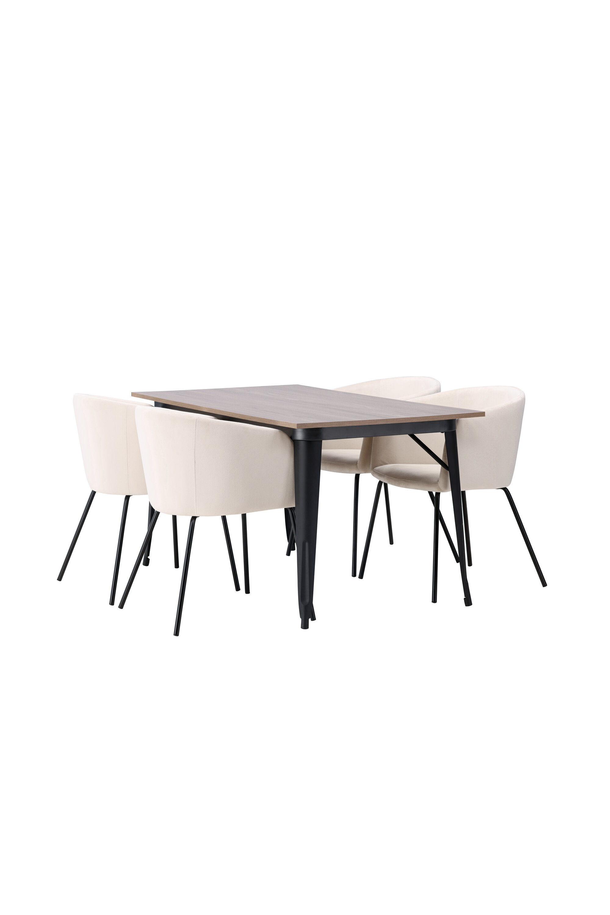 Elegantne, suursugune ja hubane söögiseltskond! Tempe sarja söögilaud on stiilse skandinaavialiku disainiga. Valmistatud ruudukujulisest pähklivärvi MDF-ist lauaplaadist ja mustast metallist lauajalad. Siin koos meie suurepäraste söögitoolidega Berit. Toolil on täielikult polsterdatud disain, mille seljatugi ja iste on kergelt ümardatud sametkangast ning kitsad mustast rauast toolijalad. Sisusta kodu süda võluvalt! Laua mõõdud: 140x80cm.