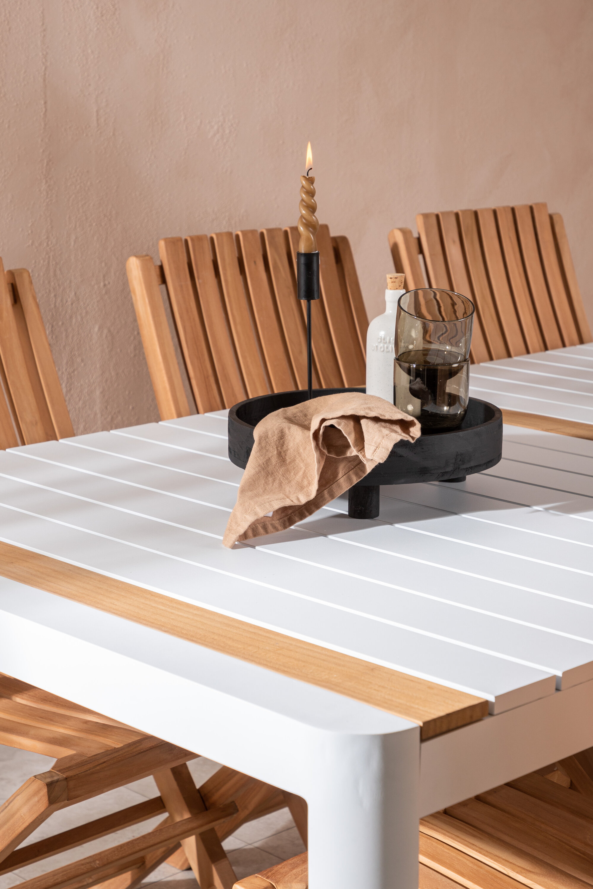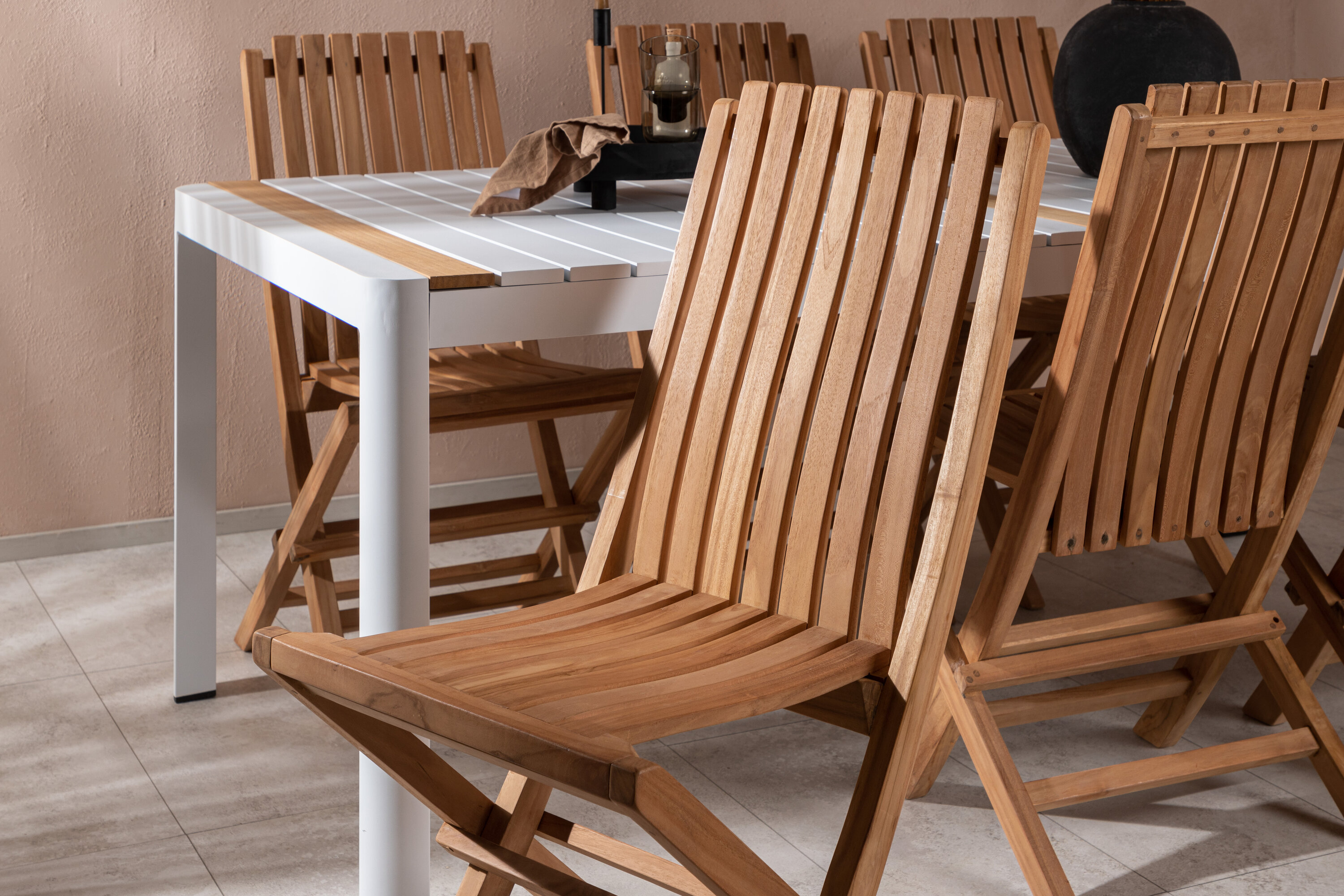 Loo elegantne pilgupüüdja, mis avaldab muljet – see toidugrupp on sama pilkupüüdev kui vastupidav! Söögilaual Togo on maitsekas versioon valgest ja puidust tiikpuust ristkülikukujulise lauaplaadi ja valge alumiiniumist alusvankriga. Lauaplaadi maitsvad tiikpuust detailid sobivad suurepäraselt kokku Ghana sarja söögitoolidega. Toolid on kokkupandavad ja valmistatud maitsekast tiikpuust sooniku disainiga, mis jätab väga kaasaegse mulje. Olgu siinne aeg päeva tipphetk!