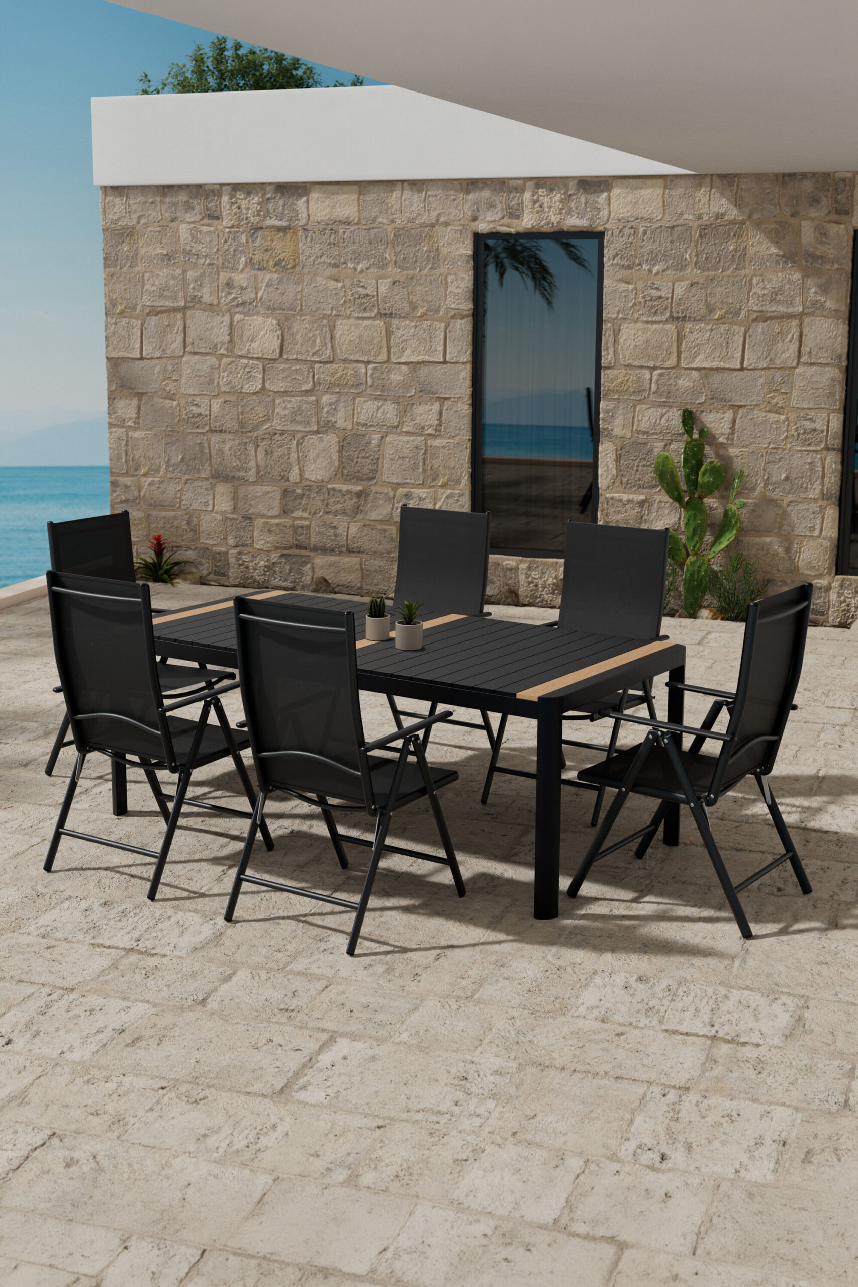Nautige suviseid eineid stiilses ja funktsionaalses söögikomplektis, kus Breaki lamamistoolid kohtuvad ajatu Togo söögilauaga.