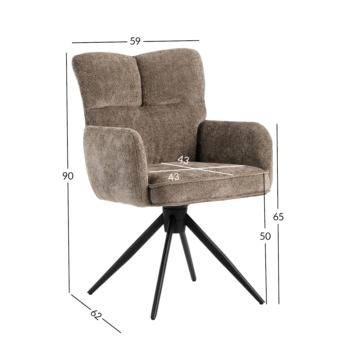 Tooli üldmõõdud on 59x62xH90cm. Istme laius 43cm, istme sügavus 43cm, istme kõrgus 50cm. Käetoe kõrgus maast 65cm.