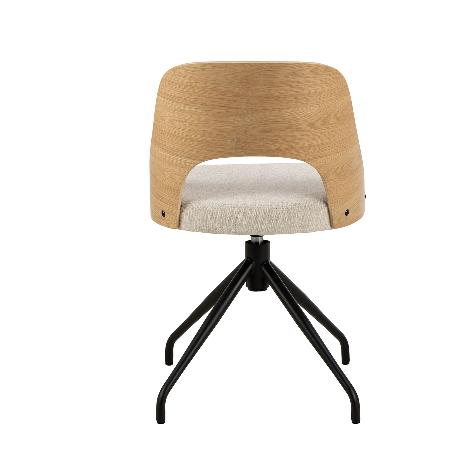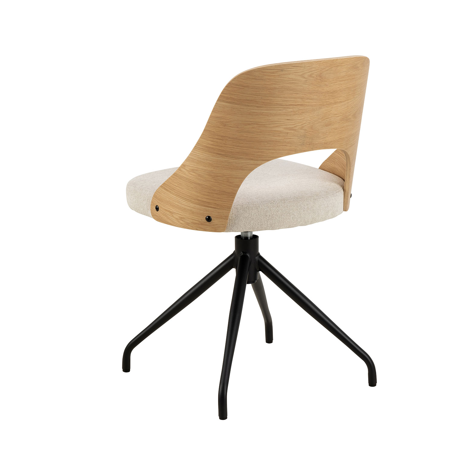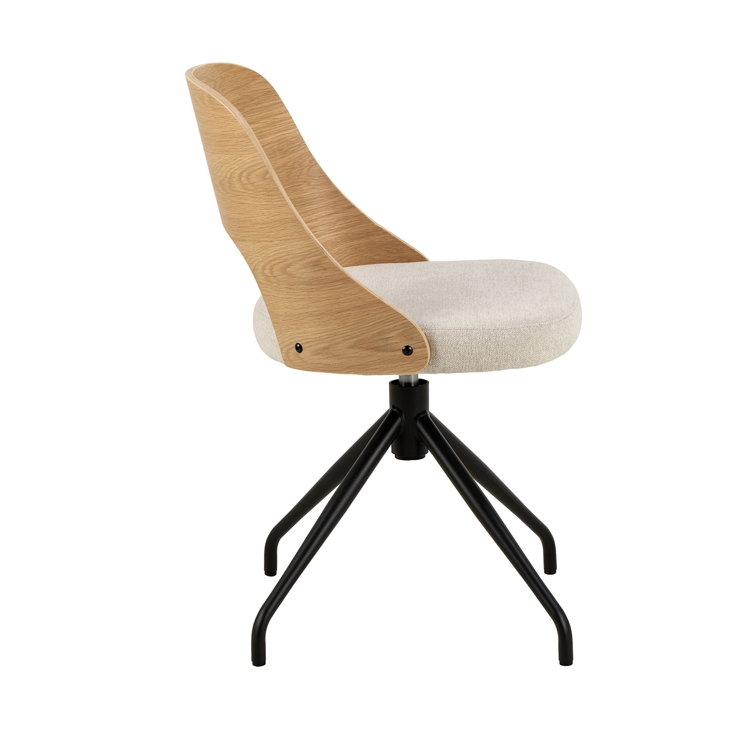 Söögitool ühendab moodsa ilme klassikalise Skandinaavia esteetikaga. Toolil on lakitud tammespoonist ümar seljatugi ja beež istmepadi. Musta värvi alusel on pöördefunktsioon, mis võimaldab mugavalt asendit muuta. Kangas: 100% polüester, Martindale > 40 000. Jalad: pulbervärvitud teras. Toote mõõdud on 48x53xH79cm.