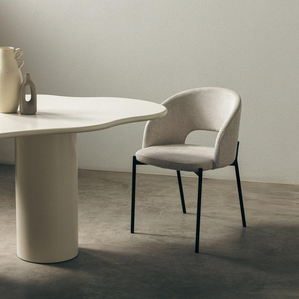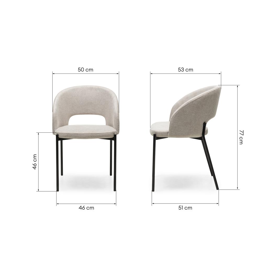 MORES tool on kaasaegne mööbliese mis on loodud muutma iga hetke perega lauas nauditavamaks. Selle pehme iste ja seljatugi mis on polsterdatud elegantse beeži Belfast kangaga tagavad püsiva mugavuse igapäevasel kasutamisel. Seljatoe iseloomulik väljalõige lisab modernset disaini samas kui tugevad mustad metalljalad pakuvad stabiilsust ja elegantset kontrasti. Seljatugi väljalõigetega Polster: Belfast 23 kangas Värvus: Beež Jalad: Must metall Tähelepanu: Minimaalne ost: 2 tk Mõõtmed Kõrgus: 77 cm Laius: 50 cm Sügavus: 53 cm Istme kõrgus: 46 cm Istme laius: 49 cm Istme sügavus: 45 cm