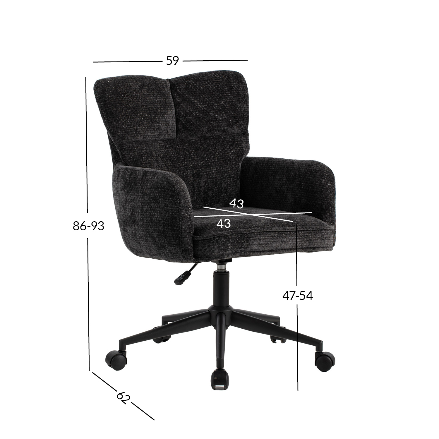 Tooli üldmõõdud on 59x62xH86-93cm. Istme laius 43cm, istme sügavus 43cm, istme kõrgus 47-54cm.