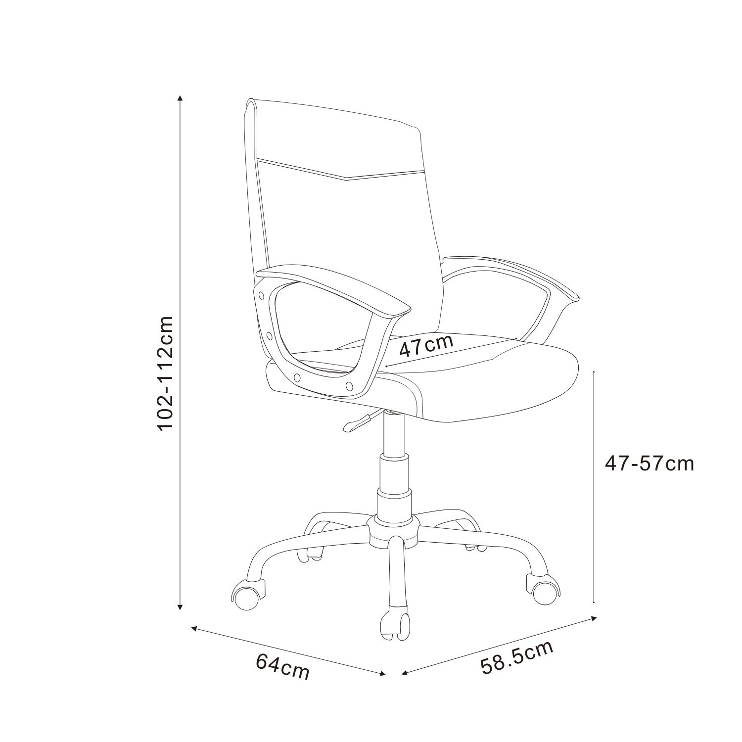 Tooli üldmõõdud on 58,5x64xH102-112cm. Istme laius 47cm, istme sügavus 44cm, istme kõrgus 47-57cm.