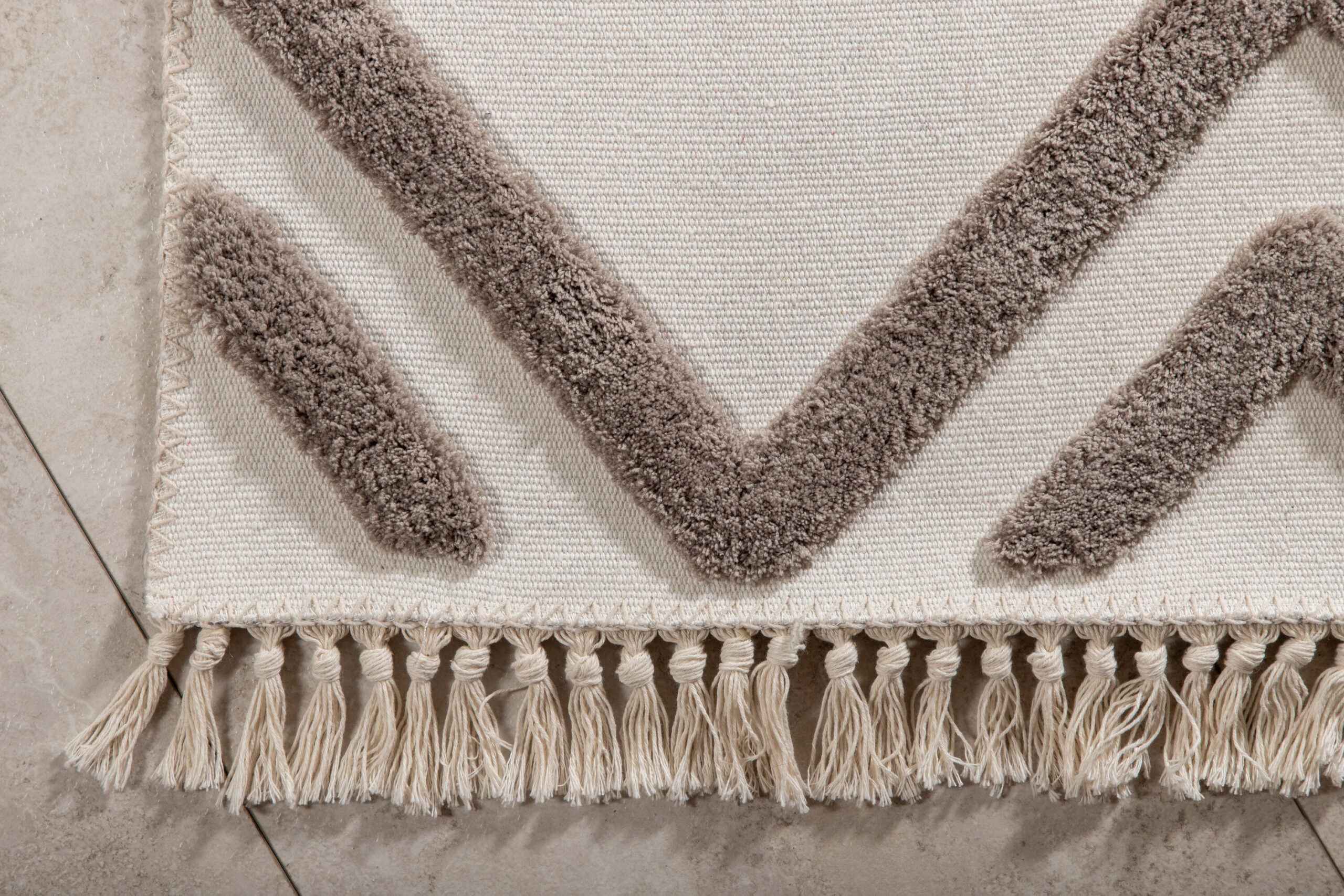 Kaunista kodu moodsa vaibaga, mis annab ruumis tooni! Polüestermatiga Towa saate soojendava ja hubase vaiba, mis oma ainulaadse disainiga tõmbab teie pilke. Stiilne valge vaip on kaunilt kõrgendatud, struktureeritud pruuni mustriga, mis annab matile maitsva sügavuse ja ruumile uued mõõtmed. Vaibal on ka lühikestel külgedel dekoratiivsed narmad, mis vaipa kenasti raamivad. Asetage elutuppa või mujale, kus see saab väärilist tähelepanu! Vaip on saadaval erinevates suurustes ja värvides.
