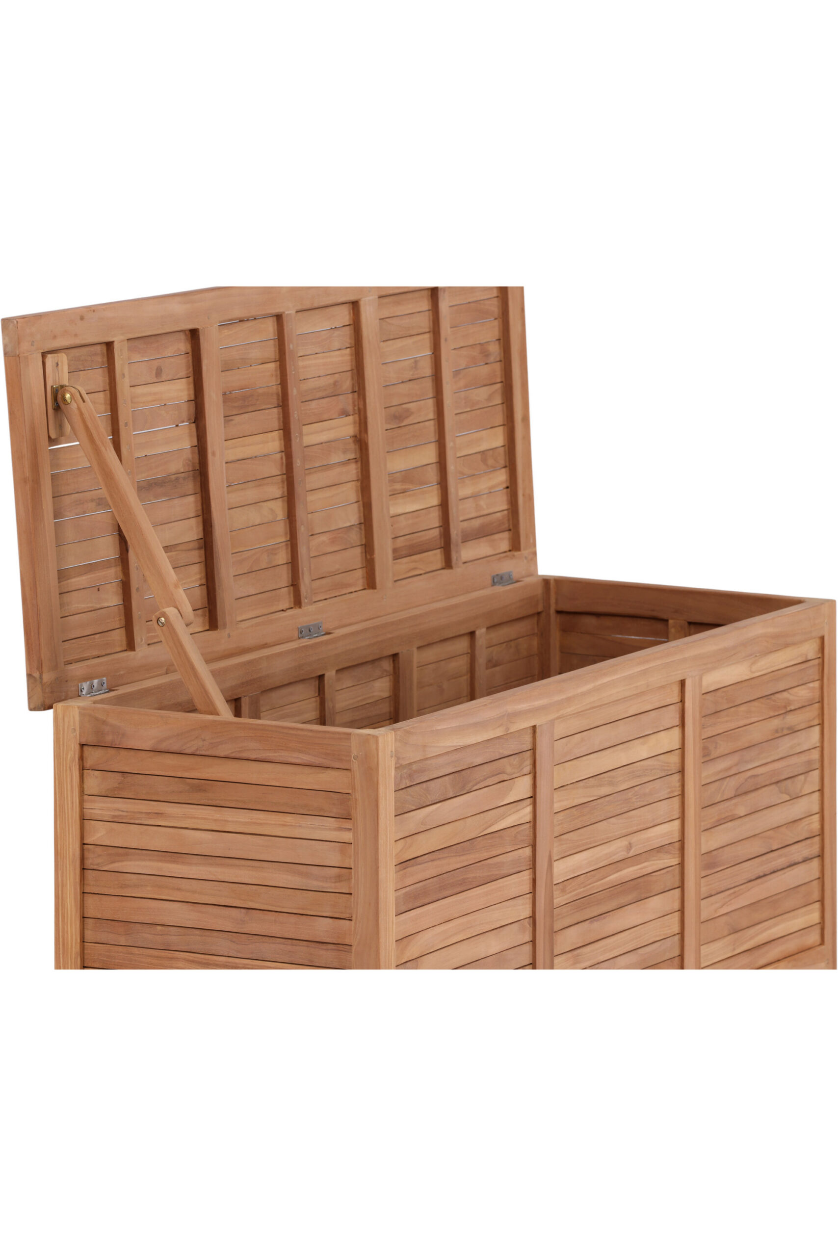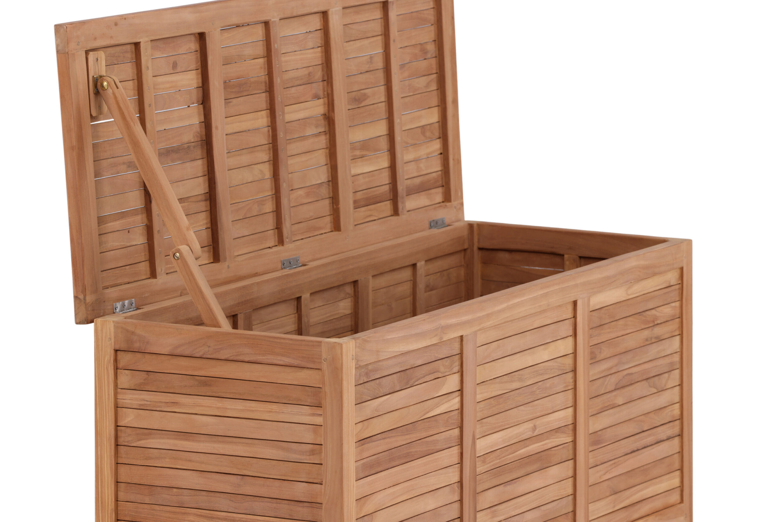 Tiikpuidu loomulik vastupidavus ilmastikule ja tuulele annab karbile vastupidavuse aastaringselt. Kast on siiski soovitatav paigutada katuse alla või varjulisemasse kohta, kui kavatsete seda kasutada ainult patjade hoidmiseks – see tagab patjade kuivamise ja heas seisukorras püsimise aja jooksul.