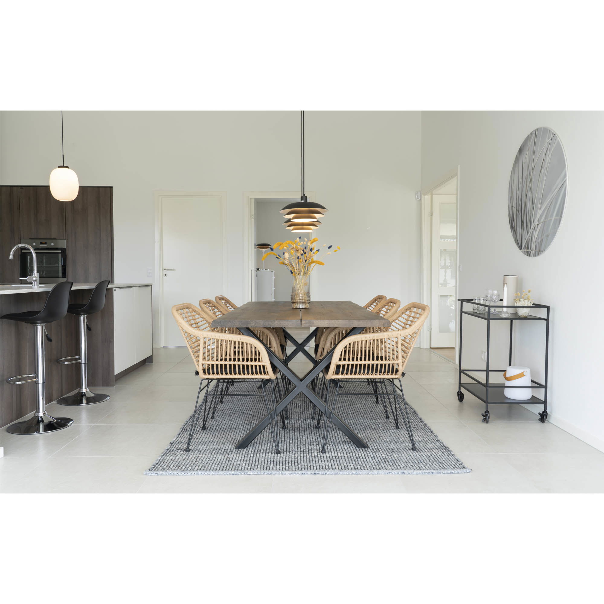 Trieste polürotangist tugitool padjaga, naturaalne, mustade jalanõudega