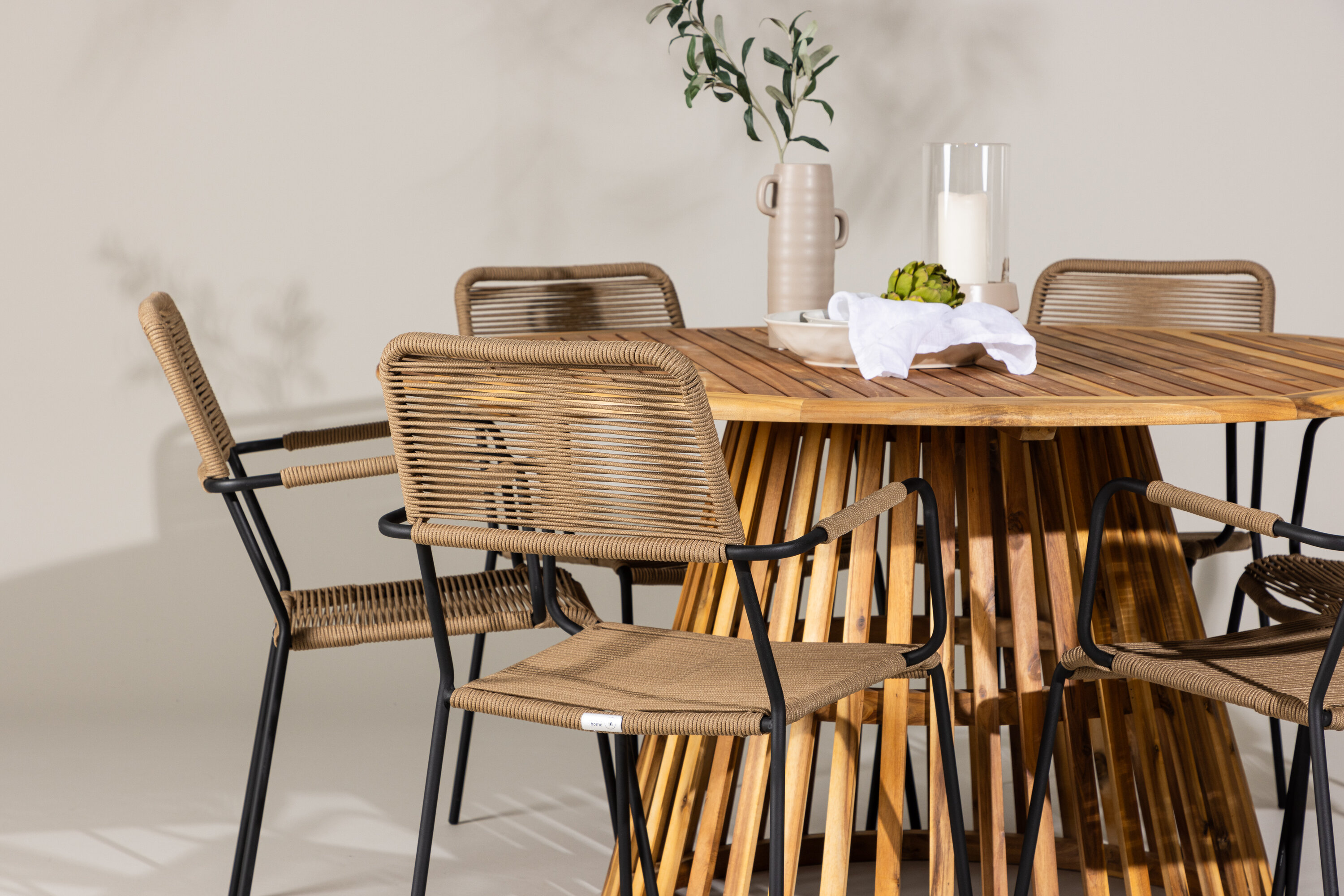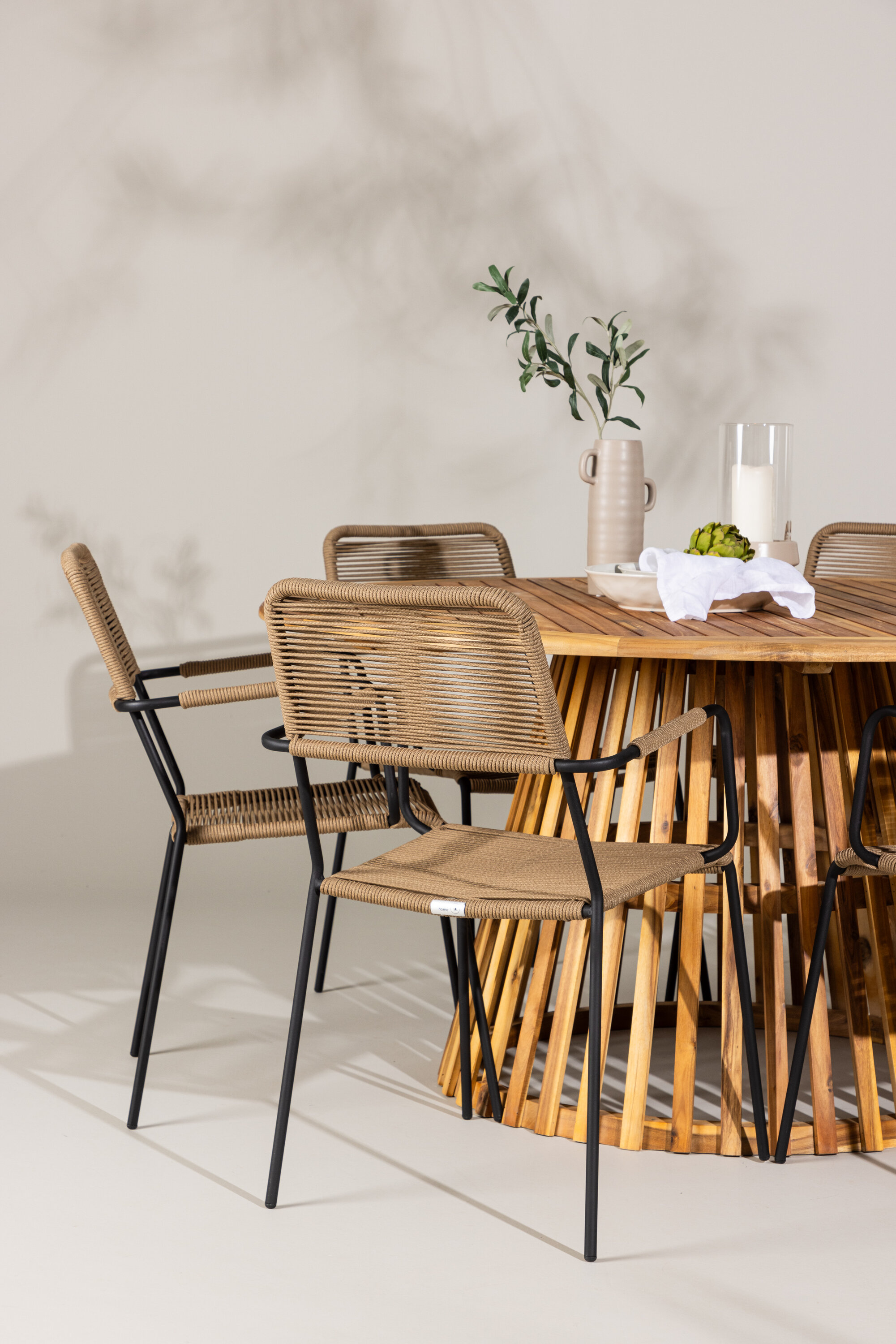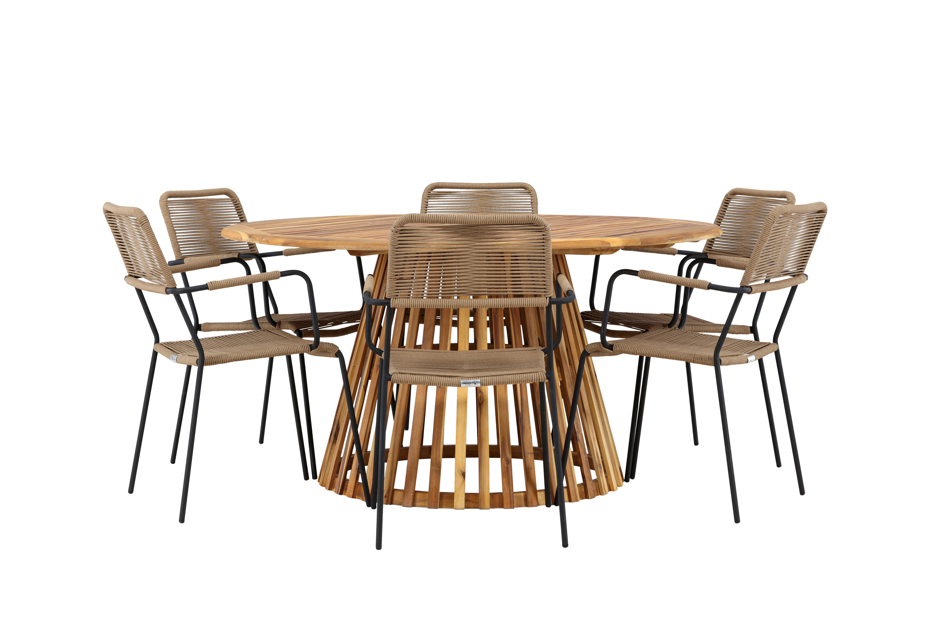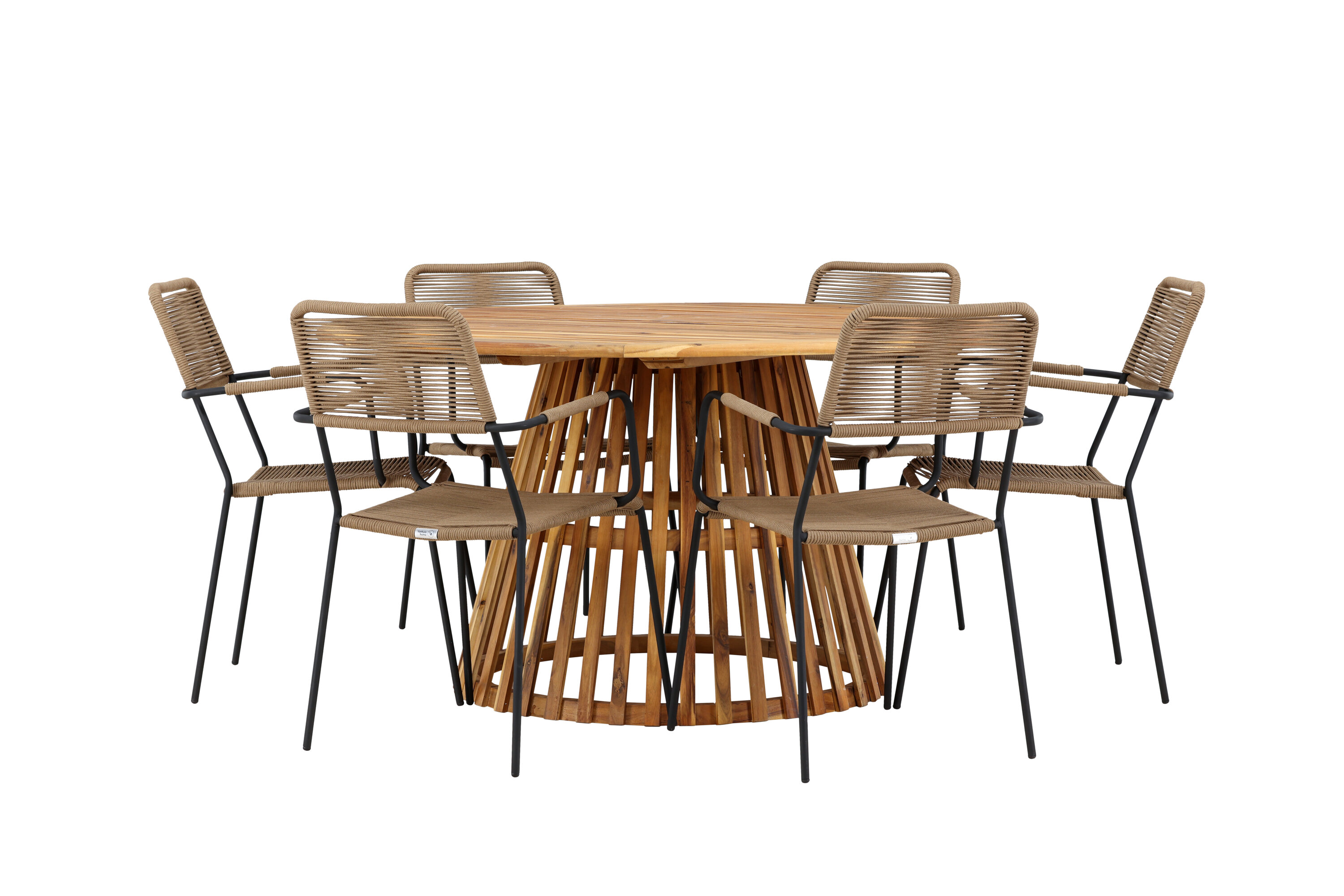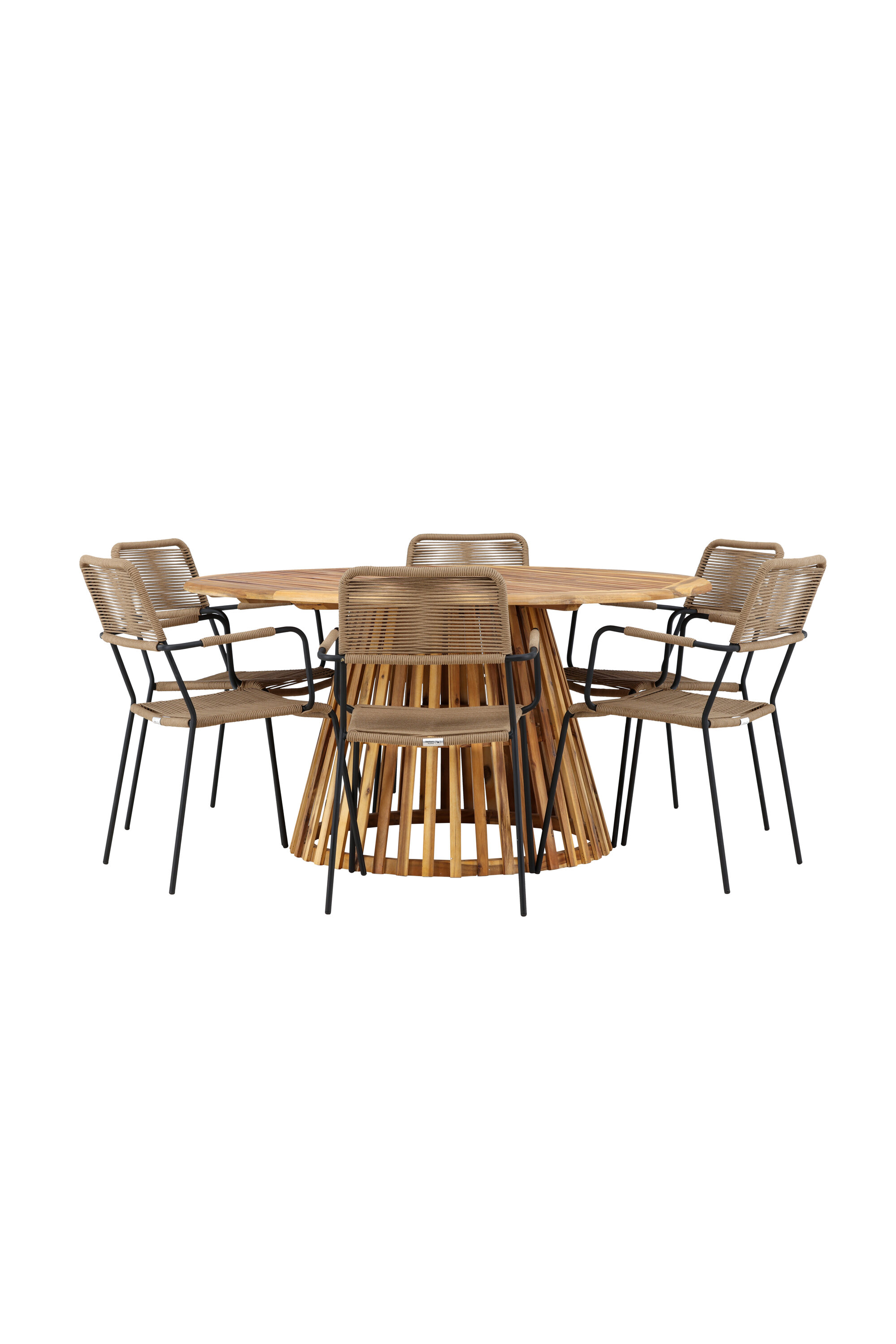 Meie elegantse Tucumáni laua ja stiilsete Lindose toolidega avastage oma väliruumi jaoks ideaalne söögikomplekt. Muljetavaldava 120 cm läbimõõduga laud Tucumán pakub rohkelt ruumi perekondlikeks õhtusöökideks ja mõnusaks koosviibimiseks lageda taeva all.