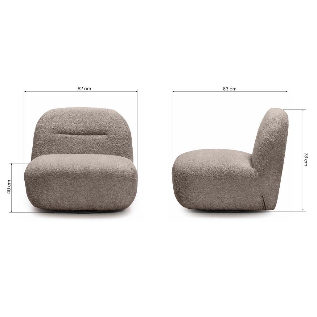 BOCHIC tool on pilkupüüdev disainiaktsent mis oma originaalse kujuga koheselt tähelepanu köidab. Selle mugav iste ja kontuurne seljatugi kutsuvad õndsaid lõõgastushetki samas kui pöörlev alus pakub täielikku liikumisvabadust ja igapäevast mugavust. See mudel sobib ideaalselt nii moodsasse kui ka hubasesse interjööri olles intrigeeriv pilgupüüdja. Pruunhall polster lisab teie ruumile peent elegantsi ja sooja koduse hõngu. BOCHIC ei ole lihtsalt mugav tool – see on julge disainiavaldus mis annab teie elutoa stiilile uue tähenduse. Omadused: Ümar moodne vorm Mugav iste ja seljatugi Pehme meeldiv puudutusele kangas Pööratav alus Mõõdud: Kõrgus: 73 cm Laius: 82 cm Sügavus: 83 cm Istme kõrgus: 40 cm