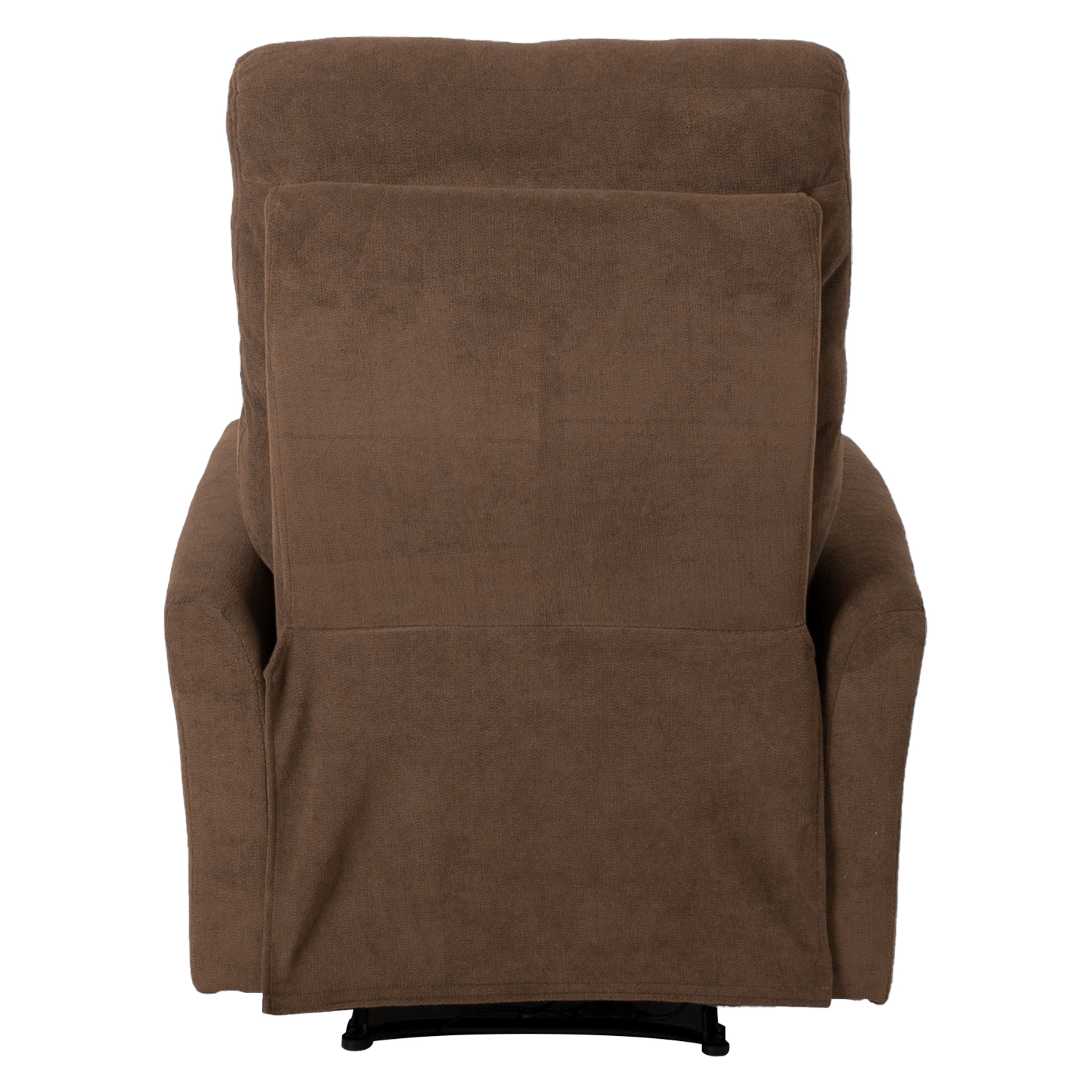 Tugitool recliner SAHARA pruun. Elektrilist recliner mehhanismi saab mugavalt juhtida käetoe välisküljel asuvast nupust. Jalatuge üles tõstes liigub seljatugi sujuvalt kaasa lamavasse asendisse. Tugitool on kaetud 100% polüesterkangaga. Polsterdus: polüuretaanvaht 24kg/m³, dakron. Karkass on valmistatud vineerist ja metallist. Tugitoolil on siksak vedrustus. Toote mõõdud on 79x90xH102cm.