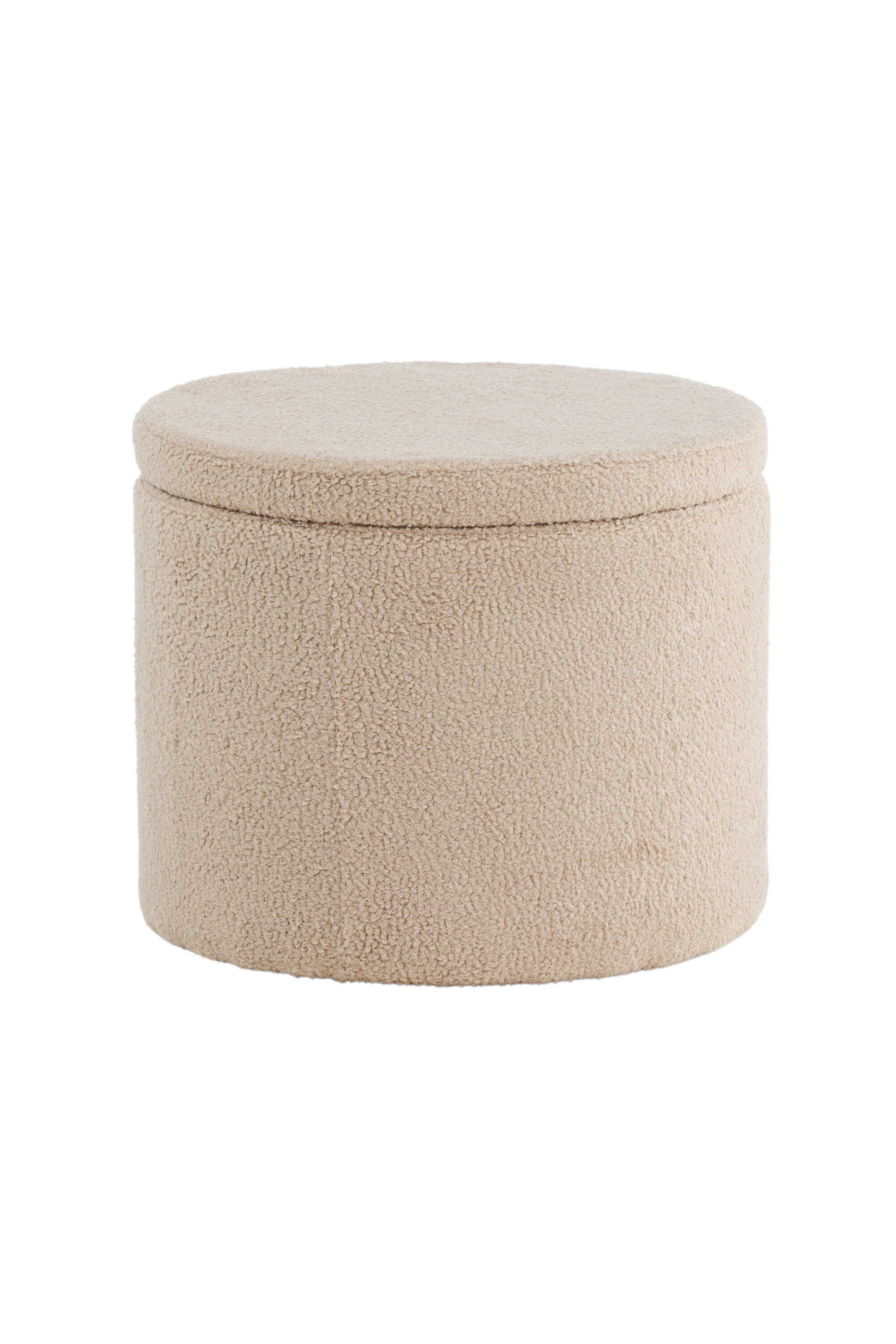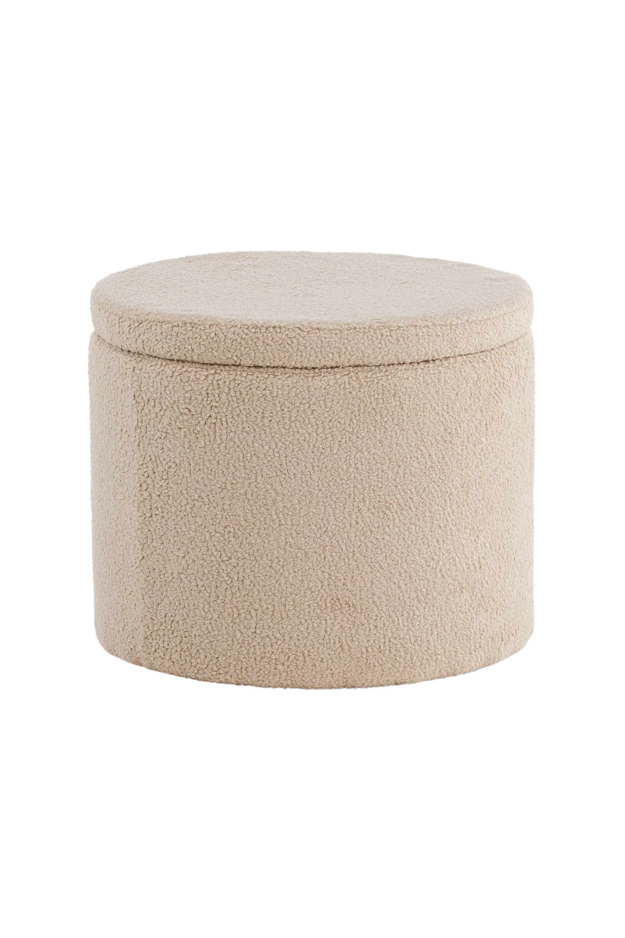 Stiilne siseviimistlus, mida on lihtne muu mööbliga sobitada! Istumispuhvri purk on silindriline, eemaldatava kaanega, mis võimaldab peidetud hoiustada. Valmistatud moodsast beežis karvasest mänguriidest, mille raam on vahtplastist, puuvillakiust ja kumera puidust. Puffs Mõõdud: Kõrgus: 43 cm, läbimõõt: 51 cm. Lisaks panipaigale sobib see suurepäraselt ka jalapingiks, lisaistmeks või pasjansiks stiiliikooniks – teie otsustate!