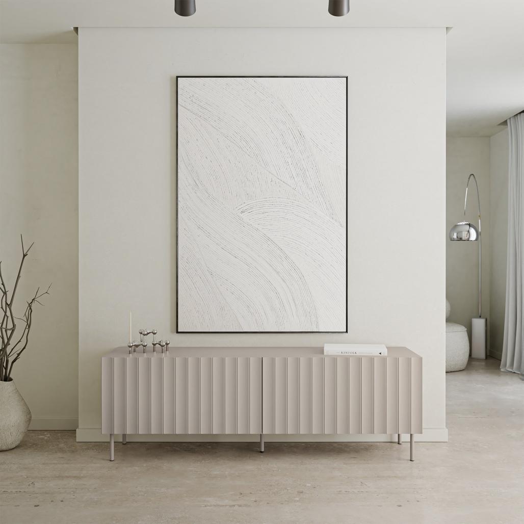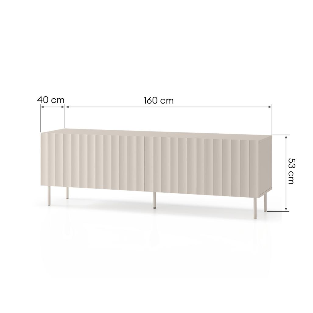 Avasta TIRAMI telekapp – mööbliese mis ühendab endas moodsa disaini praktiliste lahendustega saades teie meelelahutusala keskpunktiks. Selle õrn hallikasbeež toon toob teie interjööri harmooniat ja rahu samas kui soonikkoes esipaneelid lisavad ainulaadset iseloomu ja visuaalset sügavust. Kapi funktsionaalsust rõhutavad kaks avarat riiulit mis avanevad mugava vajutusavamise teel. See lahendus mitte ainult ei taga hõlpsat juurdepääsu hoiustatud esemetele vaid annab mööblile ka minimalistliku ja modernse ilme välistades traditsiooniliste käepidemete vajaduse. Lisaks tagavad gaasikolvid sujuva ja vaikse klapi avanemise suurendades kasutusmugavust. Tugevad hallikasbeežiks värvitud metalljalad mitte ainult ei taga kogu konstruktsiooni stabiilsust vaid lisavad ka kergust ja modernset hõngu. Tänu neile näeb TIRAMI telekapp välja erakordselt stiilne ja sobib ideaalselt praeguste sisekujundustrendidega. Ärge oodake – tooge oma koju luksust ja modernsust TIRAMI telekappiga. See on investeering mis muudab teie interjööri ja muudab igapäevased hetked elutoas veelgi nauditavamaks. Kogege elegantsi ja funktsionaalsuse harmooniat! Materjal: 16 mm Congo mööbliplaat lamineeritud MDF ja HDF Viimistlus: Congo U16002 Pfleiderer; kivihall Suedette matt Dekoratiivselt soonikkoes esiosa Hall-beežid metalljalad Kaks gaasikolvidega klappi Lükkamisega avatav süsteem Mõõtmed: Kõrgus: 53 cm Laius: 160 cm Sügavus: 40 cm