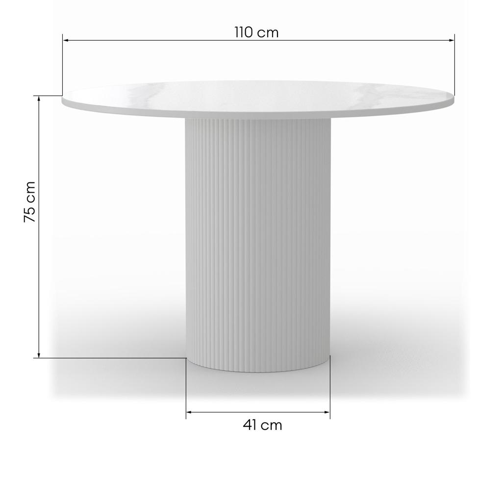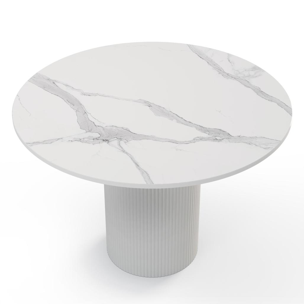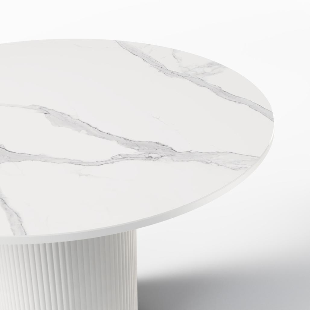 Ümar söögilaud MALENA lamellid valge marmori efekt paagutatud