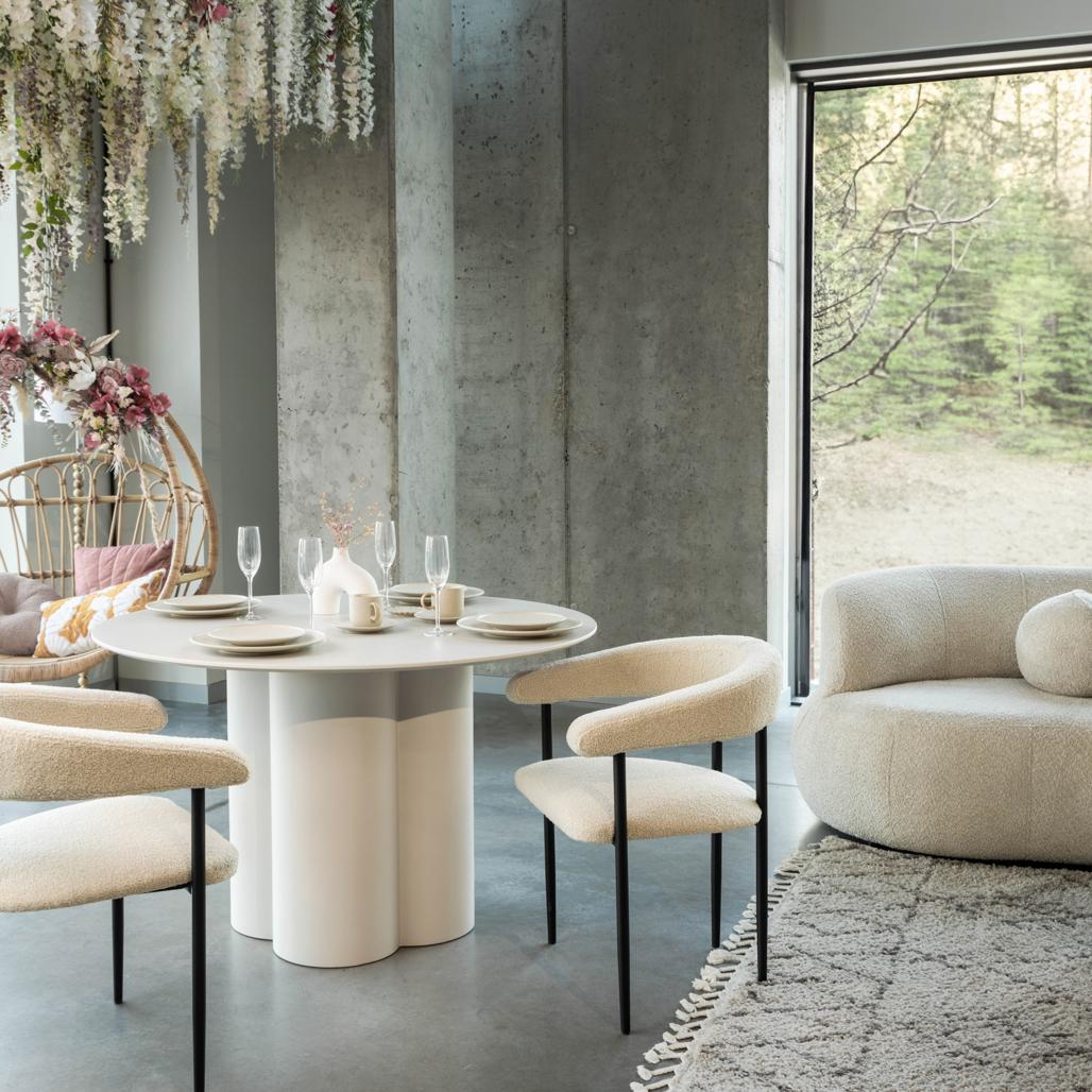 Ümmargune söögilaud COLONA hall-beež 120 cm See elegantne ümmargune söögilaud lisab igale moodsale interjöörile elegantsi. Selle eristuv kolme sambaga alus pakub mitte ainult visuaalset huvi vaid tagab ka suurepärase stabiilsuse. Sile ümmargune lauaplaat suurendab ruumi voolavust muutes selle ideaalseks kohaks ühisteks söögikordadeks ja sisukateks vestlusteks. Peamised omadused: Stiilne ümmargune lauaplaat – läbimõõt 120 cm Ainulaadne kolme sambaga alus Valmistatud vastupidavast MDF-plaadist pehme halli-beeži viimistlusega Tasakaalustatud disain ja igapäevane funktsionaalsus Olenemata sellest kas sisustate hubast hommikusööginurka või ametlikumat söögituba loob see laud sooja ja kutsuva atmosfääri. Selle ümar kuju toob ruumi harmooniatunnet samas kui neutraalne toon sobib suurepäraselt erinevate sisustusstiilidega – minimalistlikust kuni kaasaegseni. Tugevast MDF-plaadist valmistatud laud on usaldusväärne valik igapäevaseks kasutamiseks ühendades praktilise vastupidavuse rafineeritud ja tagasihoidliku esteetikaga. Materjal: MDF (keskmise tihedusega puitkiudplaat) Mõõtmed: Kõrgus: 75 cm Laius: 120 cm Sügavus: 120 cm