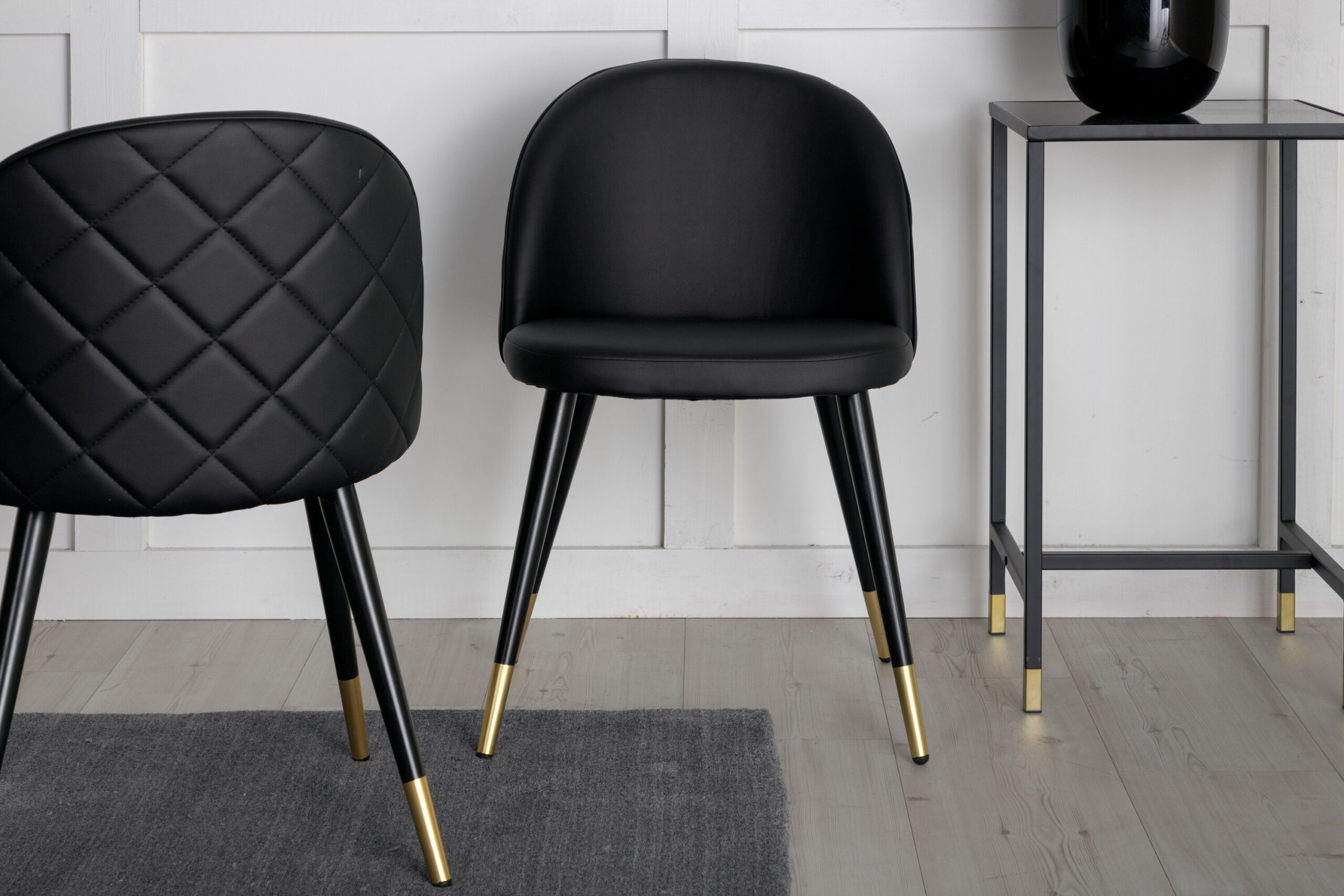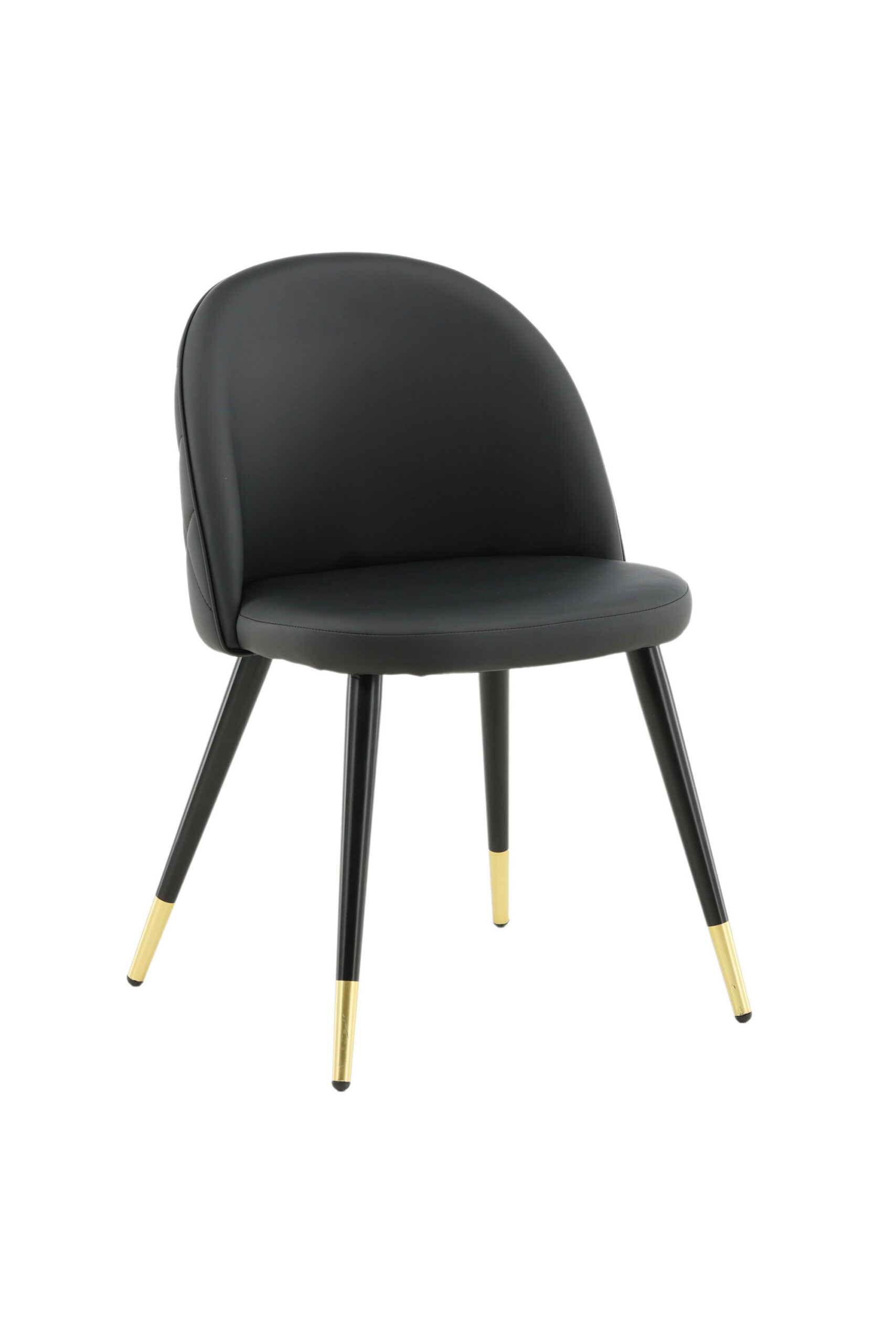 Velvet – detailirohke ja luksusliku disainiga vastupidav söögitool! Seljaosa on ümardatud ja on täpselt nagu iste pehme, mustast kunstnahast dekoratiivse dekoratiivpistega. Jalad on mustast pulbervärvitud metallist, messingfooliumist säärekinnisega, mis loob pilkupüüdva terviku. Vajalik on kergem montaaž. Loo kaasaegne pilgupüüdja kodu südames!