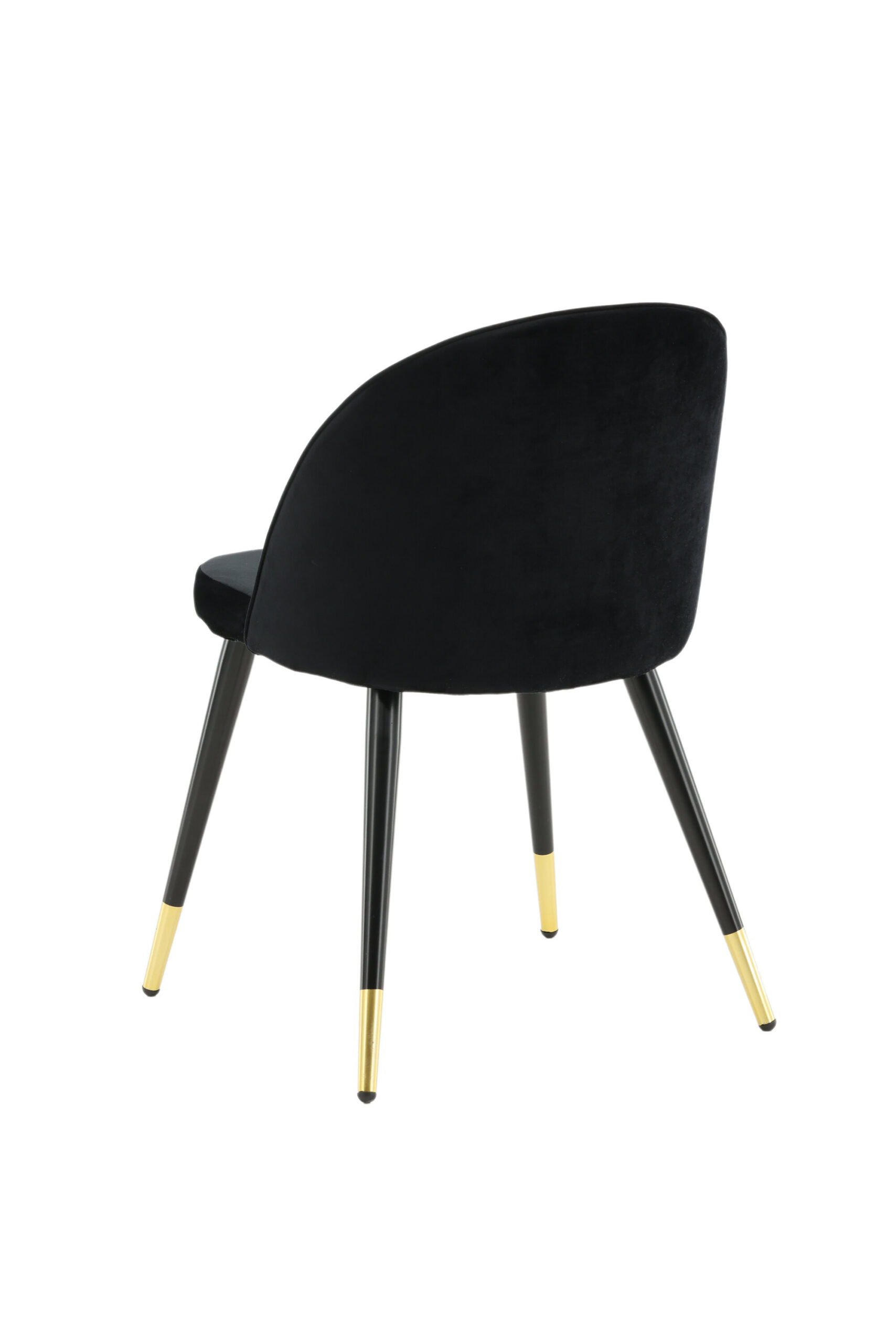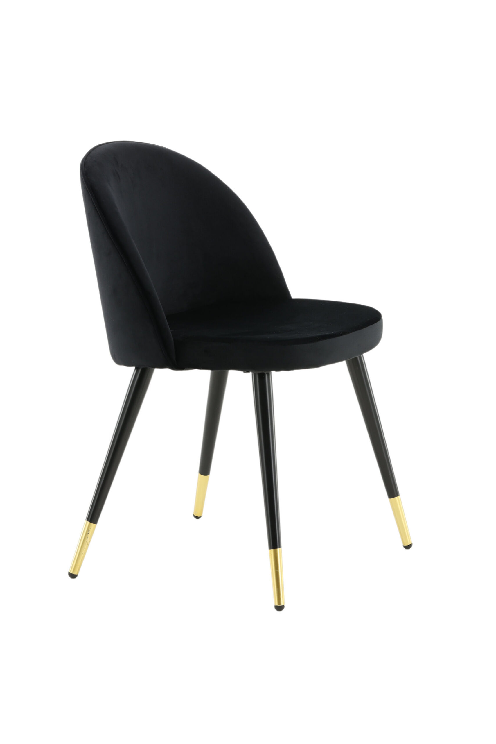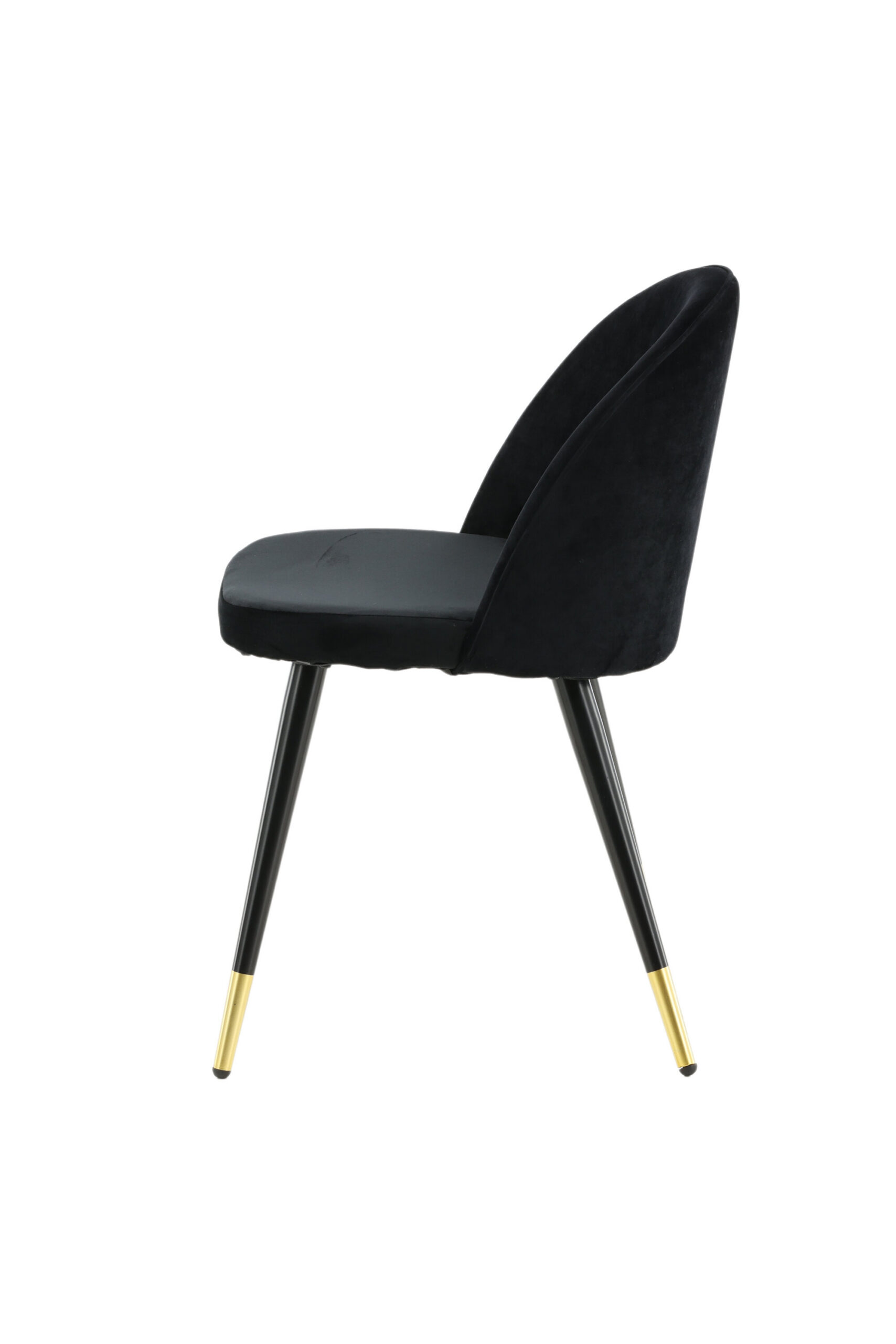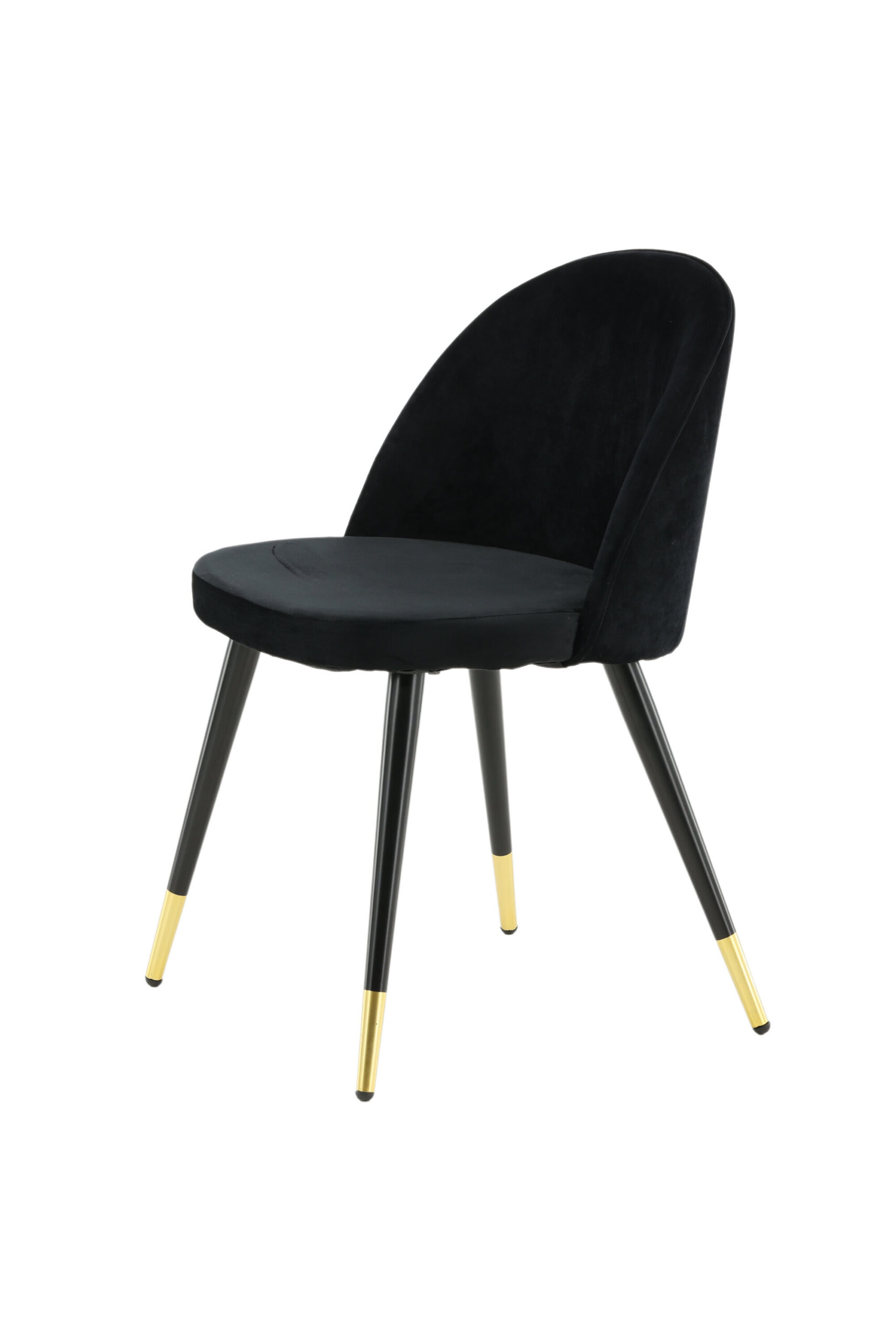 Luksusliku puudutusega elegantne söögitool! Velvet on täielikult polsterdatud, musta pulbervärvitud metallist jalad ja kaasaegsed messingiga viimistletud jalakatted. Õrnalt ümar seljatugi ja iste siledast mustast sametkangast koos pehme polstriga lisamugavuse tagamiseks. Vajalik kokkupanek. Investeerige toolidele, kus te ei pea mugavuse ja disaini vahel järeleandmisi tegema!