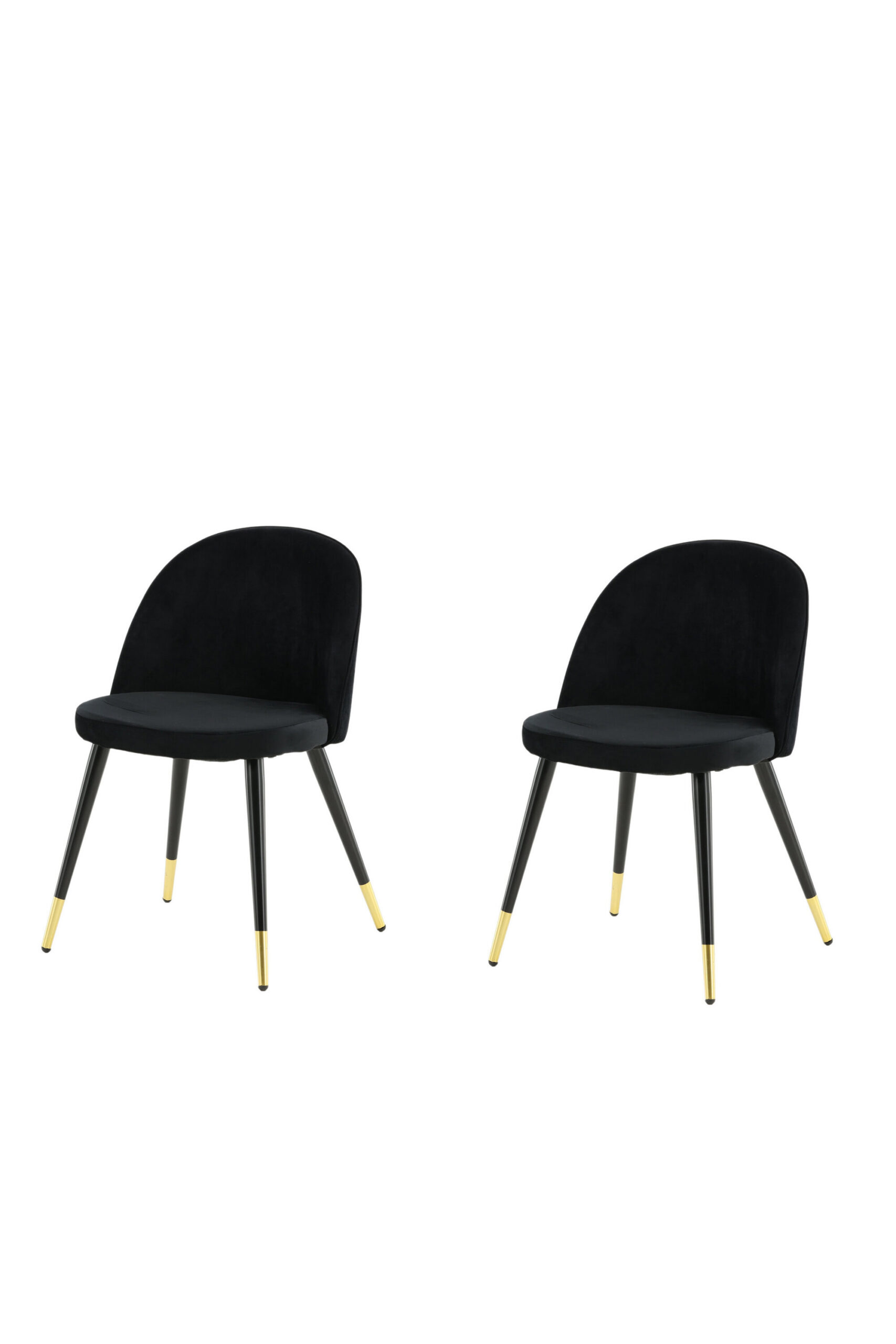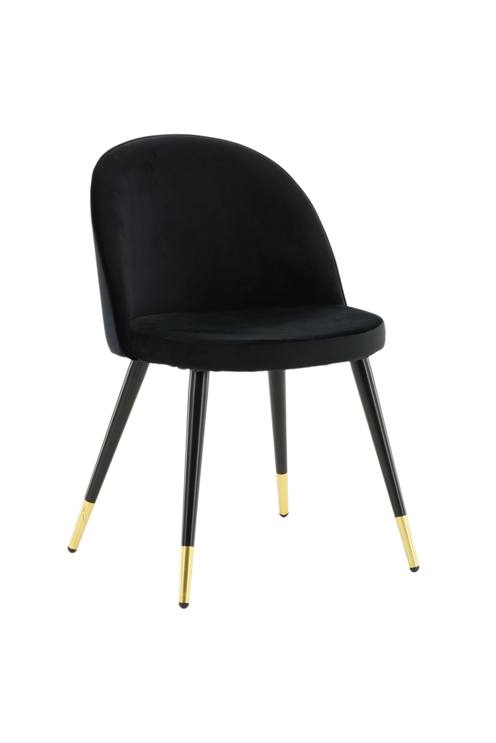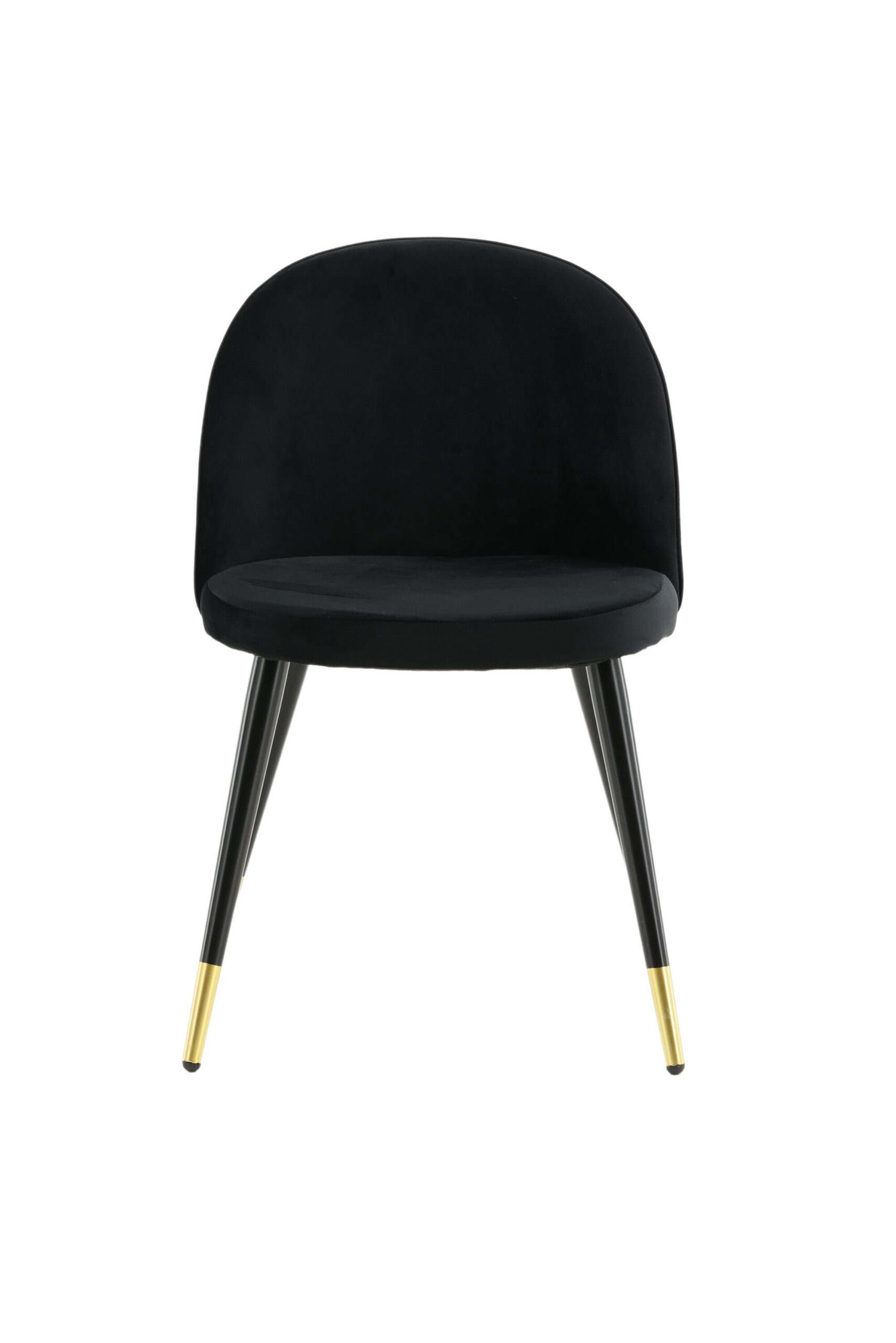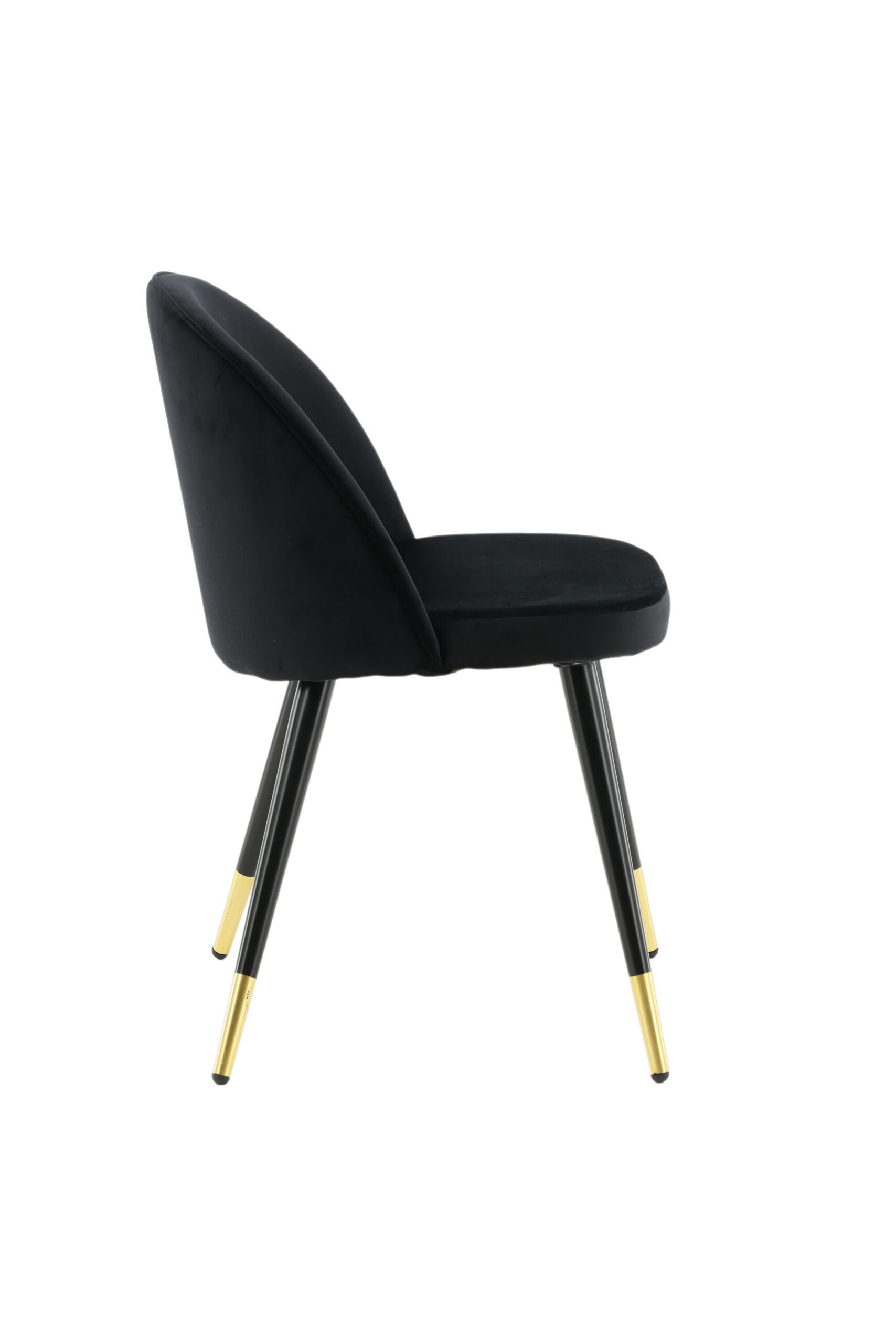 Luksusliku puudutusega elegantne söögitool! Velvet on täielikult polsterdatud, musta pulbervärvitud metallist jalad ja kaasaegsed messingiga viimistletud jalakatted. Õrnalt ümar seljatugi ja iste siledast mustast sametkangast koos pehme polstriga lisamugavuse tagamiseks. Vajalik kokkupanek. Investeerige toolidele, kus te ei pea mugavuse ja disaini vahel järeleandmisi tegema!