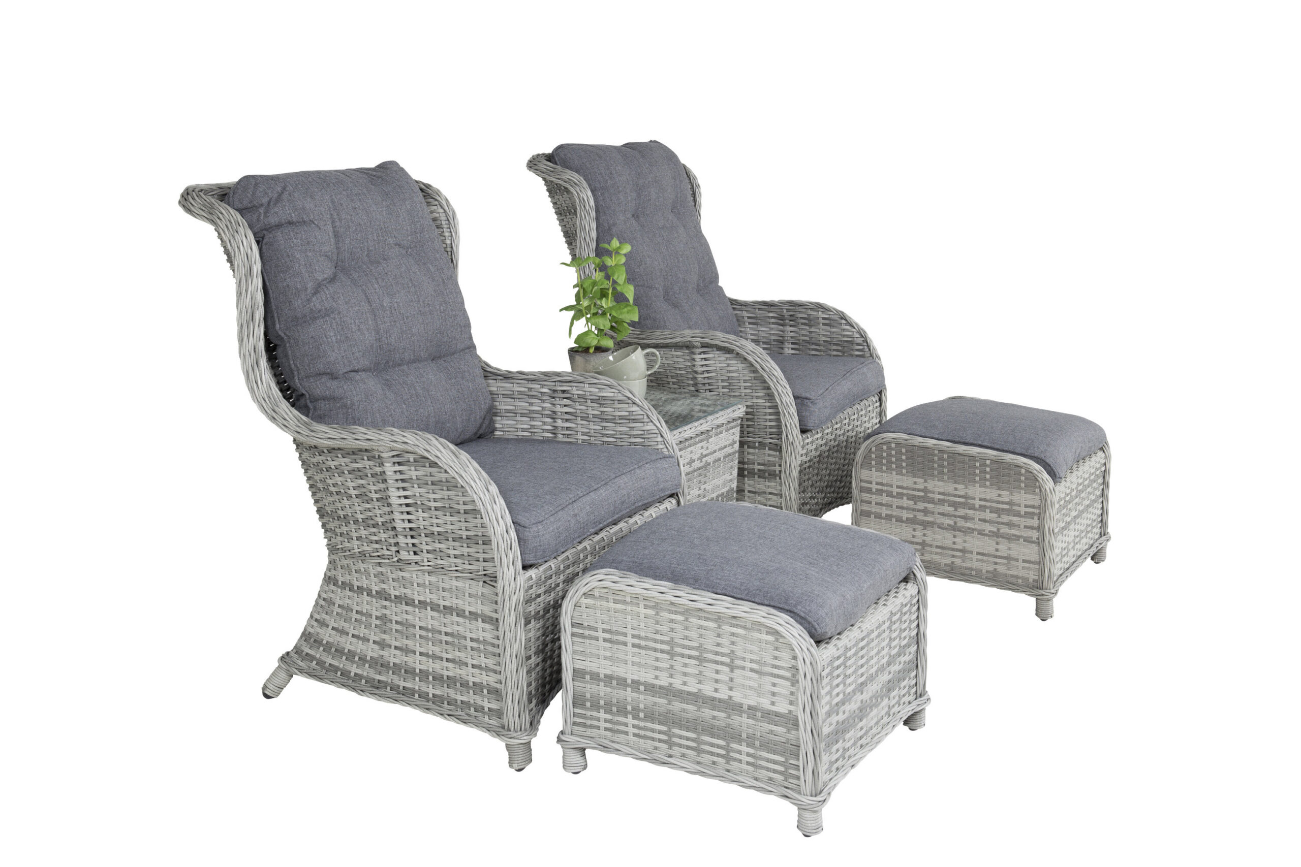 Luksuslik, mugav ja meeldiv – täiuslik lounge grupp eksklusiivse tunnetusega! See salongikomplekt Vikelund seeriast ühendab ajatu disaini hea mugavusega teie terrassil. Salongigrupp koosneb kahest raamiga tugitoolist ja alumisest klaasist lauaplaadiga kohvilauast. Valmistatud helehallist kunstrotangist alumiiniumraamiga. Sealhulgas pehmed paksud tumehallid marineeritud padjad. Sisusta rõdu ja tõsta hubasust hilissuveõhtuteks!