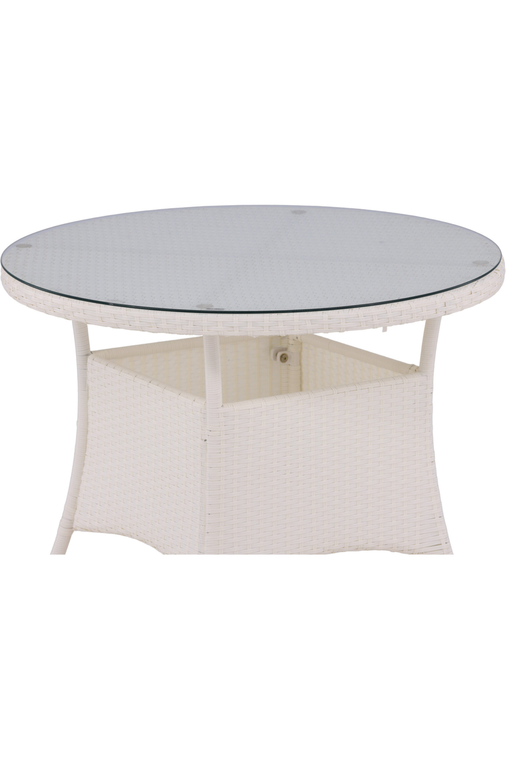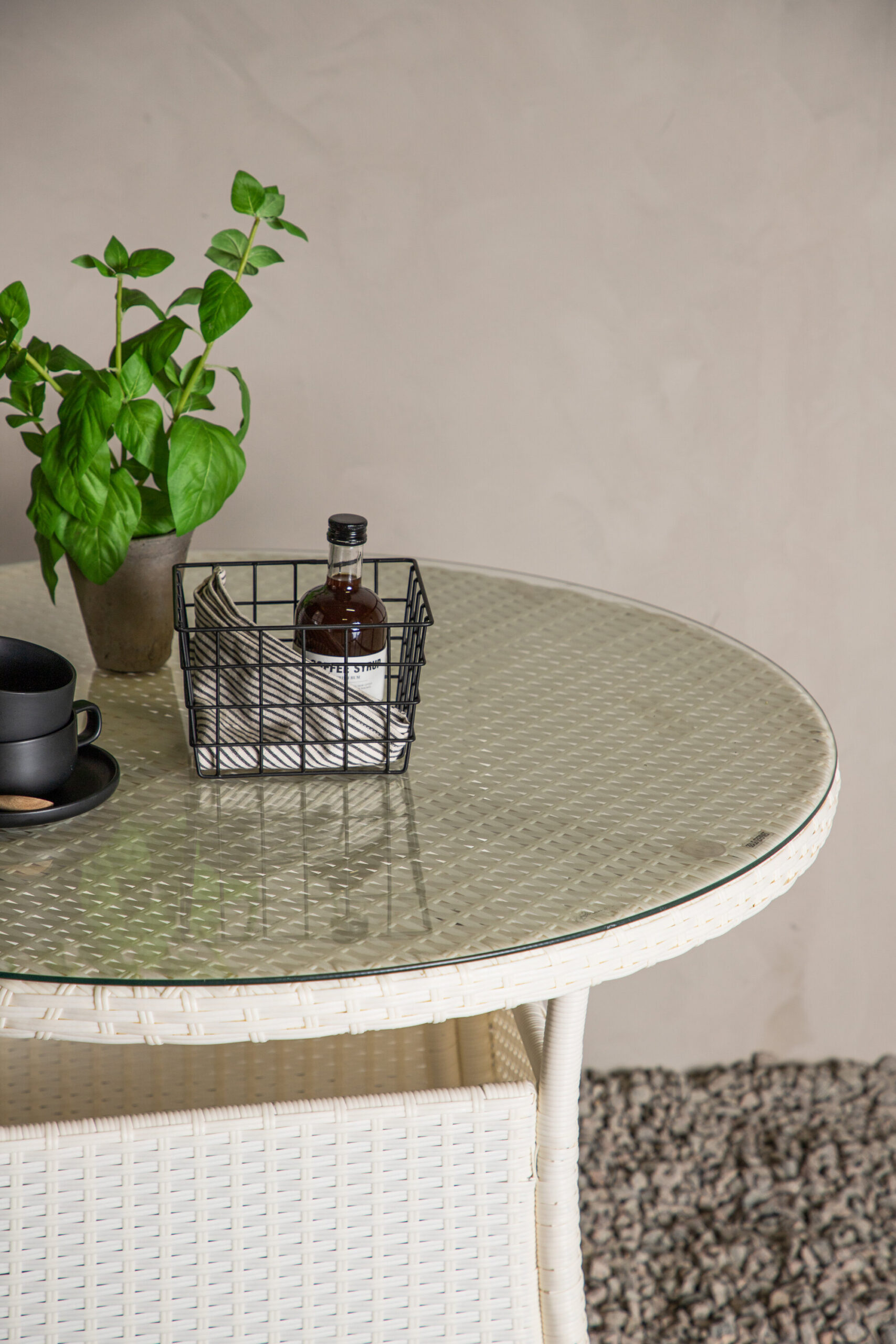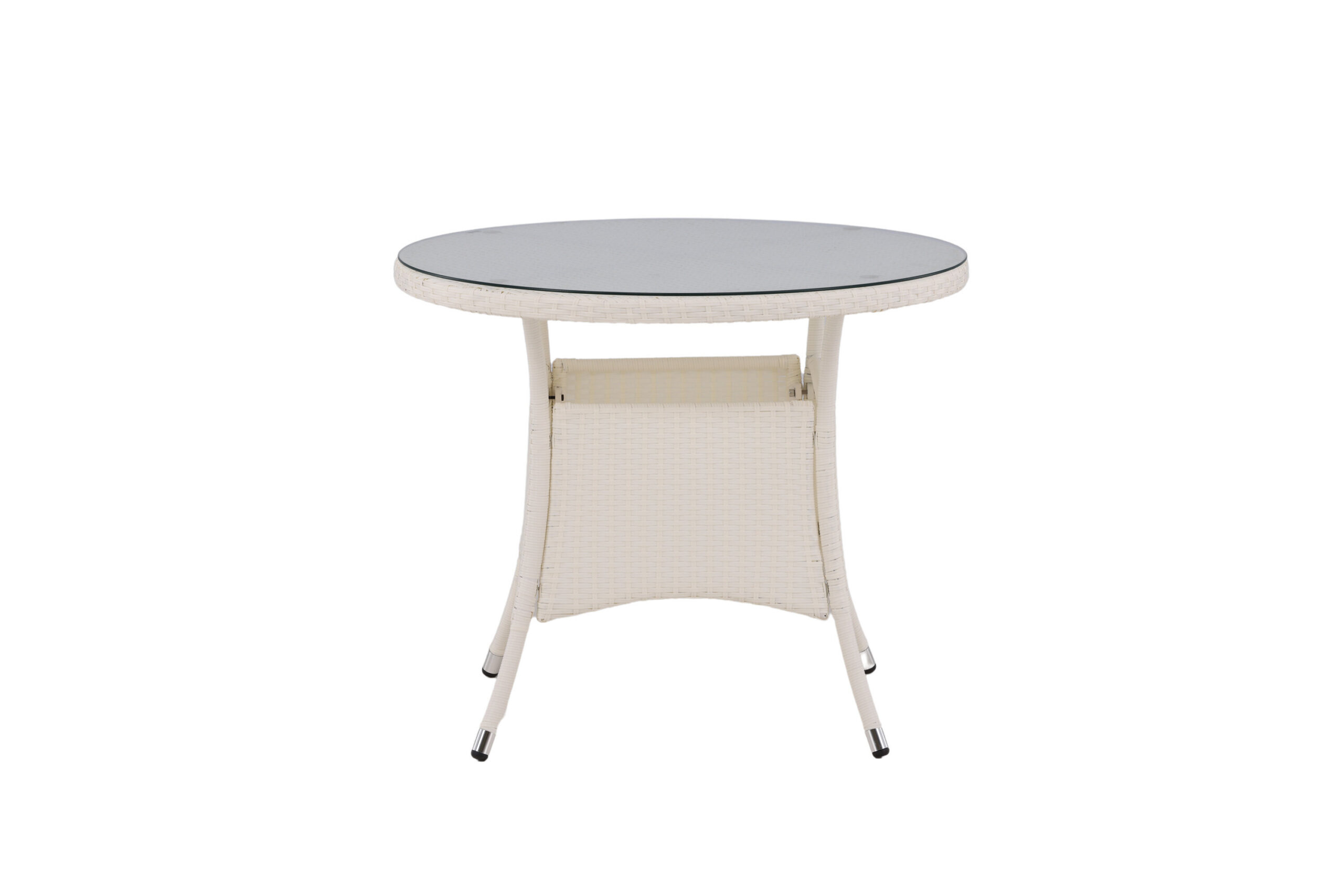 Volta on ümmargune jõulise disainiga söögilaud, mis jätab vastupidava ja võluva mulje ning seda on saadaval mitmes suuruses! Lauaplaat on stiilsest klaasist ja veermik vastupidavast valgest kunstrotangist. Sisusta õues või terrassil ja lase õhtusöögil õues saada päeva tipphetkeks – siin ei satu keegi äärepealt!