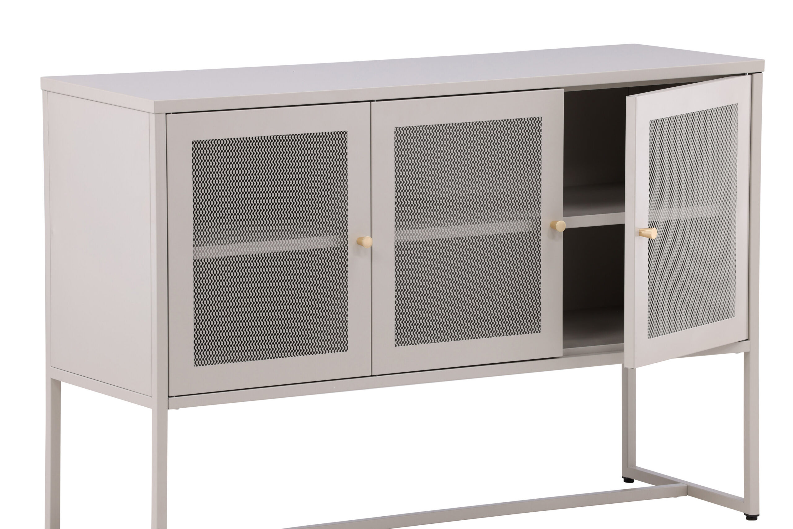 Malla – kaasaegne vastupidava tööstusliku disainiga kapp, millel on maitsvad beežist pulbervärvitud terasest võrkuksed ja jalad ning 2 nutikat riiulit kergenduseks. Kappi tõstavad kitsad kõrged jalad, mis loovad õhulise tunde ja hõlbustavad ka tolmuimeja tööd. Täiuslik panipaik kõigele, mida soovid – täitke portselani, raamatute või kaunite kaunistustega. Paindlik suurus ja elegantne kapi väliskülg muudavad selle hõlpsasti paigutamise ja sobitumiseks enamikesse kodu ruumidesse, seega sisustage vastavalt oma vajadustele ja soovidele!