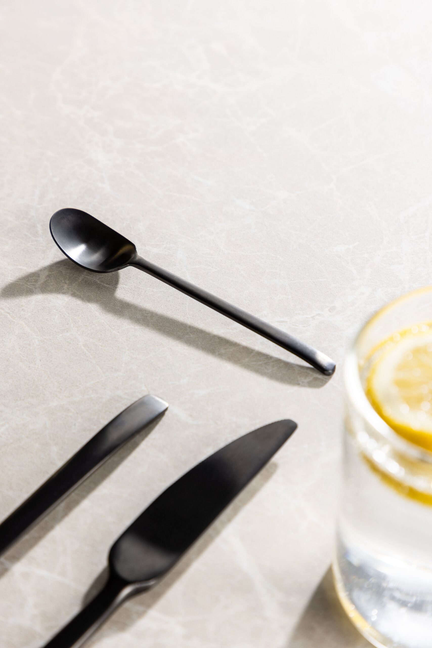 Terasest valmistatud Wabi Sabi söögiriistad õhkuvad modernsuse ja lihtsuse tunnet. Mattmust pind annab neile ainulaadse ja eristuva iseloomu, mis paistab laual tõeliselt silma.