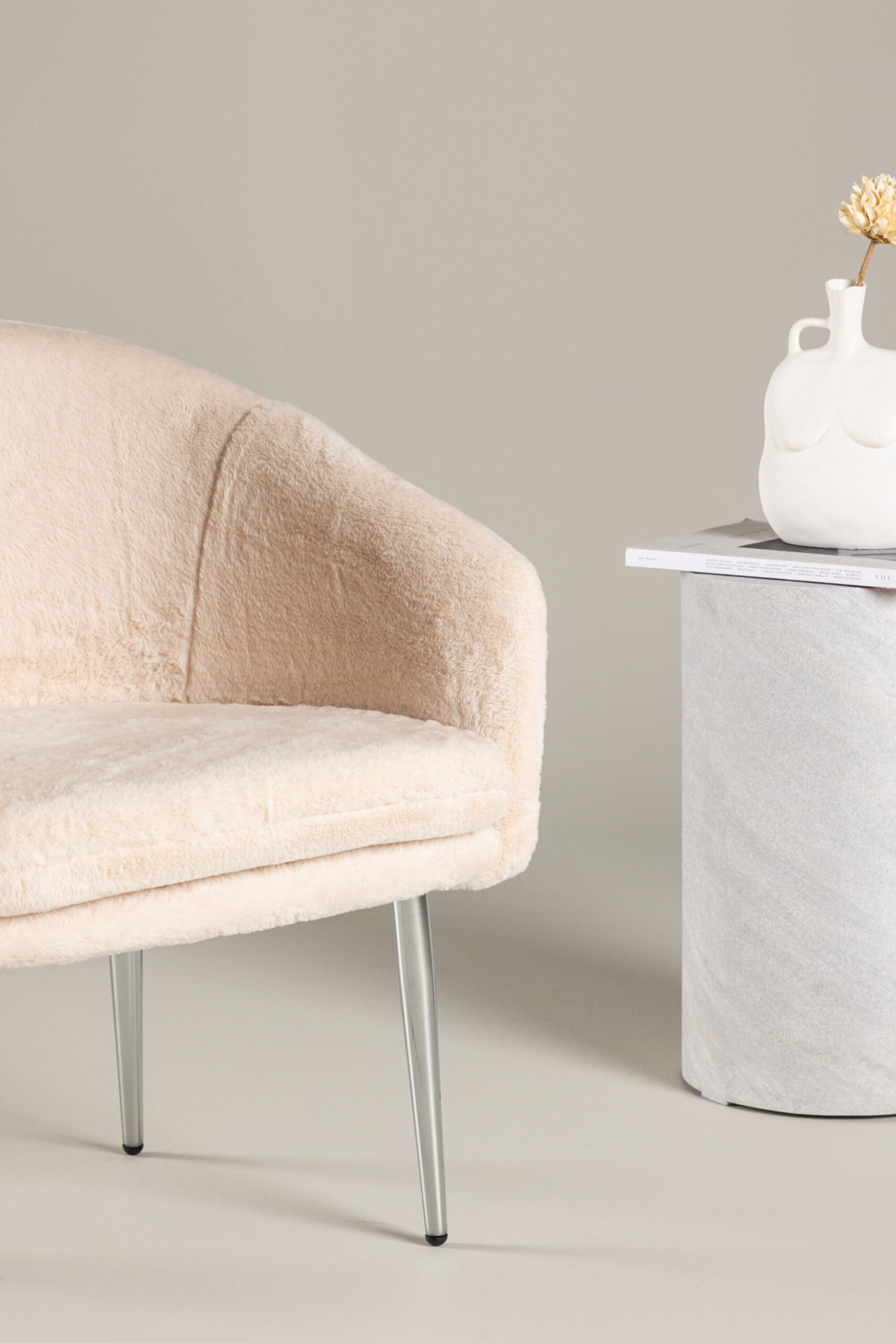 Tutvuge meie ihaldatud tugitooliga Wanda, mis on nüüd saadaval uues värvivariatsioonis! See on polsterdatud 100% polüesterkarusnahast beeži kunstkarusnahaga, mis annab teie sisekujundusele kutsuva ja vastupandamatu tunde. Moodne stiil koos hõbedaste terasest jalgadega lisab ruumile elegantse ja kaasaegse ilme. Selle maitsekas ja klanitud disain muudab selle ideaalseks lisandiks igasse ruumi, luues teie kodus lõdvestunud ja läbimõeldud atmosfääri, pakkudes samas kõrget mugavust ja stiili.