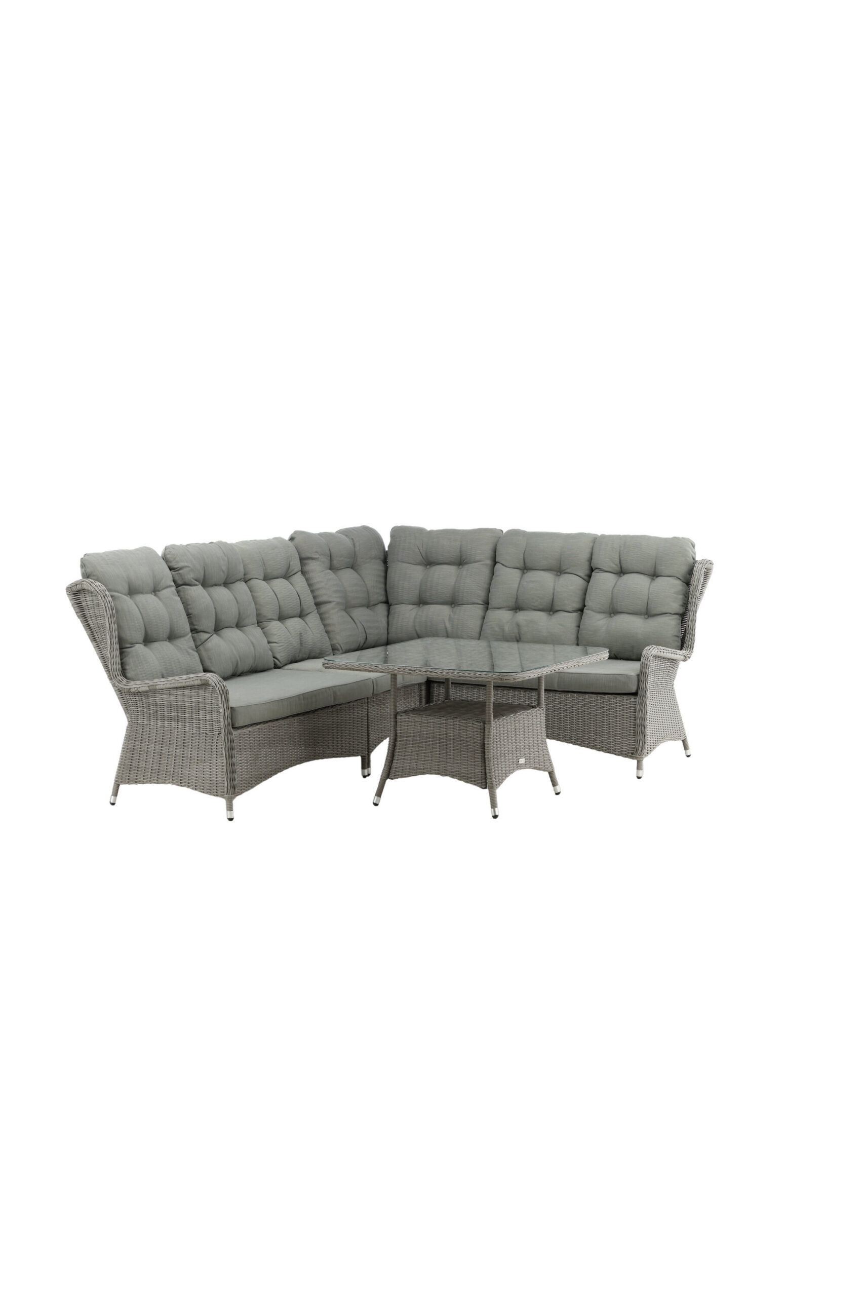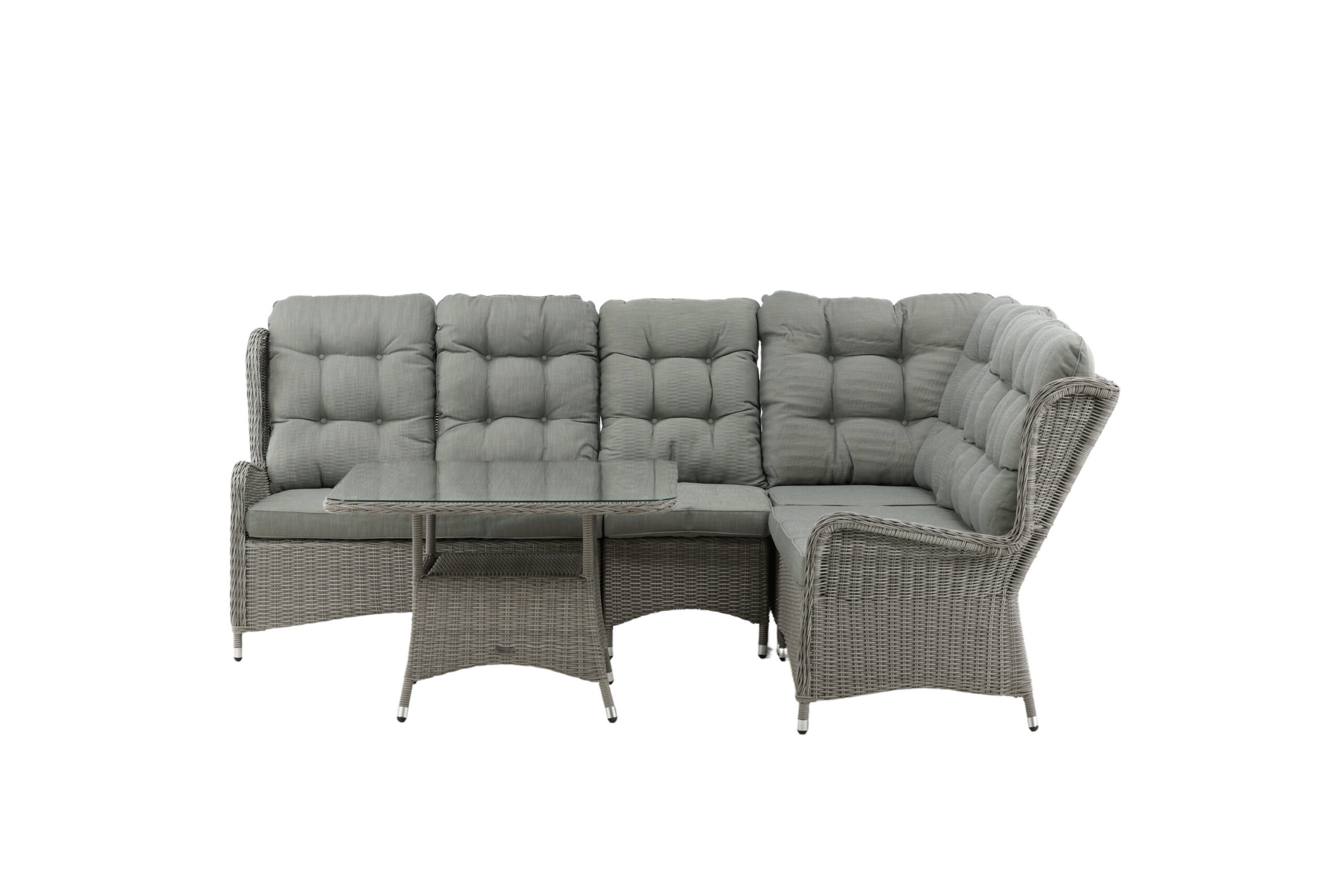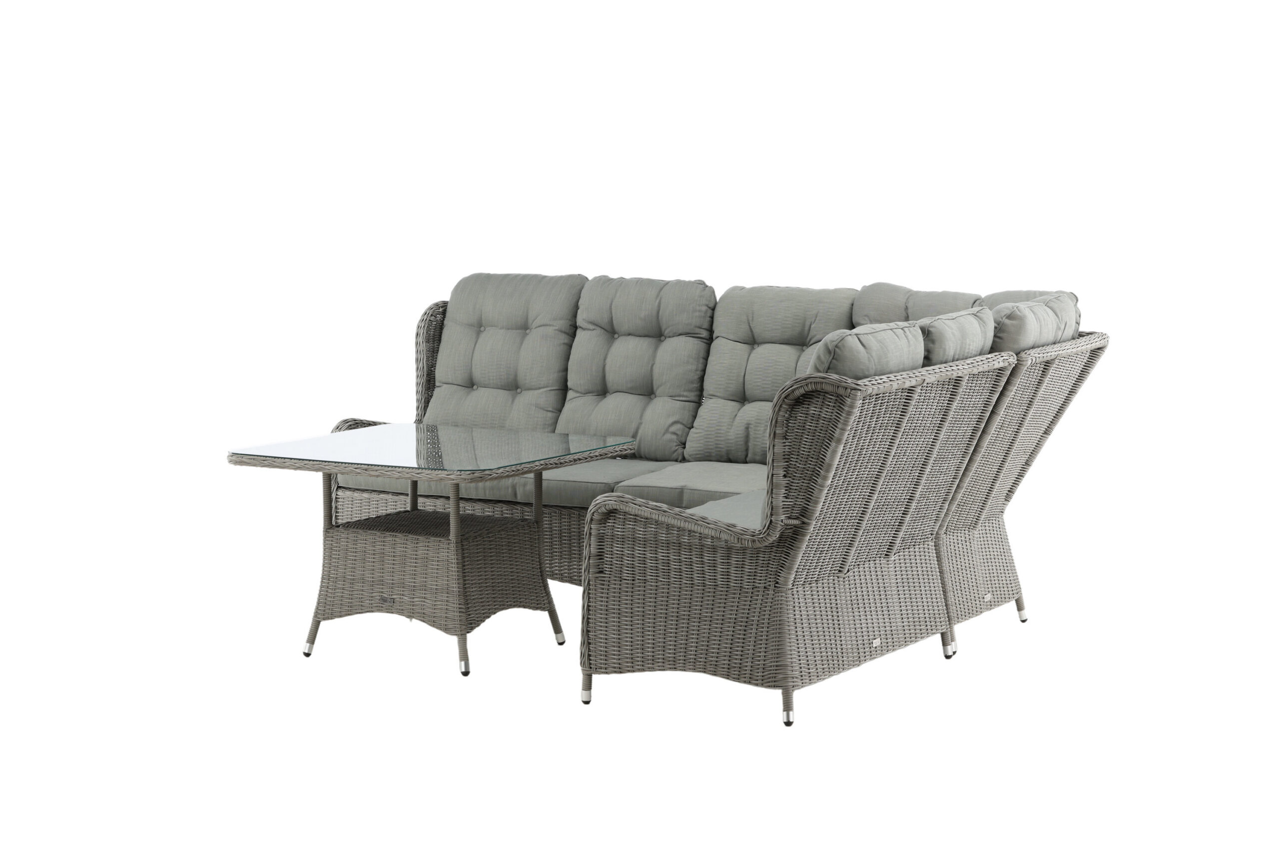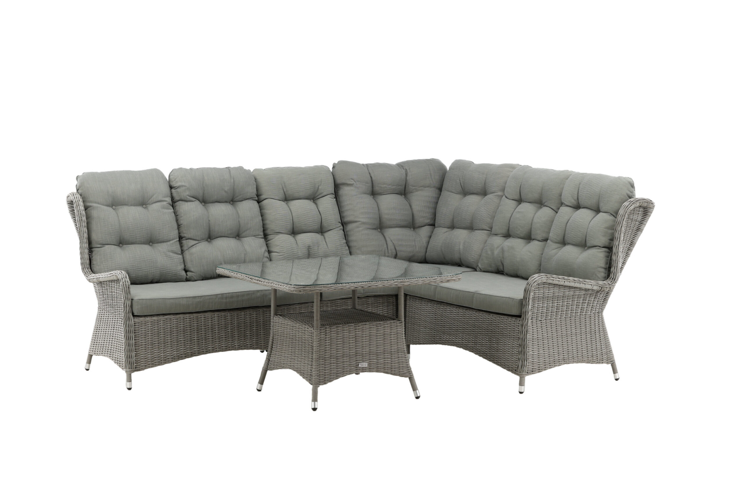 Washington on eksklusiivne salongikomplekt, milles on kombineeritud ajatu disain ja fantastiline mugavus – see on sel suvel kindlasti edukas teie terrassil või terrassil. Diivanigrupp koosneb 6 koha ja nurgaosaga nurgadiivanist ning kõrgemast reljeefse riiuli ja klaasist lauaplaadiga diivanilauast. Valmistatud helehallist kunstrotangist alumiiniumraamiga. Pehmed, paksud, helehallid marineeritud padjad on kaasas diivanirühma jaoks. Nautige hilissuveõhtuid parimal viisil!