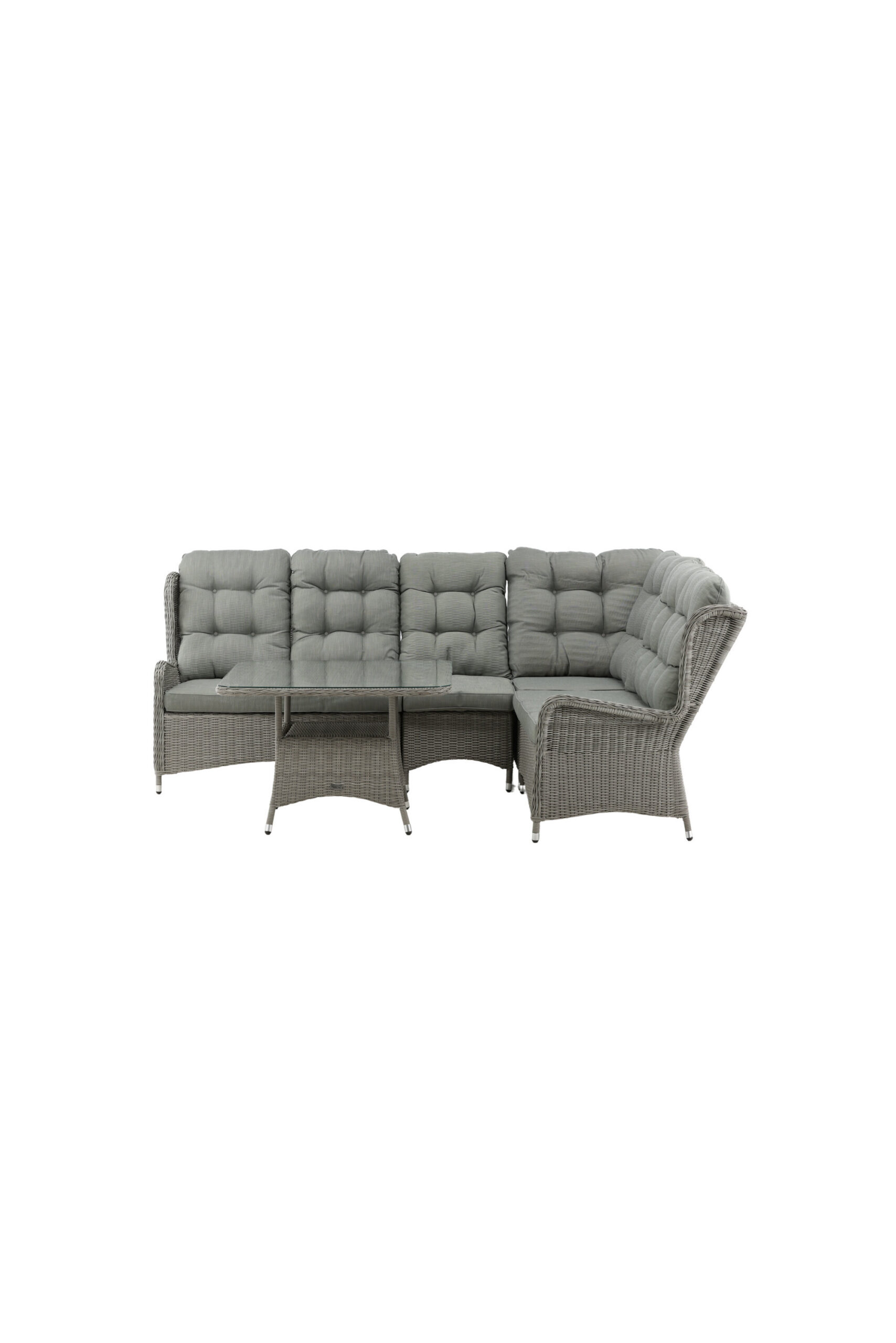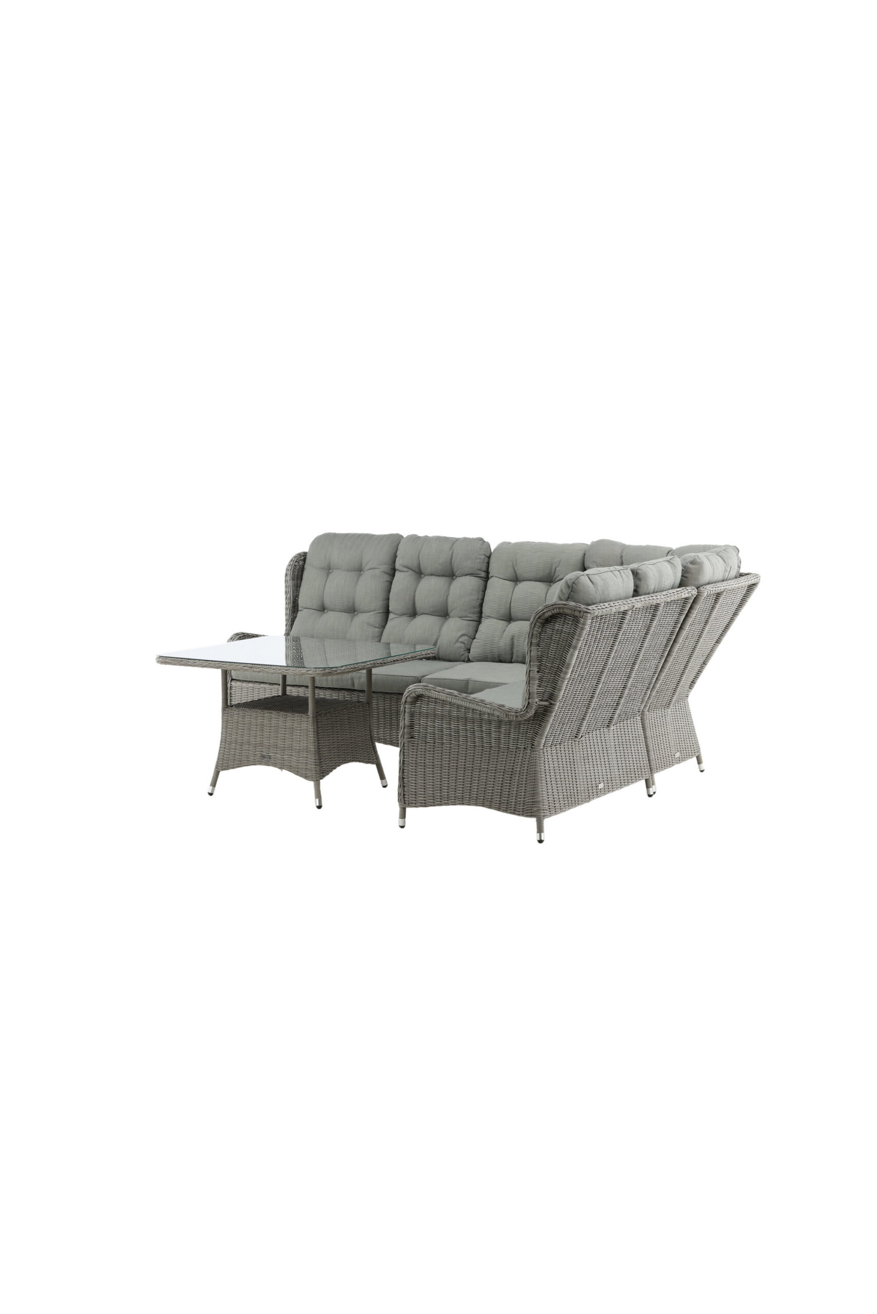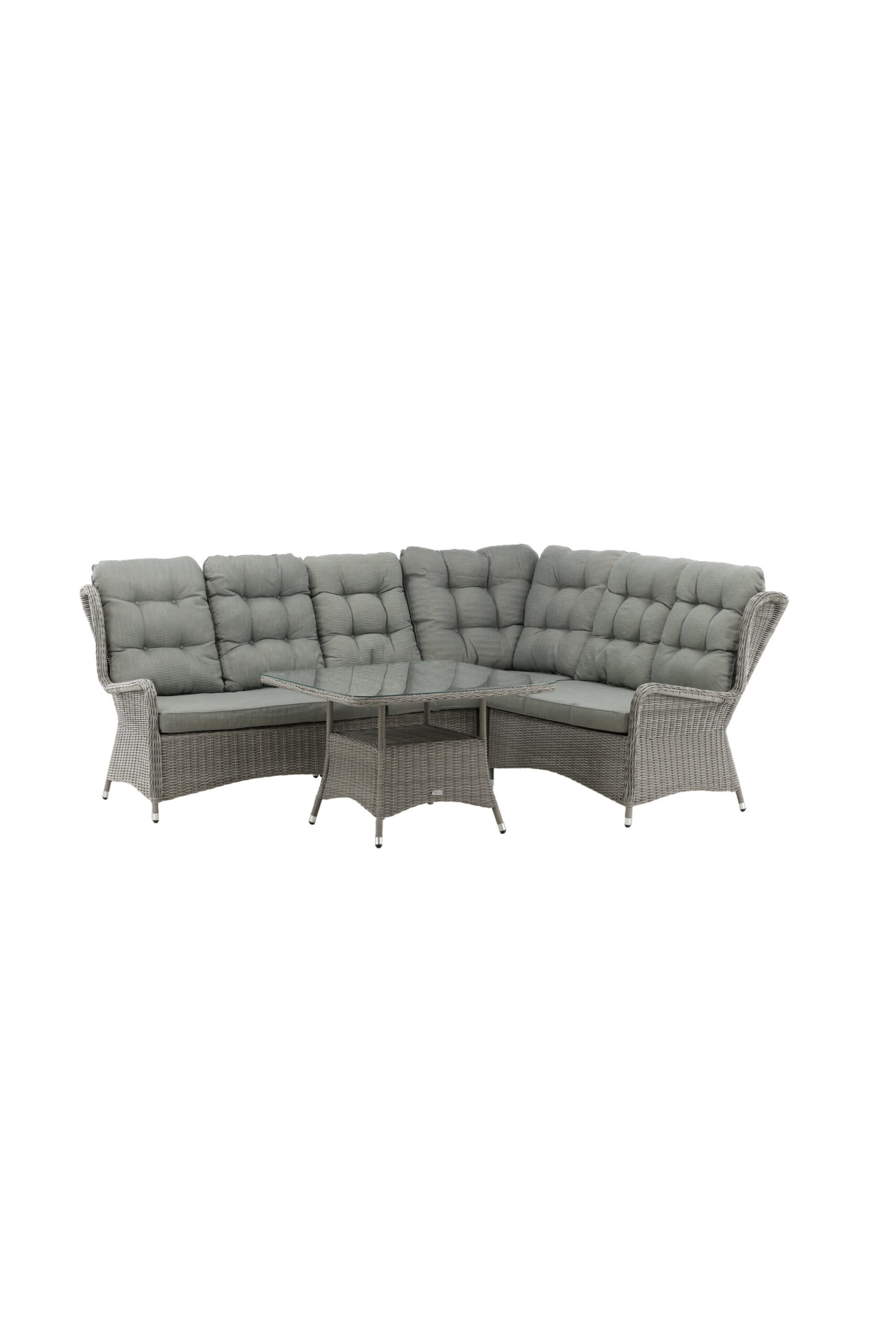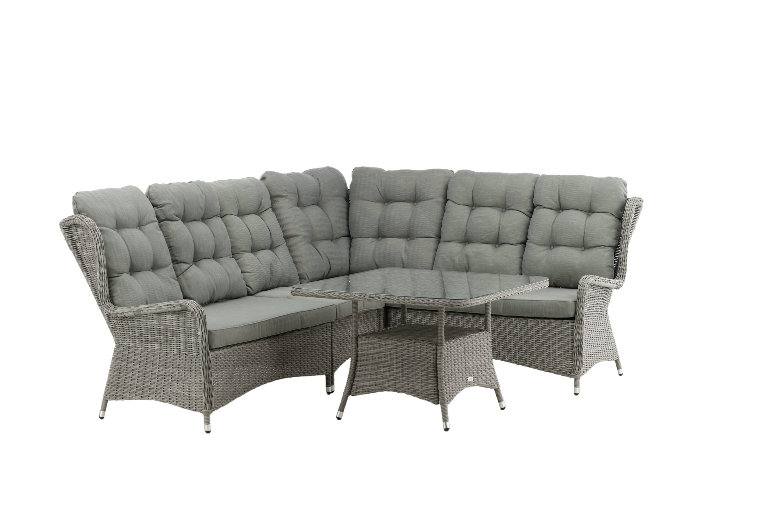 Washington on eksklusiivne salongikomplekt, milles on kombineeritud ajatu disain ja fantastiline mugavus – see on sel suvel kindlasti edukas teie terrassil või terrassil. Diivanigrupp koosneb 6 koha ja nurgaosaga nurgadiivanist ning kõrgemast reljeefse riiuli ja klaasist lauaplaadiga diivanilauast. Valmistatud helehallist kunstrotangist alumiiniumraamiga. Pehmed, paksud, helehallid marineeritud padjad on kaasas diivanirühma jaoks. Nautige hilissuveõhtuid parimal viisil!