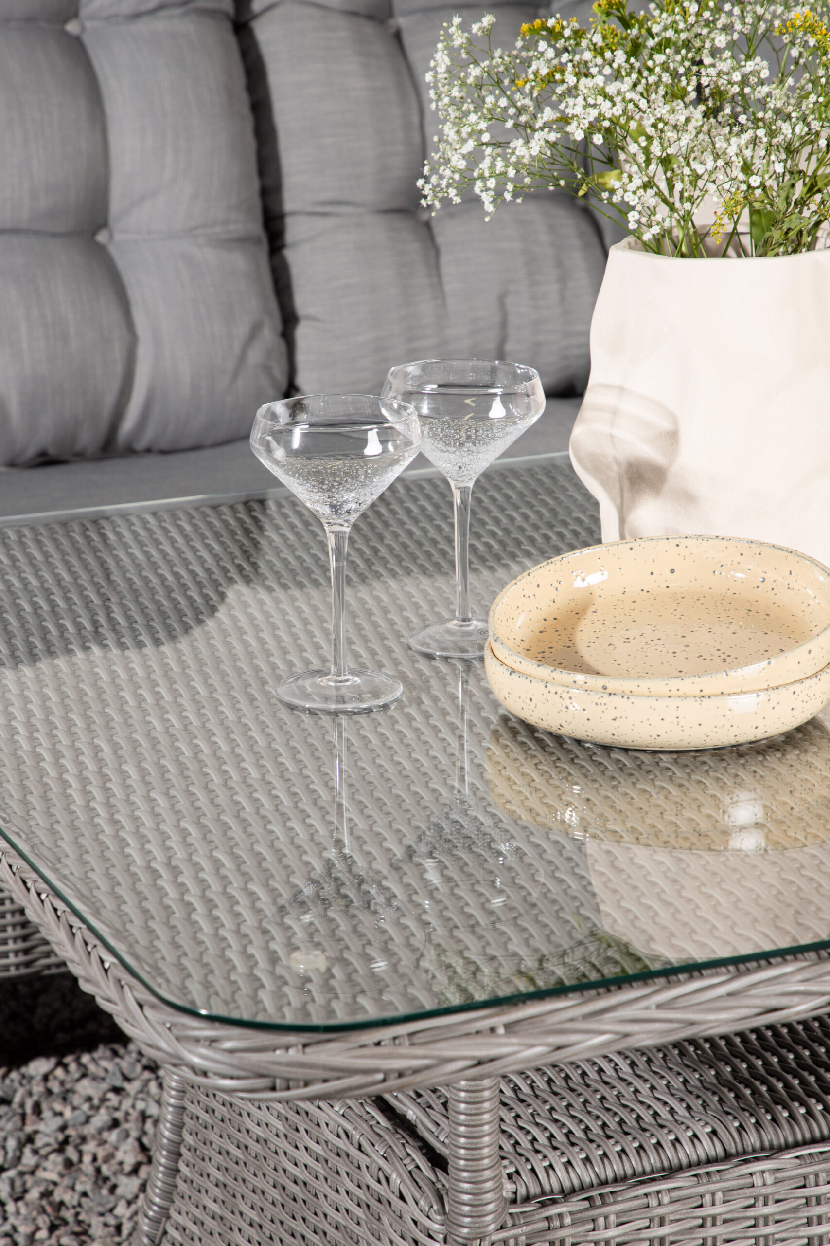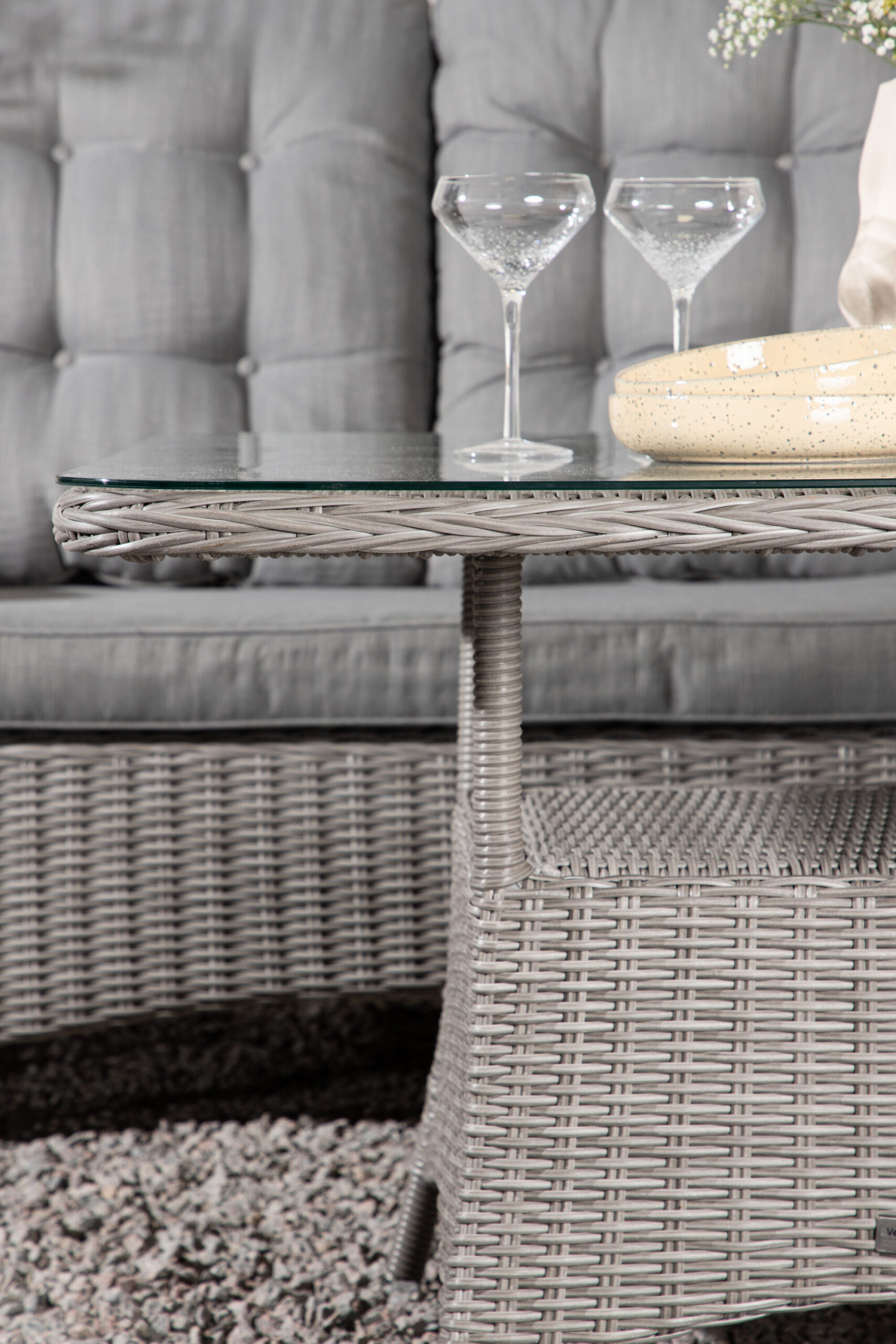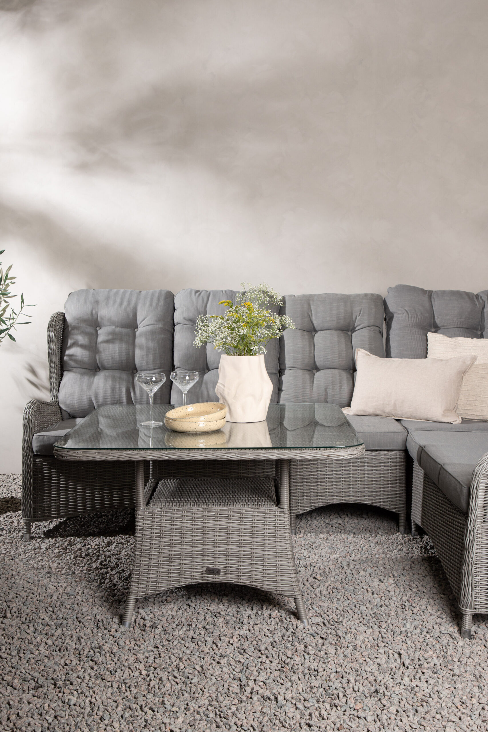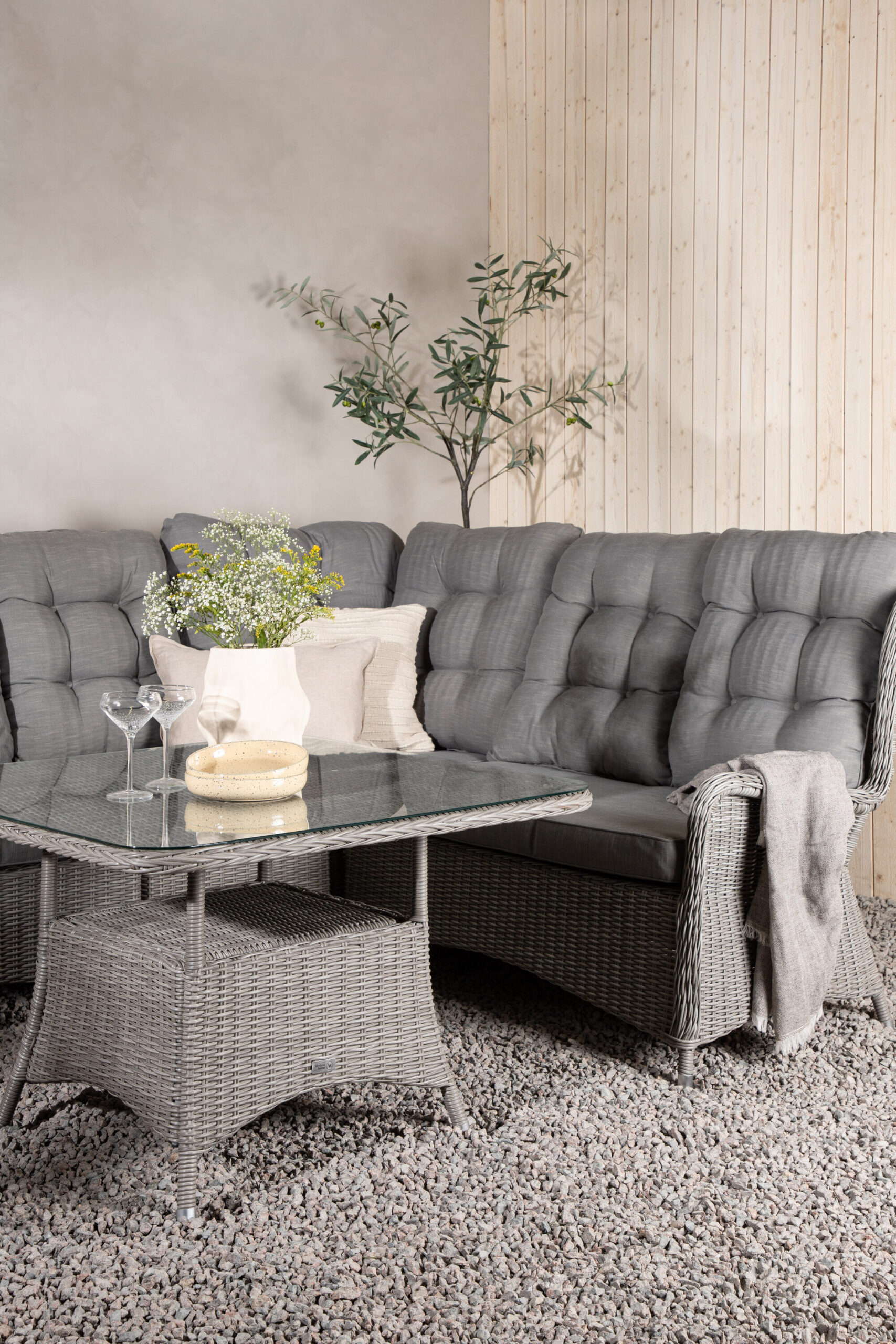 Washington on eksklusiivne salongikomplekt, milles on kombineeritud ajatu disain ja fantastiline mugavus – see on sel suvel kindlasti edukas teie terrassil või terrassil. Diivanigrupp koosneb 6 koha ja nurgaosaga nurgadiivanist ning kõrgemast reljeefse riiuli ja klaasist lauaplaadiga diivanilauast. Valmistatud helehallist kunstrotangist alumiiniumraamiga. Pehmed, paksud, helehallid marineeritud padjad on kaasas diivanirühma jaoks. Nautige hilissuveõhtuid parimal viisil!