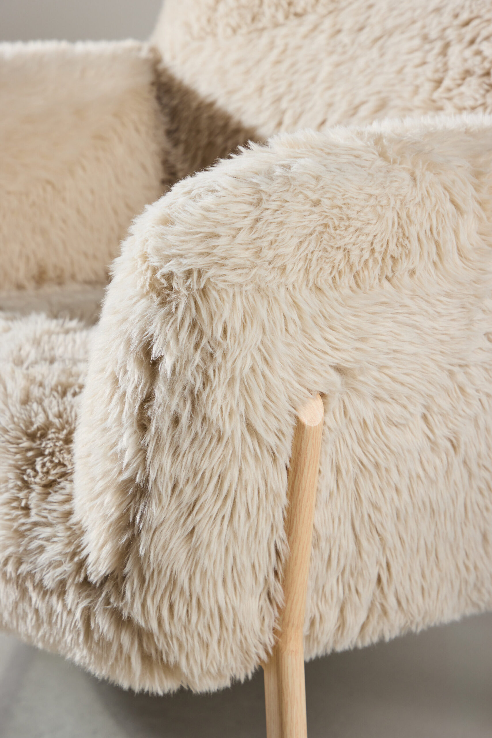 Zenzi on tugitool, mis kutsub teid pikkadele lõõgastavatele hetkedele. Polsterdatud beežis toonis imepehme kunstkarusnahaga, loob tuppa sooja ja hubase atmosfääri. Polsterdatud seljatoe, käetugede ja istmega Zenzi on eriti pehme ja mugav – ideaalne lugemiseks, puhkamiseks või lihtsalt vaikse hetke nautimiseks.
