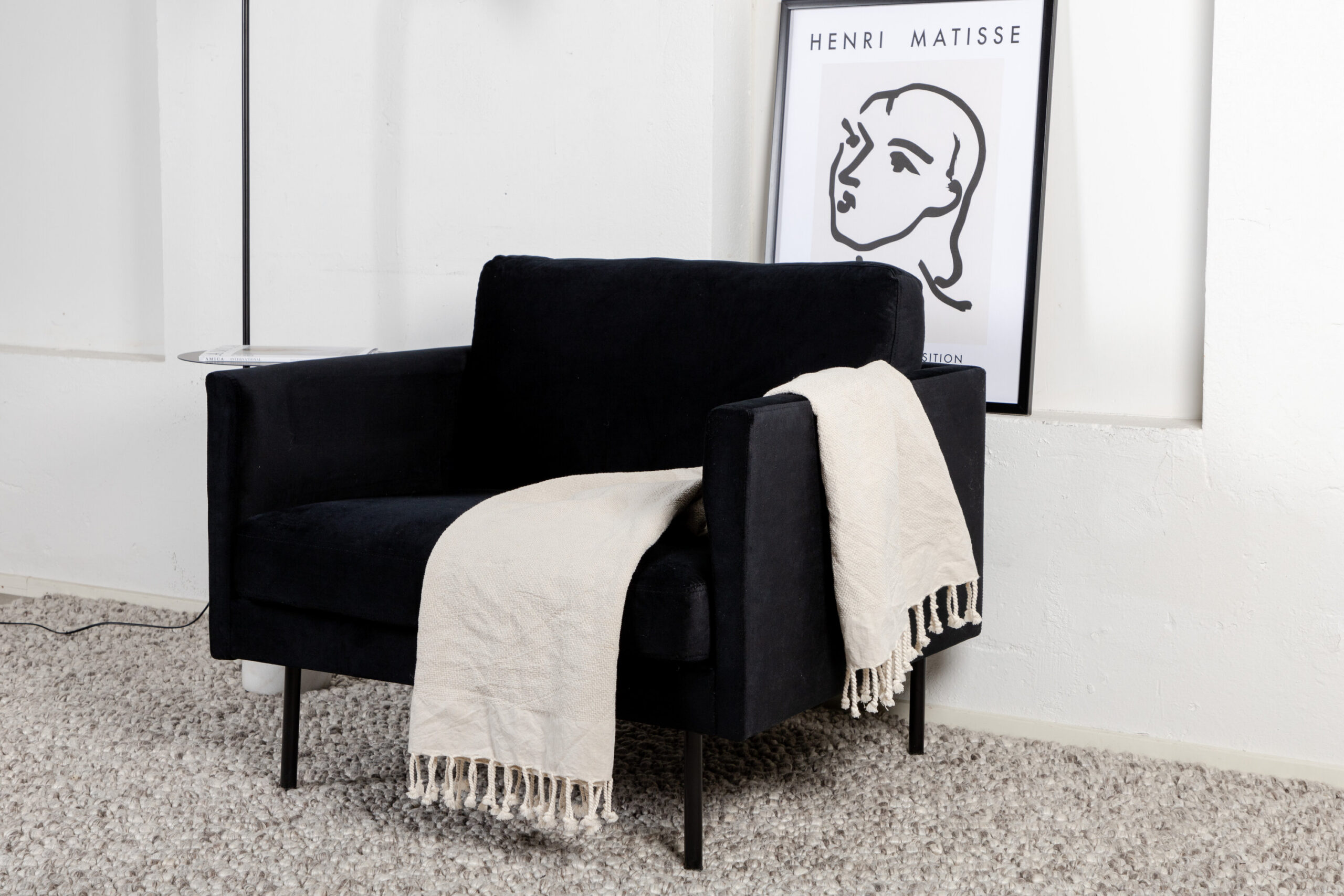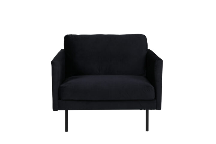 Luksuslik, elegantne ja pompoosne – kaasaegne tugitool, mis avaldab muljet! Zoom on suure mugavuse ja stiilse disainiga trendikas tugitool. Mustast sametkangast riided annavad elutoale elegantse läike. Sirge põhjamaine disain on kombineeritud minimalismi, stiilsete kitsaste jalgade ja suure istumissügavusega, mis koos loovad õhulise ja kutsuva tunde. Uskumatult hästi läbimõeldud ülddisain lihtsalt riietatud seljaosaga, mis võimaldab paigutada tugitooli keset tuba. Sisusta üksi stiiliikoonina või rühmas koos meie 2-3-kohalise diivaniga, mis kuulub samuti sarja Zoom.